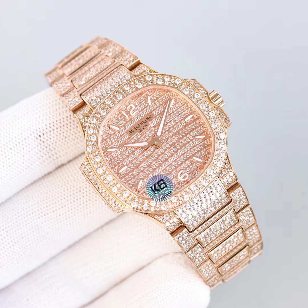 Case: Fully set with 518 diamonds and equipped with a sapphire crystal exhibition case back. It has a water resistance of 30 meters and a diameter of 35.2 millimeters.
