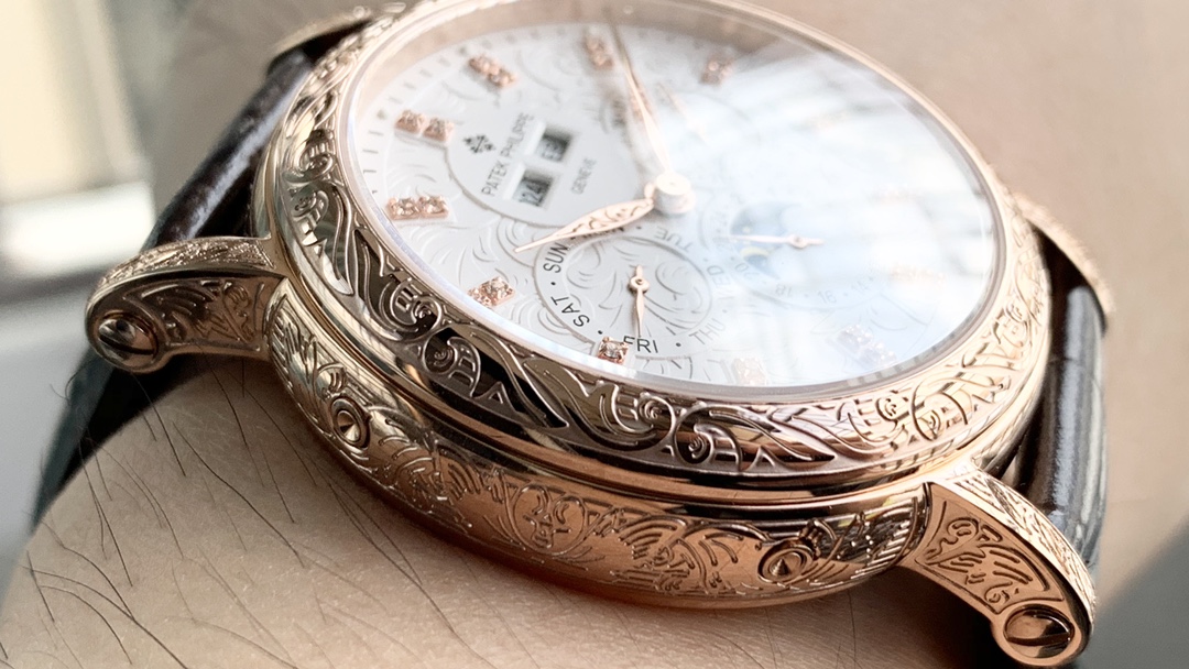 Strap: Classic Italian calfskin strap with clear texture and excellent quality. Paired with the top-level Patek Philippe lantern buckle, universally original and stress-free.