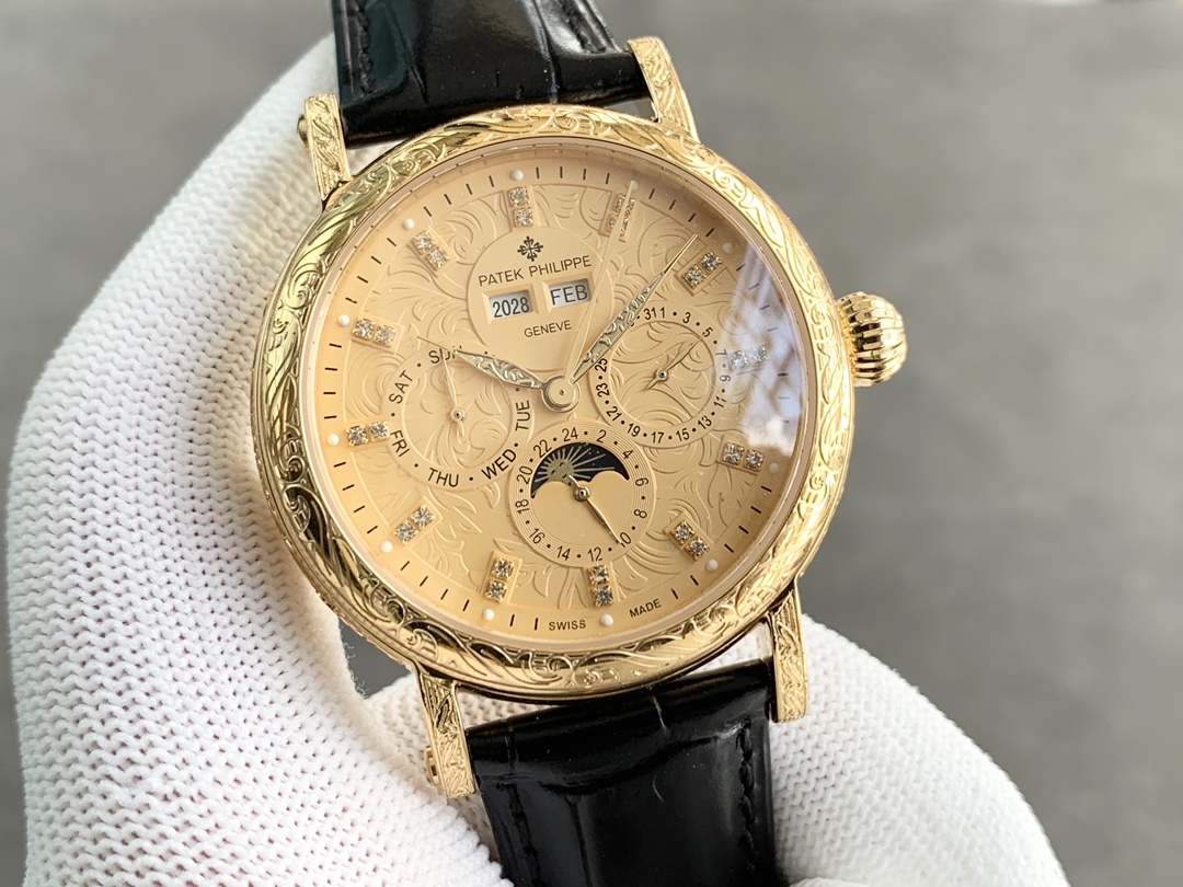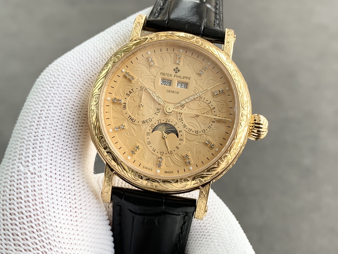 Strap: Classic Italian calfskin strap with clear texture and excellent quality. Paired with the top-level Patek Philippe lantern buckle, universally original and stress-free.