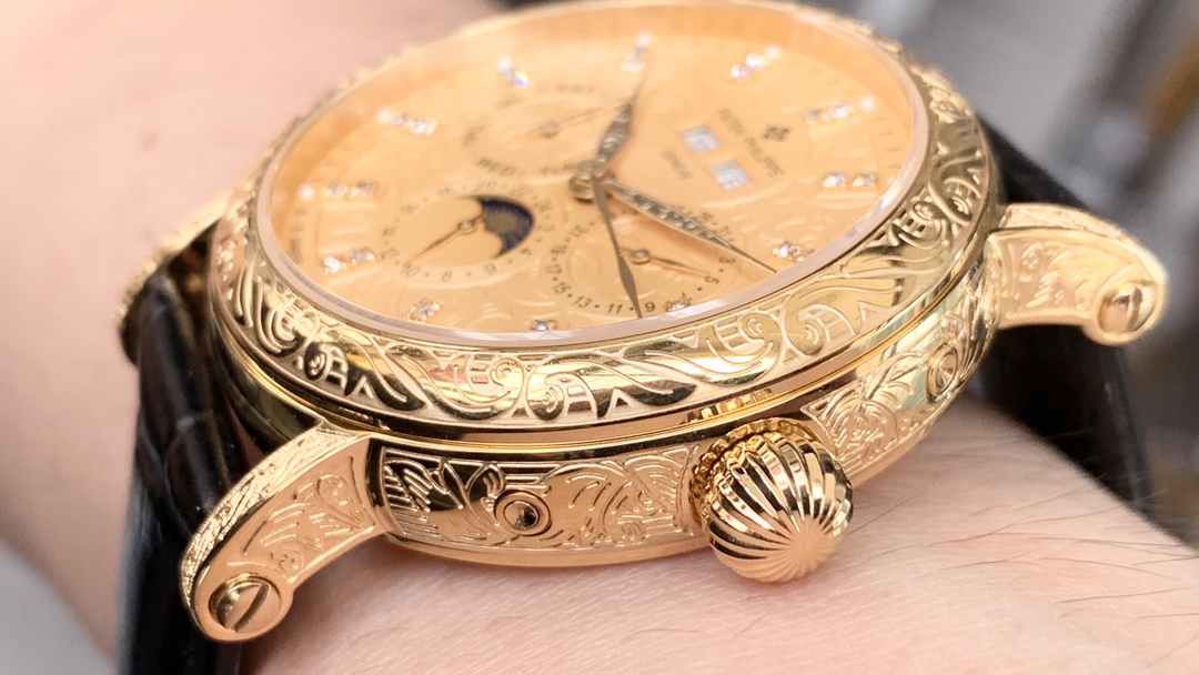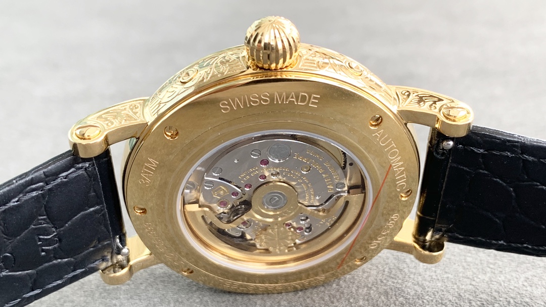 Case: The elegant Calatrava engraved case is highly distinctive,