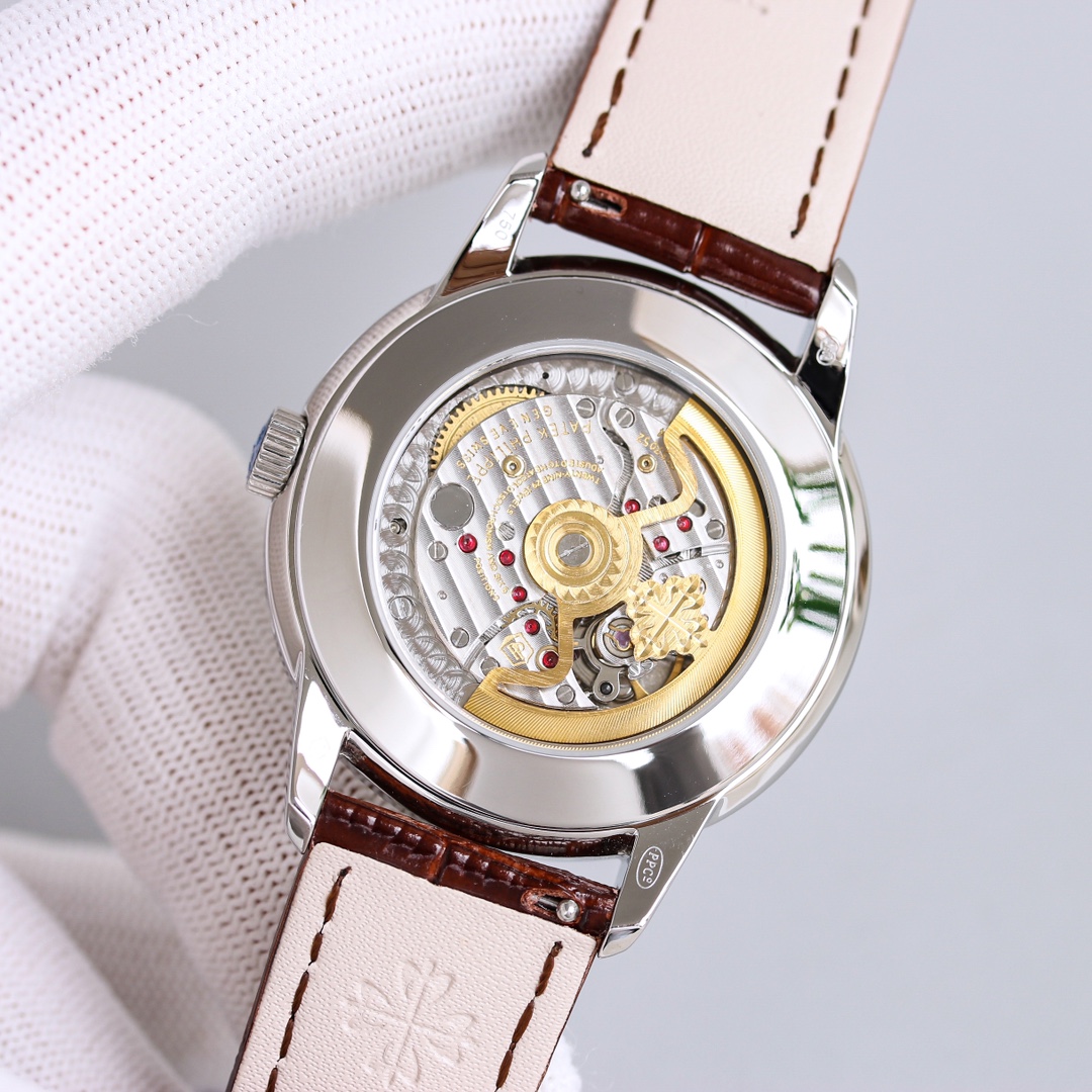 The bridges of the movement are chamfered and meticulously polished, the main plate is adorned with fish-scale pattern, and the bridges are decorated with Geneva waves. The surface of the bridges is engraved with gold, and the screw slots are polished and chamfered. Even the jewel holes are treated with the same level of polishing.