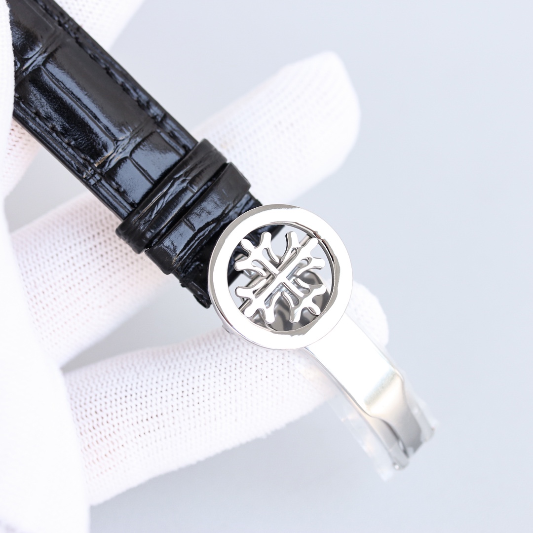 The bridges of the movement are chamfered and meticulously polished, the main plate is adorned with fish-scale pattern, and the bridges are decorated with Geneva waves. The surface of the bridges is engraved with gold, and the screw slots are polished and chamfered. Even the jewel holes are treated with the same level of polishing.