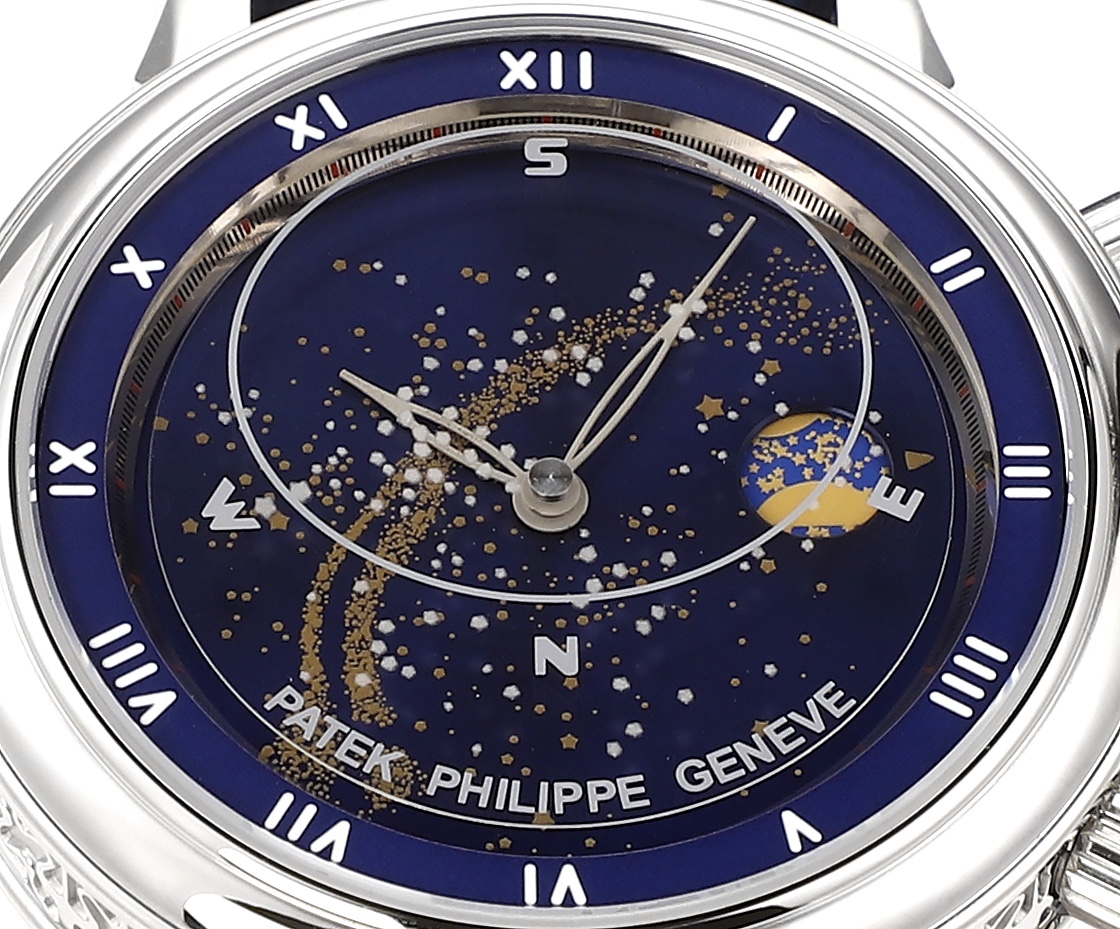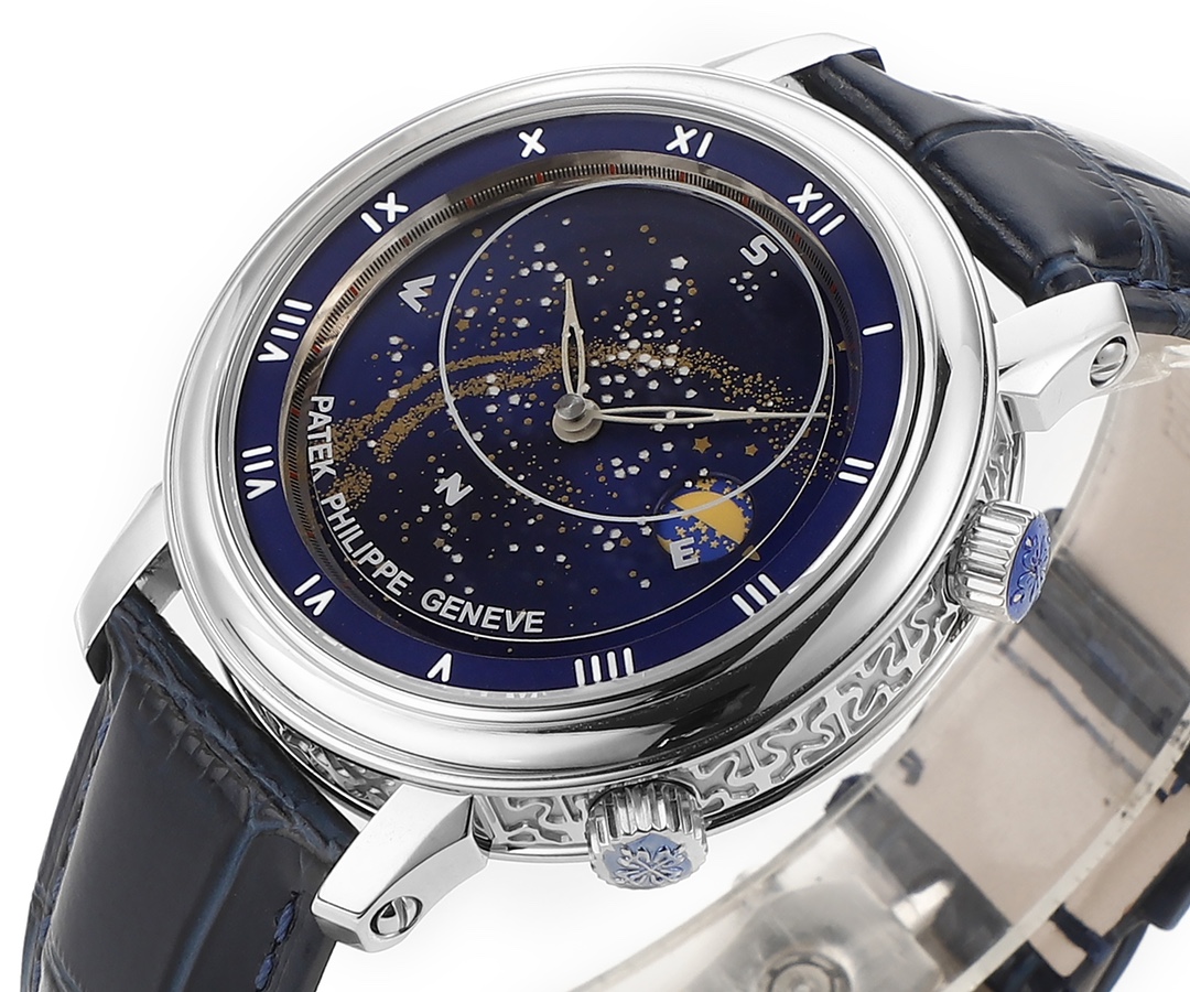 In the Patek Philippe Starry Sky, the moon on the watch changes according to the moon in the sky, reflecting the different phases of the moon (from crescent to full moon). The superluminova has been enhanced, illuminating the entire surface of the watch.