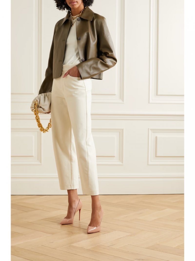 - Beige patent-leather