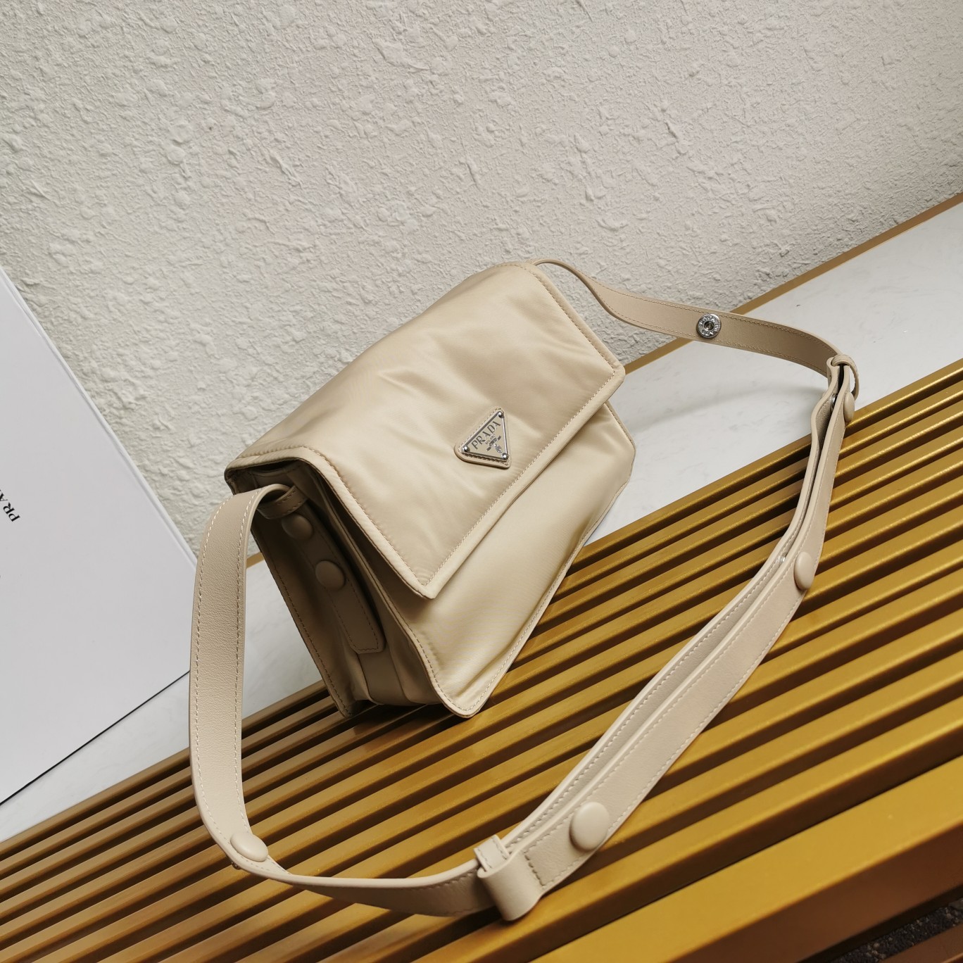 The new small-sized nylon shoulder bag embodies Prada’s mix-and-match concept, showcasing a creative design through the combination of materials, silhouettes, and functionality. This flap-style shoulder bag is crafted using innovative Re-Nylon regenerated nylon technology, presenting a delicate and graceful shape. The added lining technique gives the bag a soft and modern appearance, while the adjustable leather shoulder strap allows for versatile carrying options.