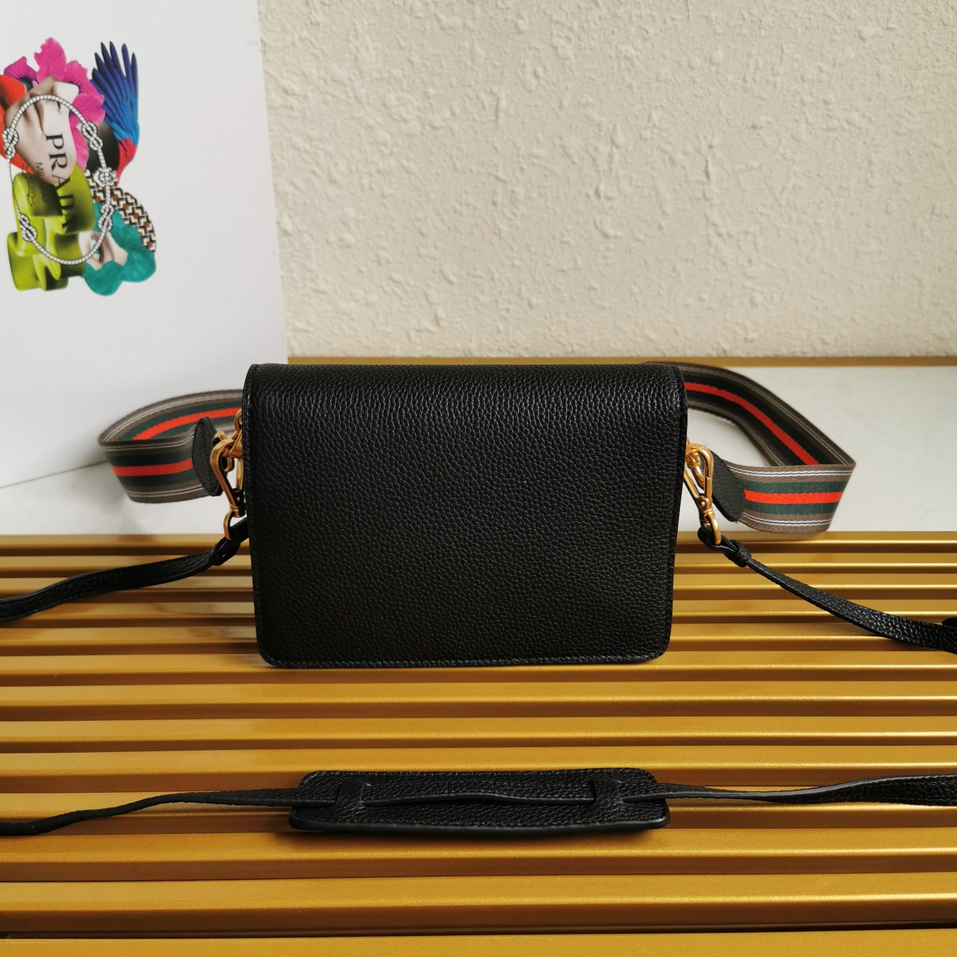 【Top-grade Original】Counter Explosive Small Cowhide Crossbody Bag Italian Imported Superb Quality Small Cowhide Prada Logo Fabric Lining Equipped with Detachable Leather Shoulder Strap + Detachable Colorful Fabric Shoulder Strap Magnetic Closure Three Internal Compartments and One Zipper Pocket Perfect Details Comparable to the Counter