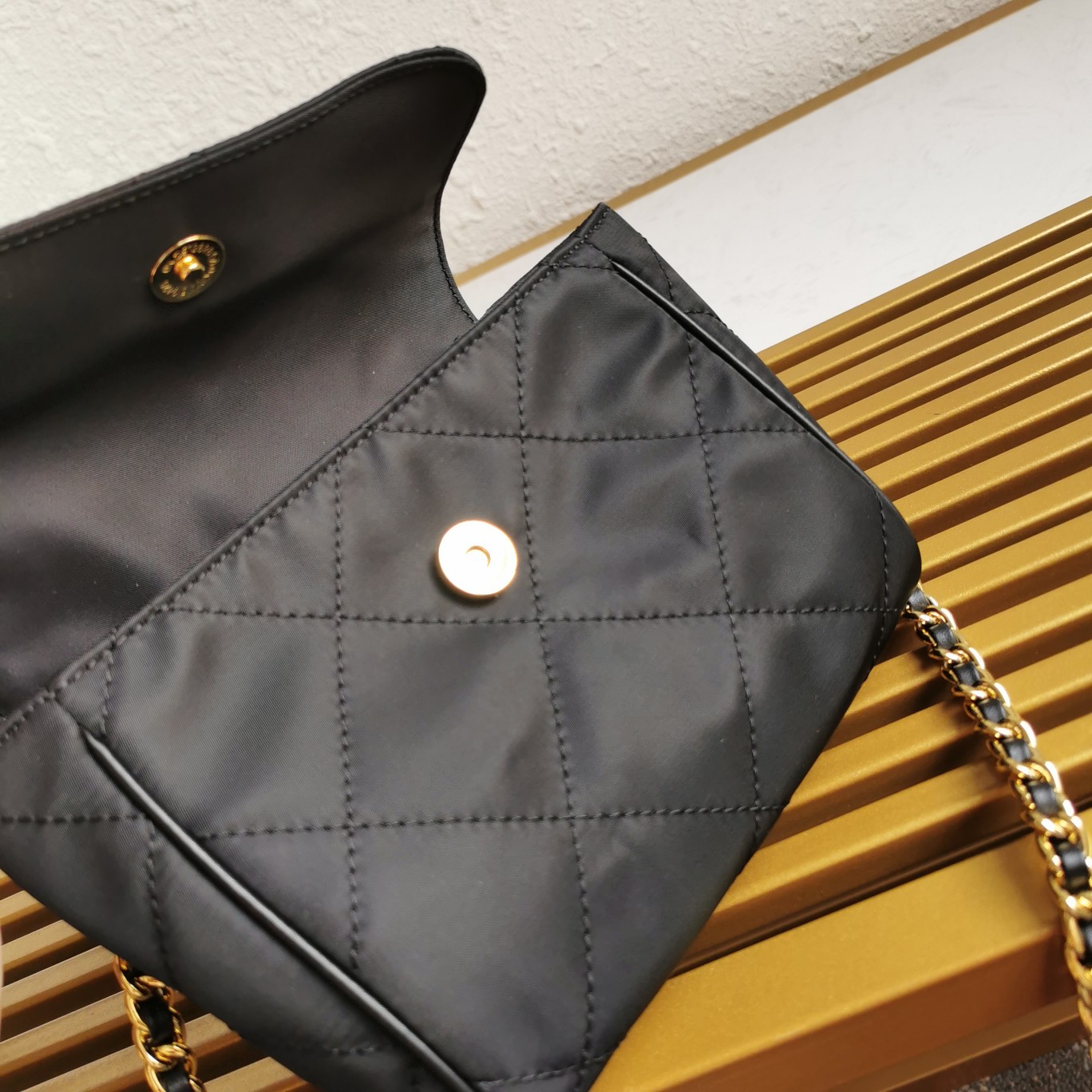 The design of this Vintage pre-owned chain diamond lattice hobo bag is fantastic. It features a handmade nylon diamond lattice design and can be worn as a single shoulder bag or crossbody bag. The imported black and gold chain adds a touch of timeless vintage charm. It is minimalist yet elegant, with a spacious capacity. When worn, it exudes a trendy and versatile style that works well for both casual and formal occasions. Don’t hesitate, grab it now!