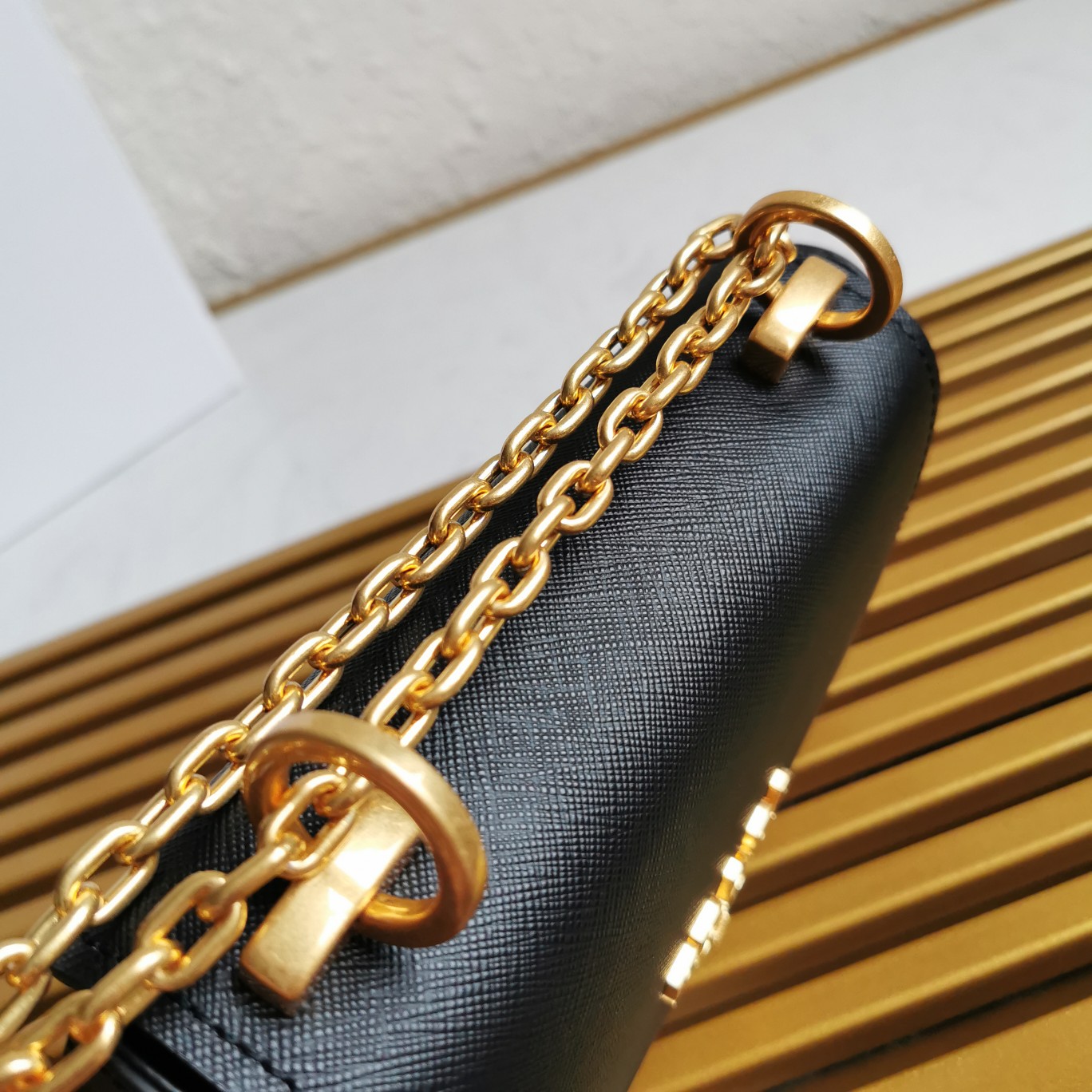 Made with imported Saffiano leather material and featuring a fully copper antique gold chain shoulder strap, this bag showcases top-quality hardware. With a snap closure, it is an exquisite shoulder bag that exudes an elegant minimalist charm, appearing particularly sophisticated, fashionable, and timeless. It can be worn crossbody or on a single shoulder, making it a must-have for women.