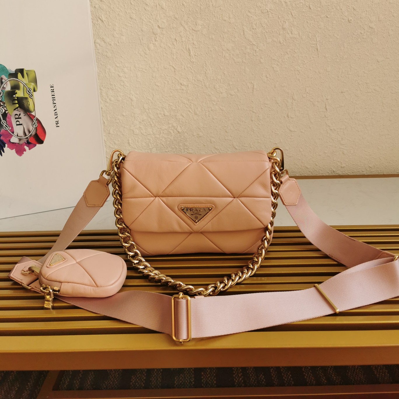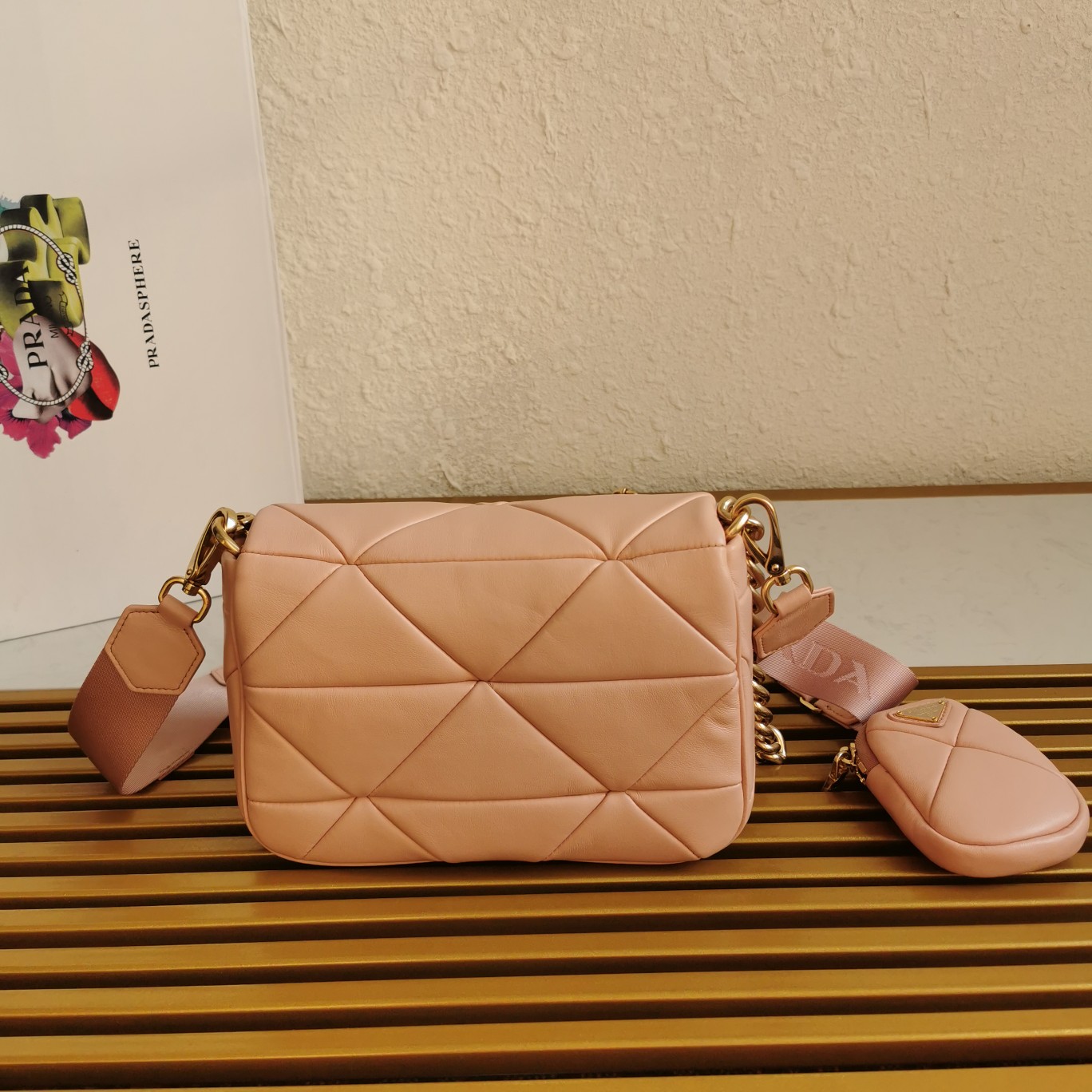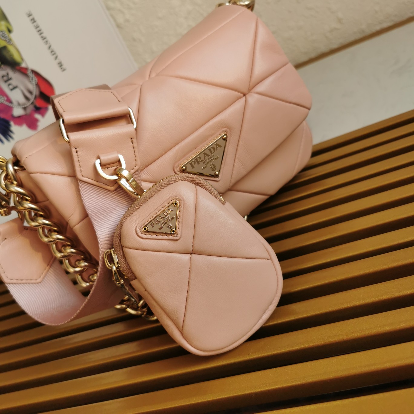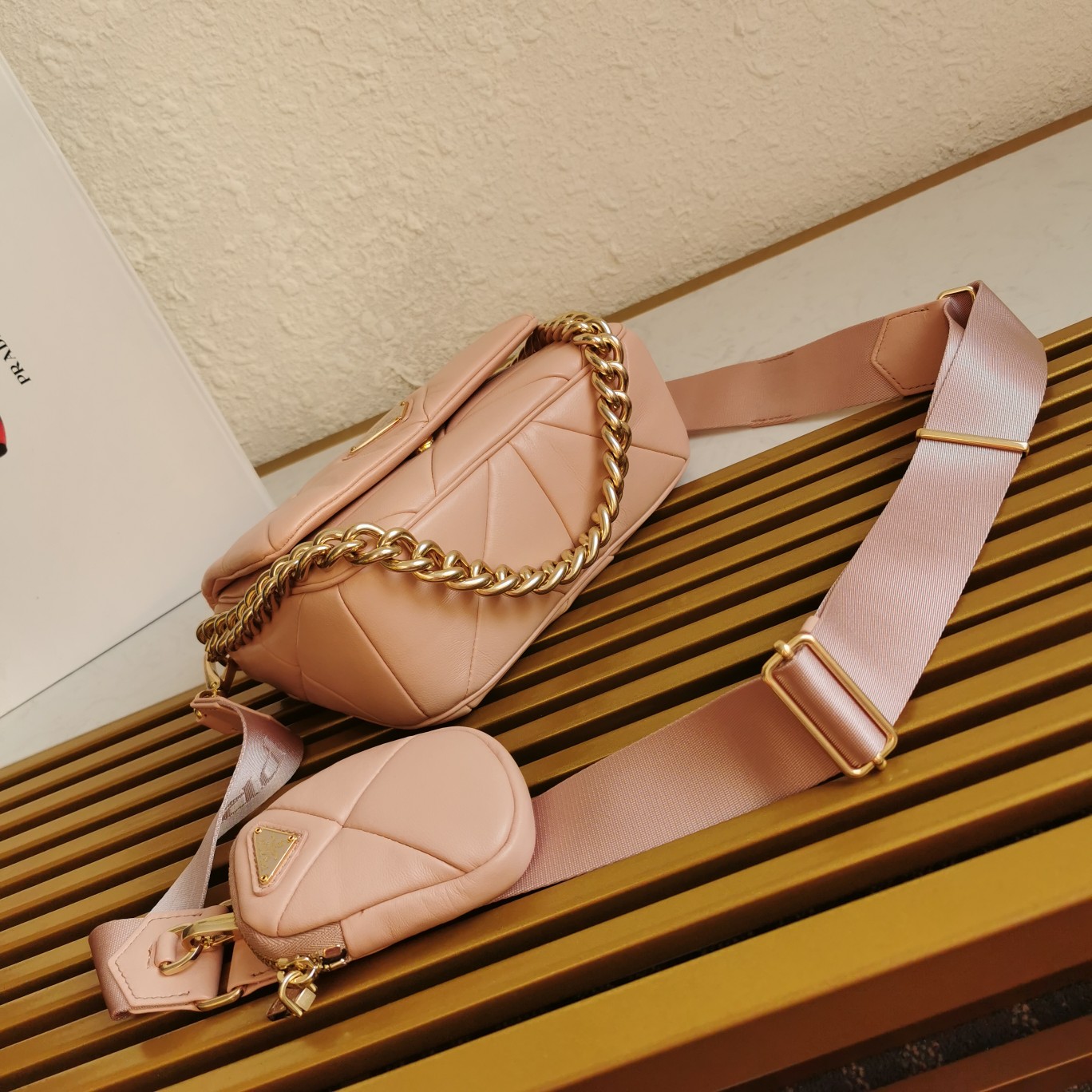 The latest style of sheepskin at the counter, this three-in-one women’s bag is made of imported fetal sheepskin, with top-grade nostalgic light gold, pure handcrafted diamond-shaped patchwork design, which appears particularly unique and atmospheric. It can be used in three ways: single shoulder, crossbody, and as a small coin purse. Now the design has been upgraded, with hooks on both sides, inspired by a very feminine and elegant concept, it looks simple, refined, and timeless.