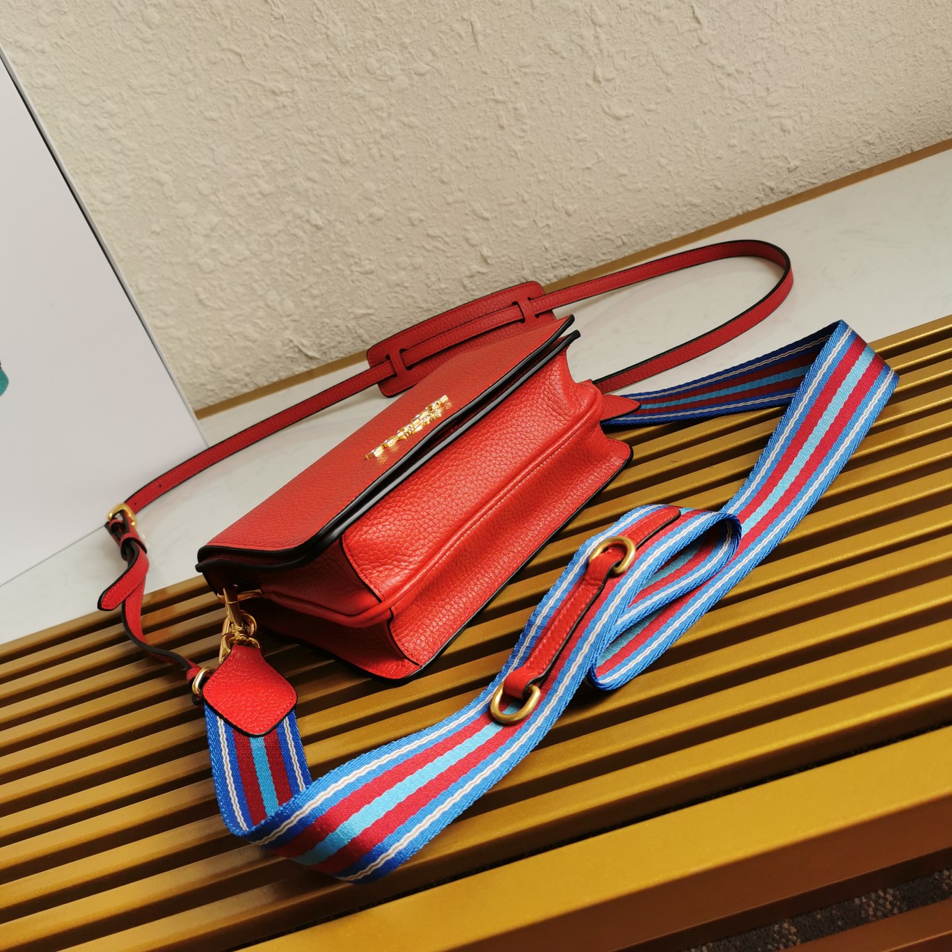 【Top-grade Original】Counter Explosive Small Cowhide Crossbody Bag Italian Imported Superb Quality Small Cowhide Prada Logo Fabric Lining Equipped with Detachable Leather Shoulder Strap + Detachable Colorful Fabric Shoulder Strap Magnetic Closure Three Internal Compartments and One Zipper Pocket Perfect Details Comparable to the Counter