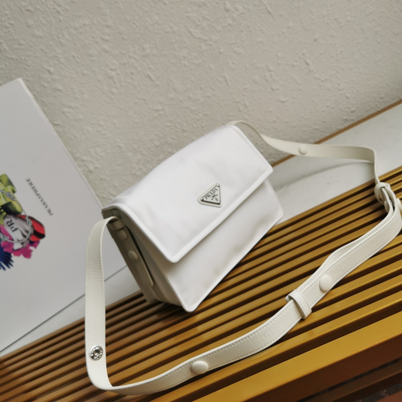 The new small-sized nylon shoulder bag embodies Prada’s mix-and-match concept, showcasing a creative design through the combination of materials, silhouettes, and functionality. This flap-style shoulder bag is crafted using innovative Re-Nylon regenerated nylon technology, presenting a delicate and graceful shape. The added lining technique gives the bag a soft and modern appearance, while the adjustable leather shoulder strap allows for versatile carrying options.
