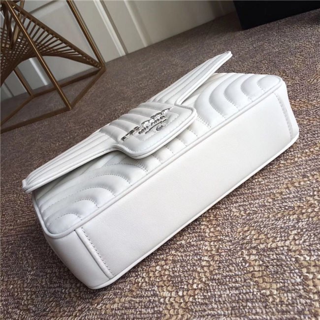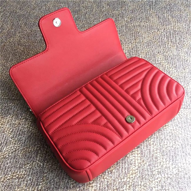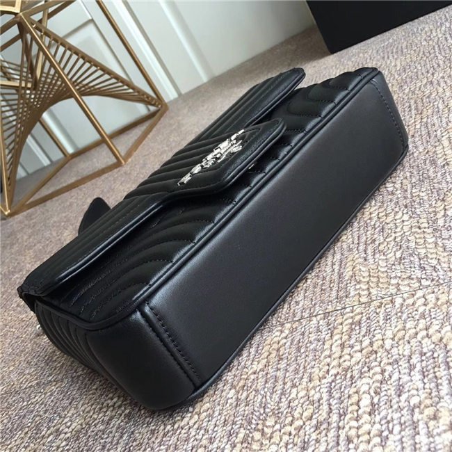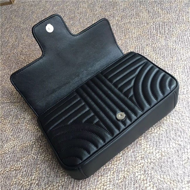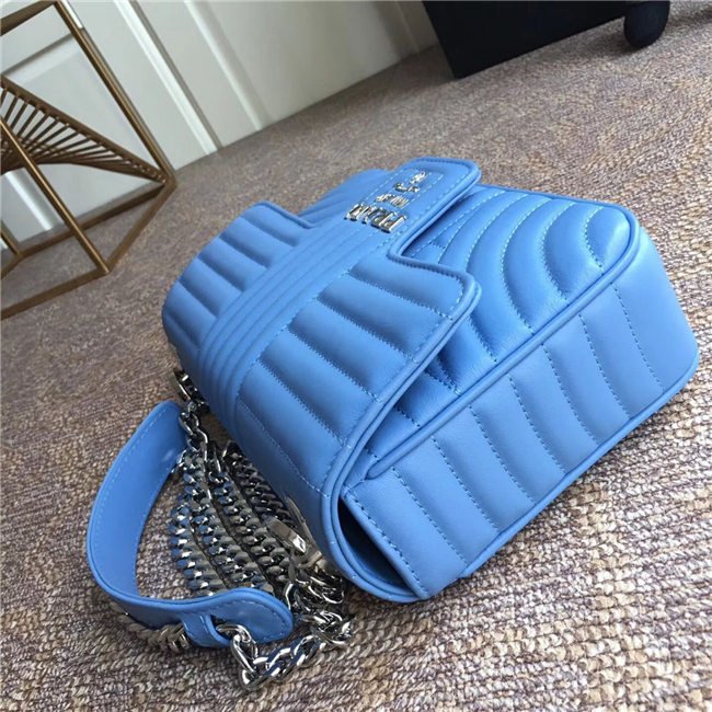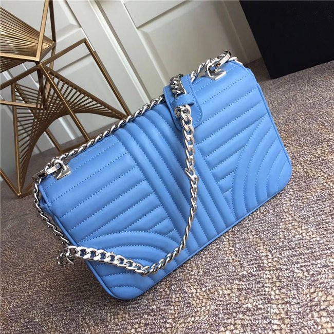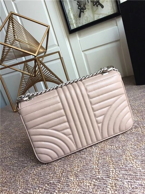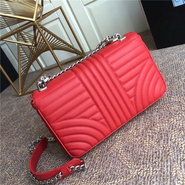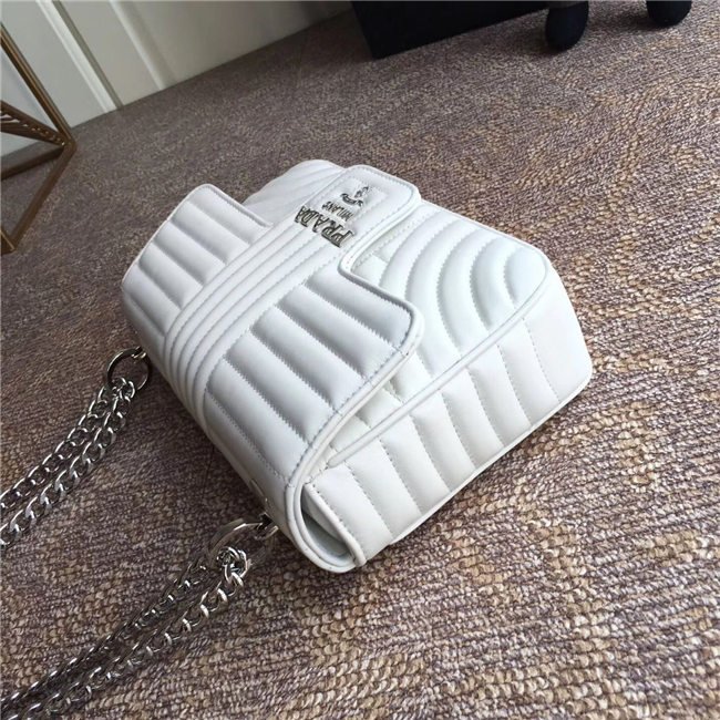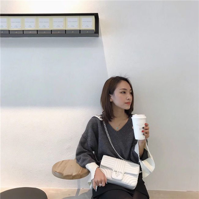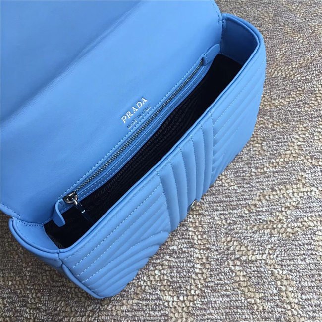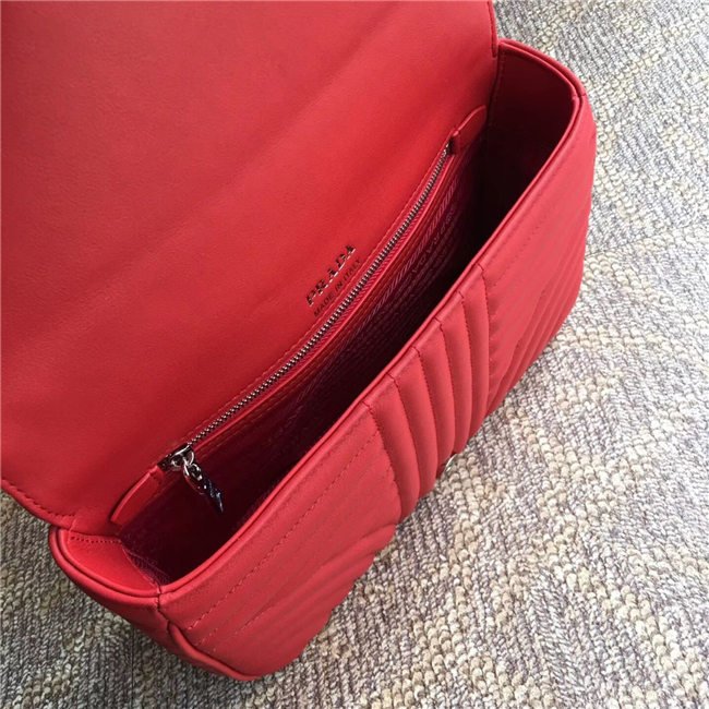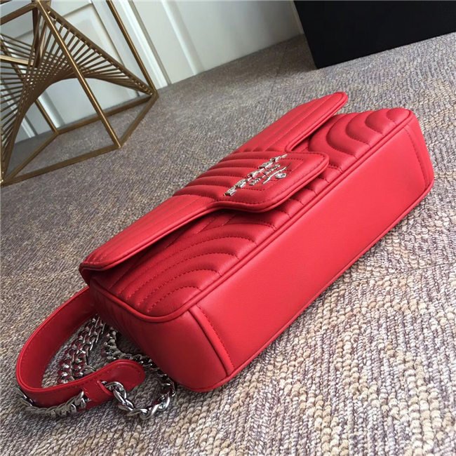 Prada Diagramme bag in refined matelasse leather. The chain shoulder strap, logo lettering and hardware add a touch of light to the model.