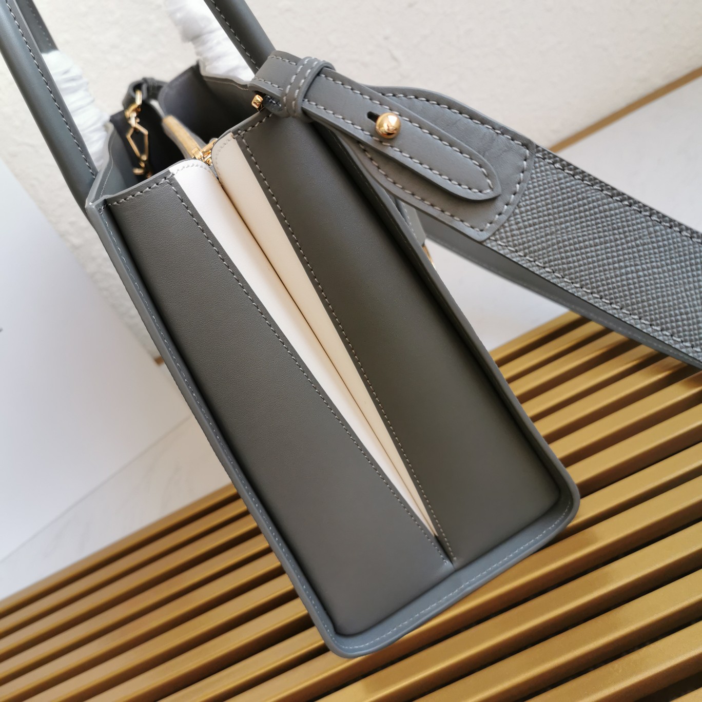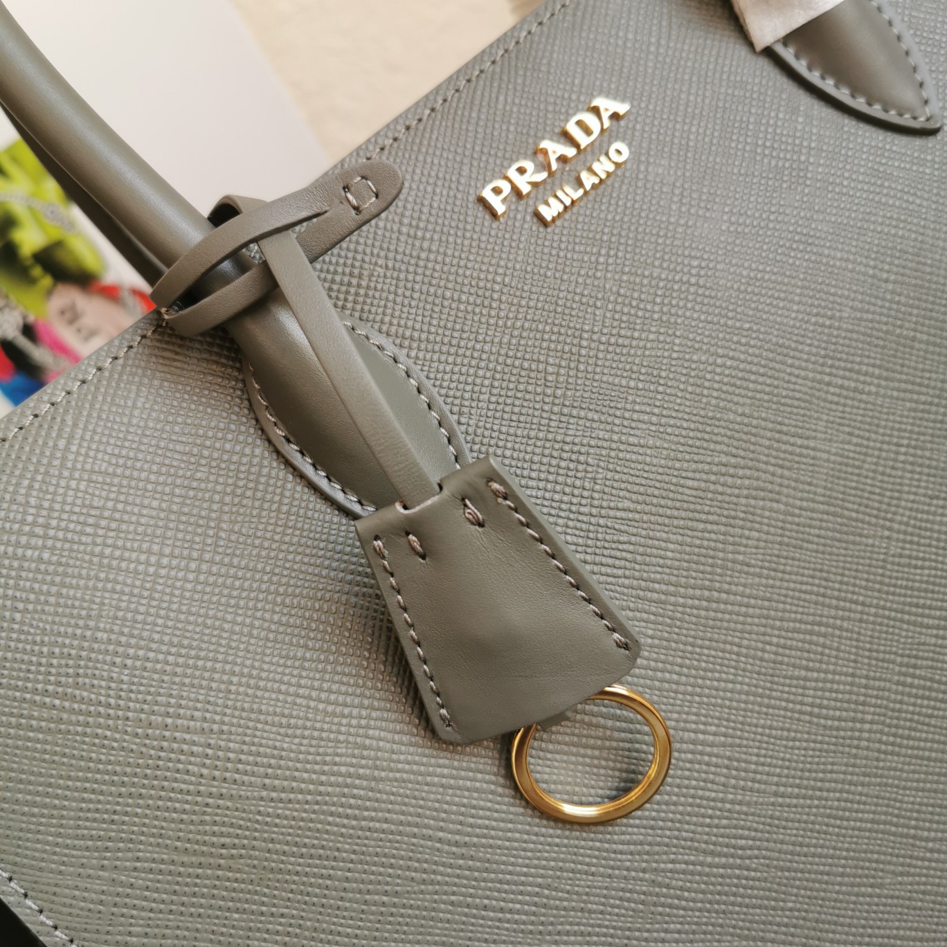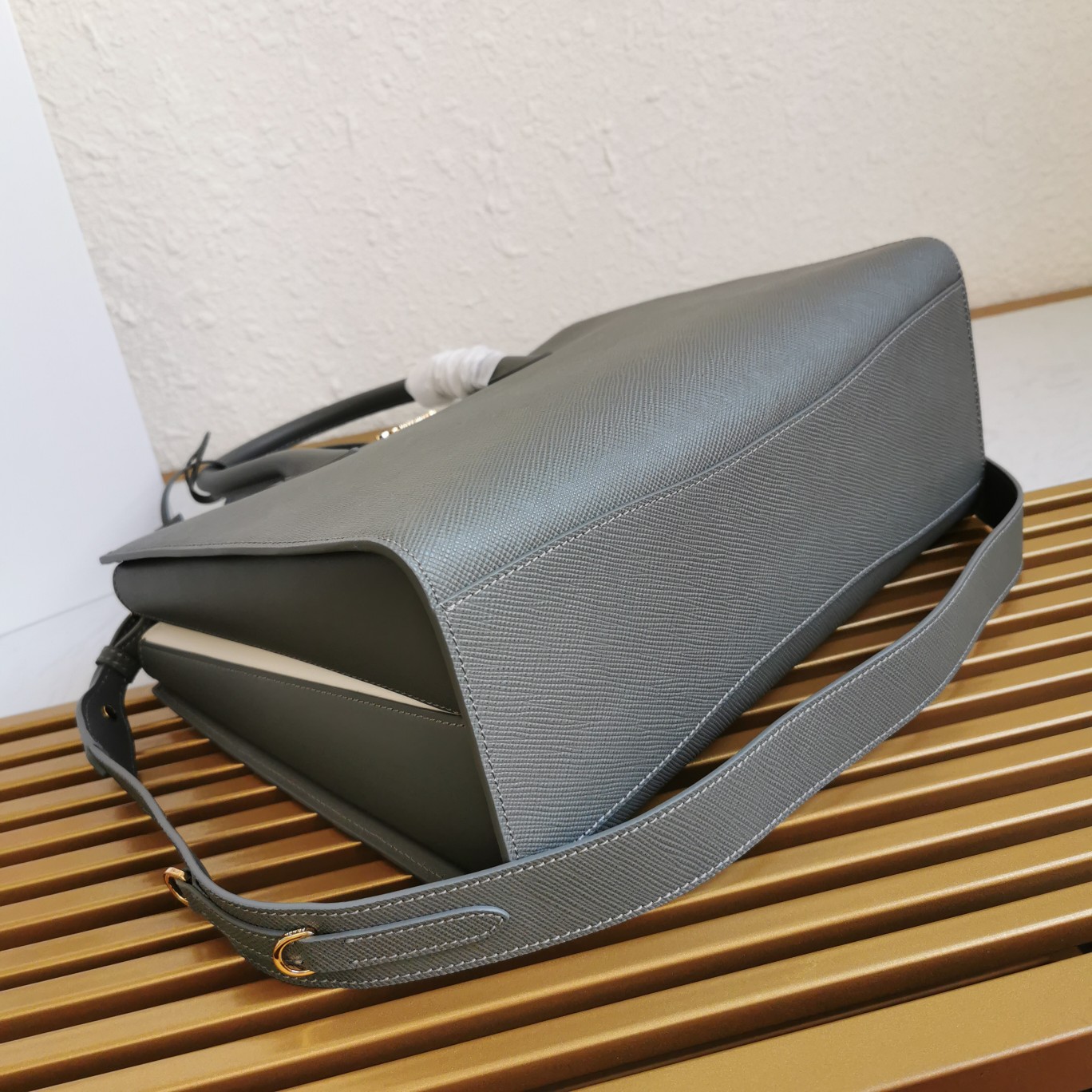Top-grade original, classic style. Made of Saffiano leather, featuring a unique accordion-style design on the side with cowhide leather double handles. It comes with a detachable leather shoulder strap, gold-plated hardware accessories, metal letter logo, two inner pockets including a zippered pocket, and Prada logo lining.