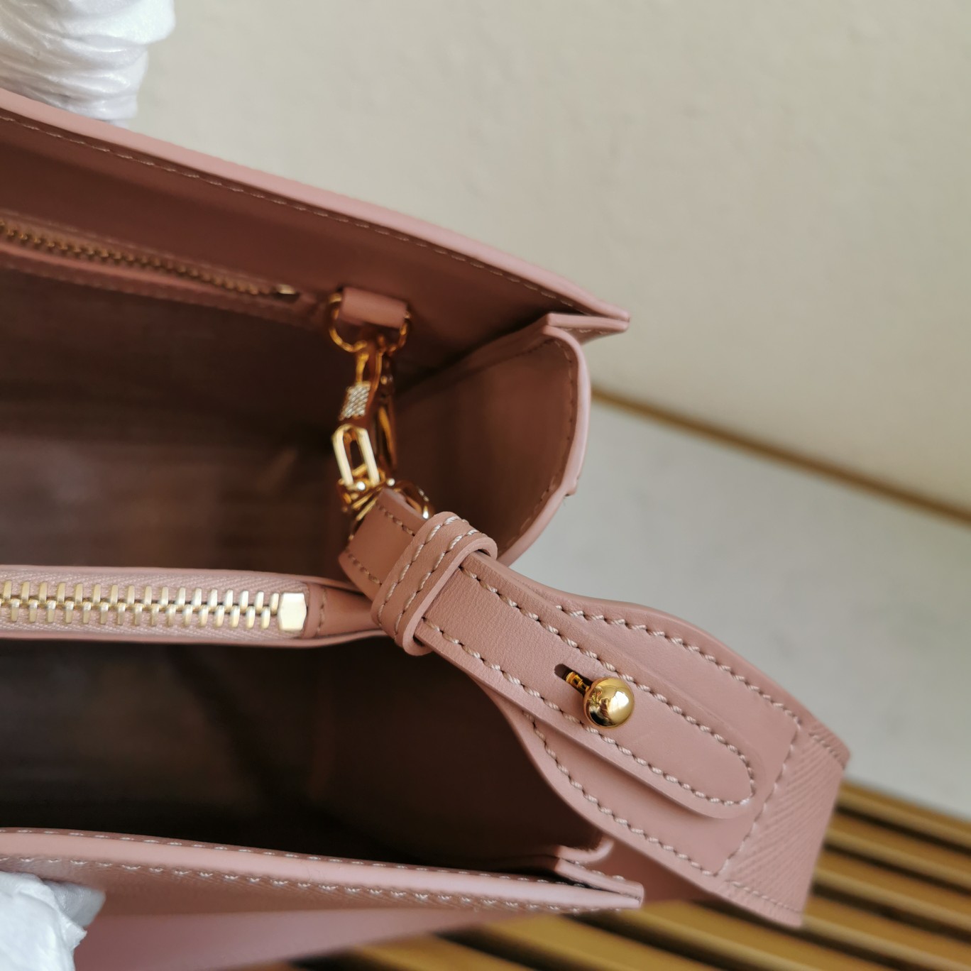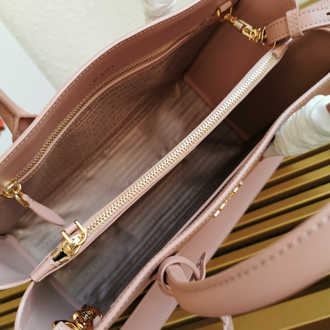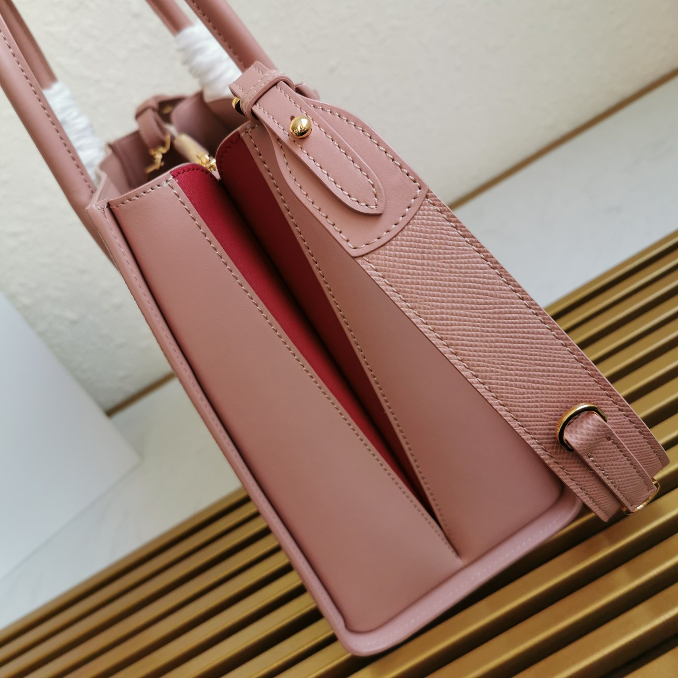 Top-grade original, classic style. Made of Saffiano leather, featuring a unique accordion-style design on the side with cowhide leather double handles. It comes with a detachable leather shoulder strap, gold-plated hardware accessories, metal letter logo, two inner pockets including a zippered pocket, and Prada logo lining.