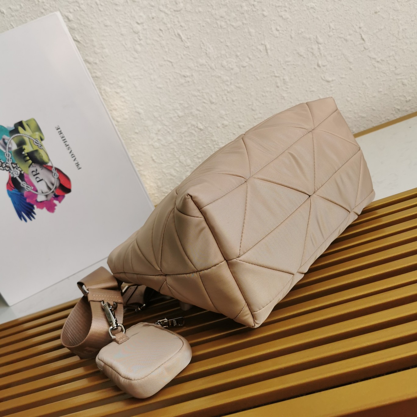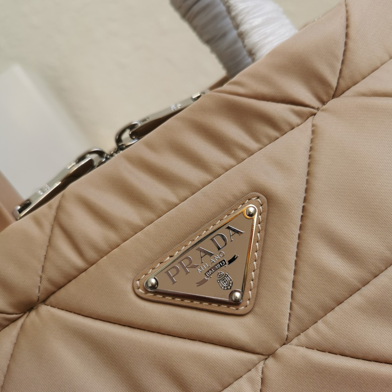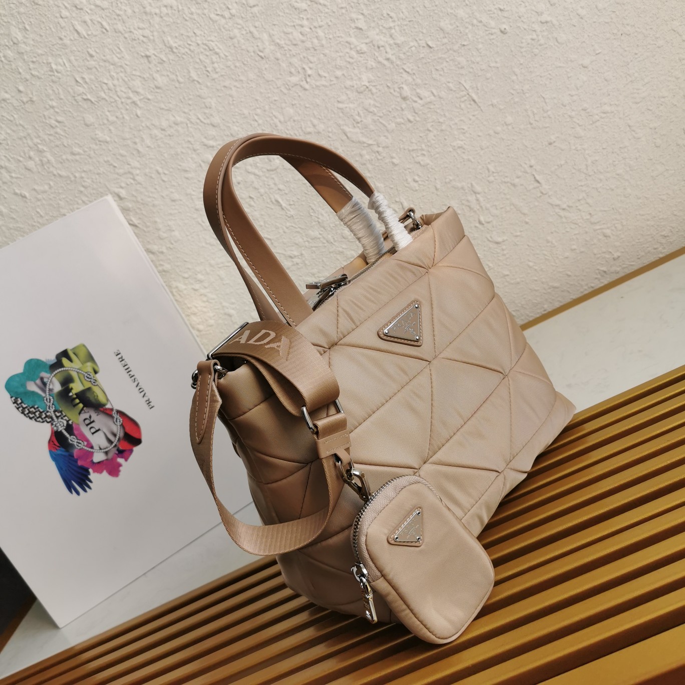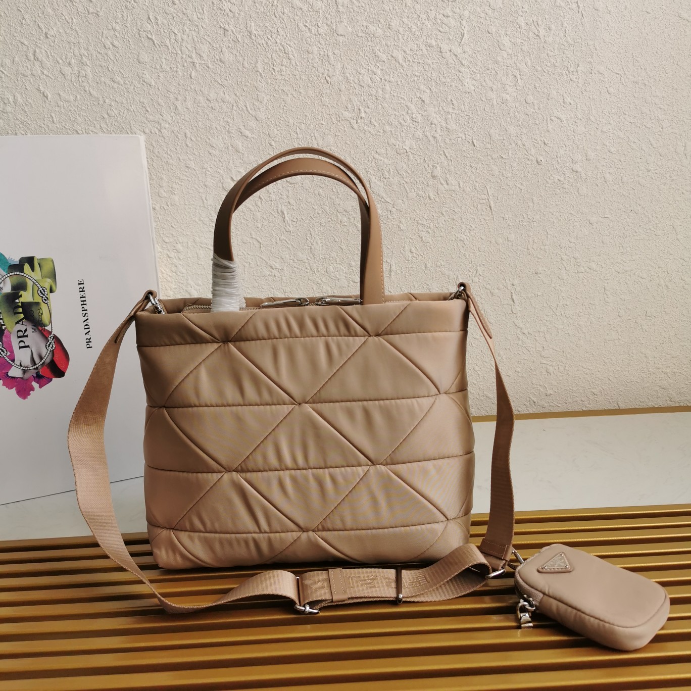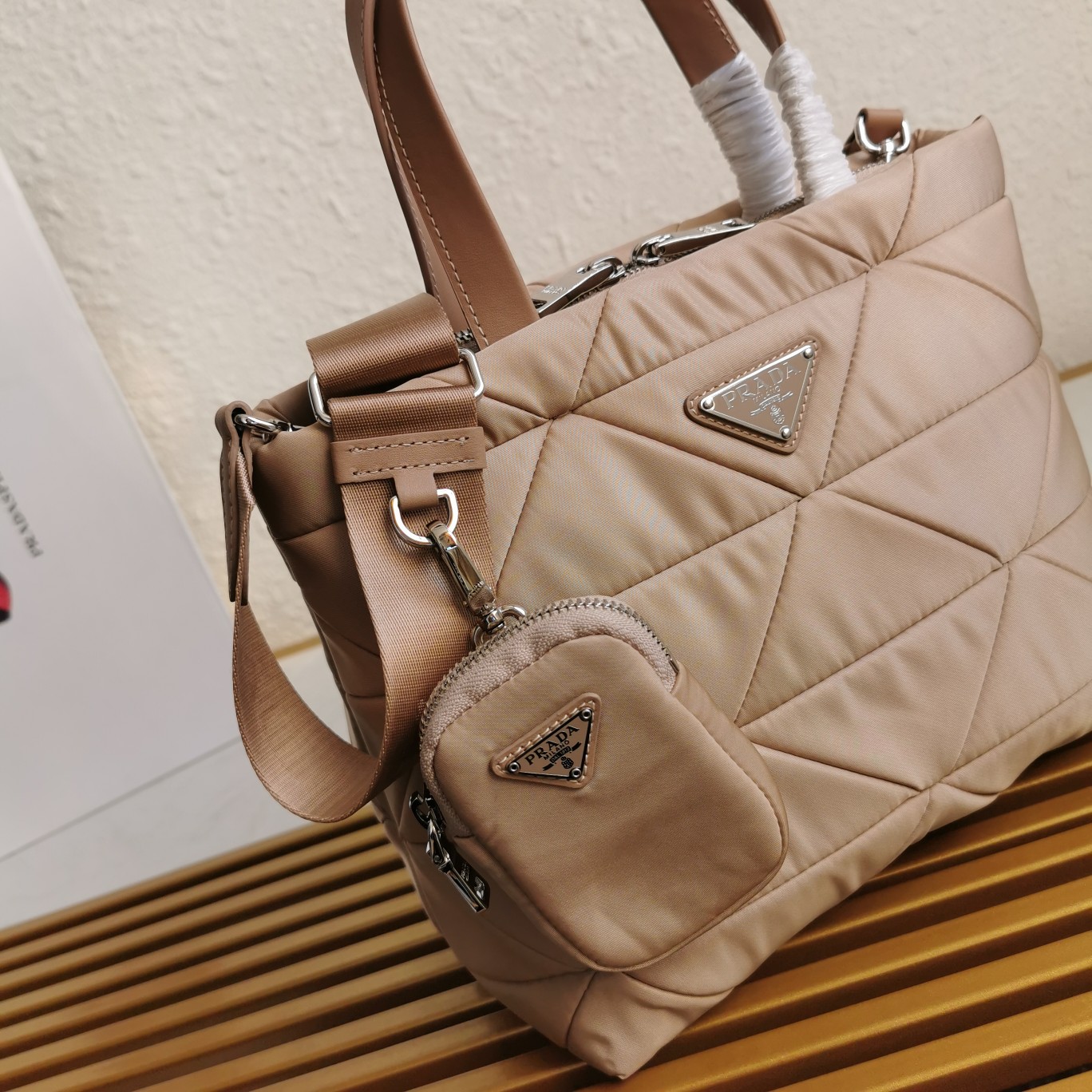 This is a three-in-one tote bag. The System tote bag features two leather handles and intricate stitching techniques that shape a triangular pattern, highlighting the craftsmanship. The detachable woven nylon shoulder strap brings different styles, and my favorite is the small bag with the shoulder strap, which is lightweight and practical. Hurry up and buy it!