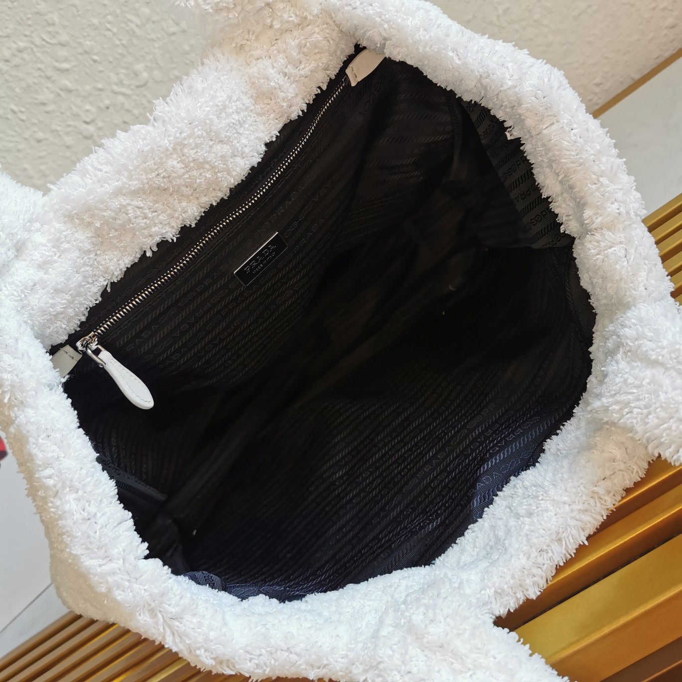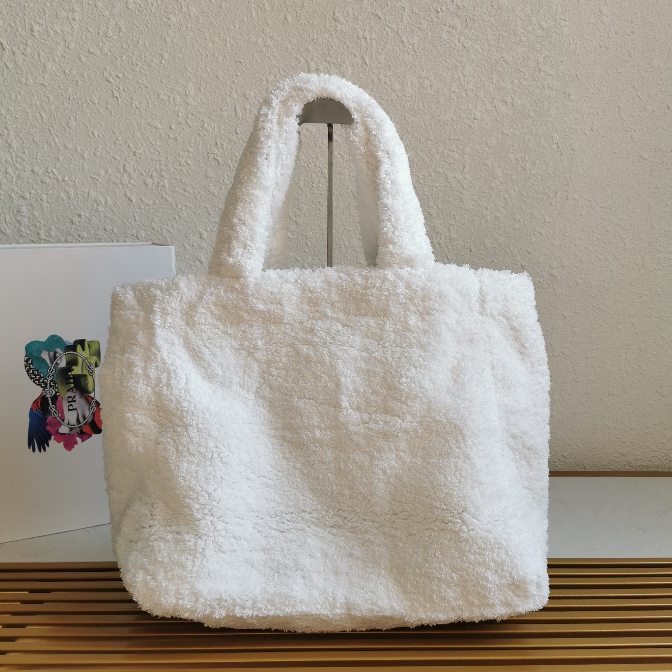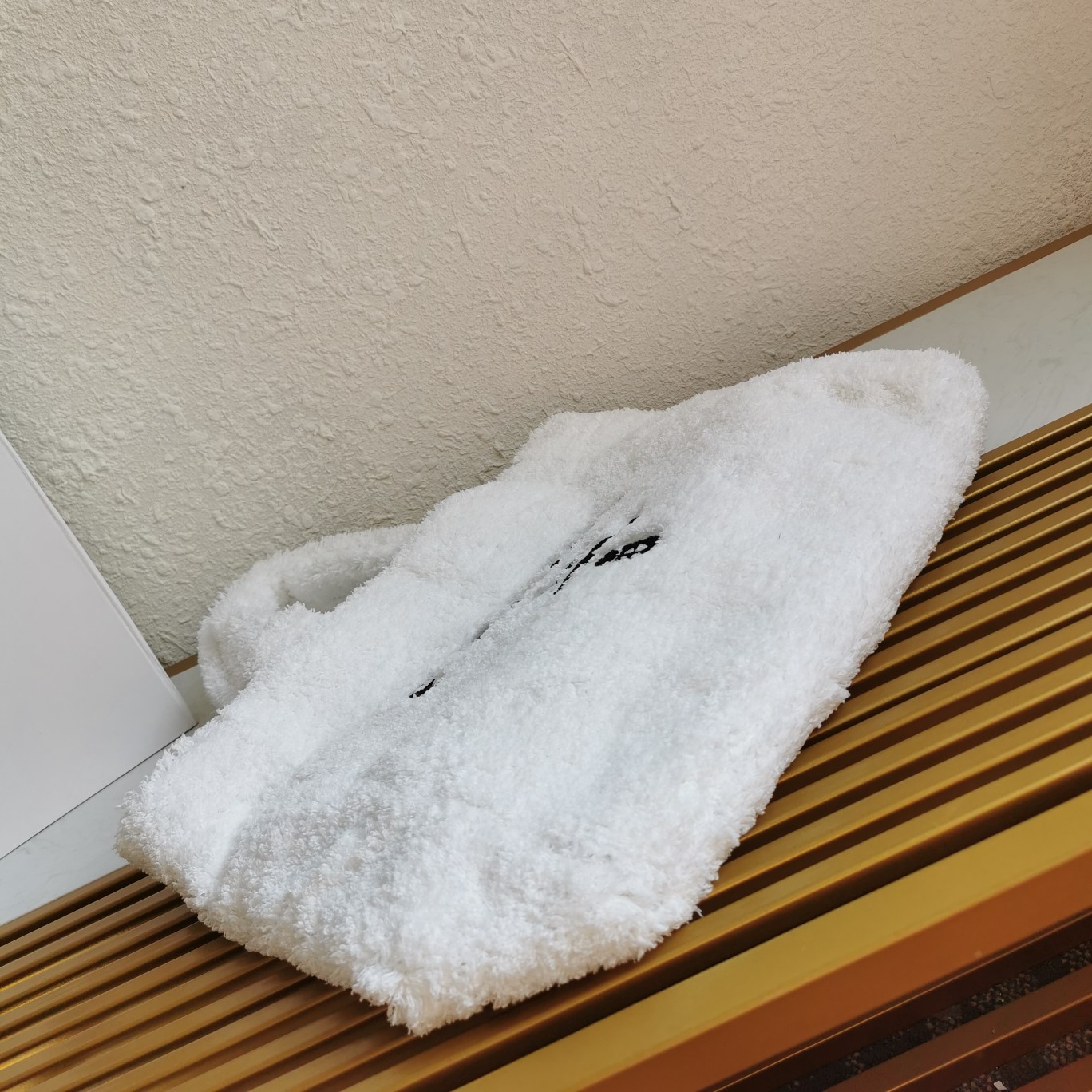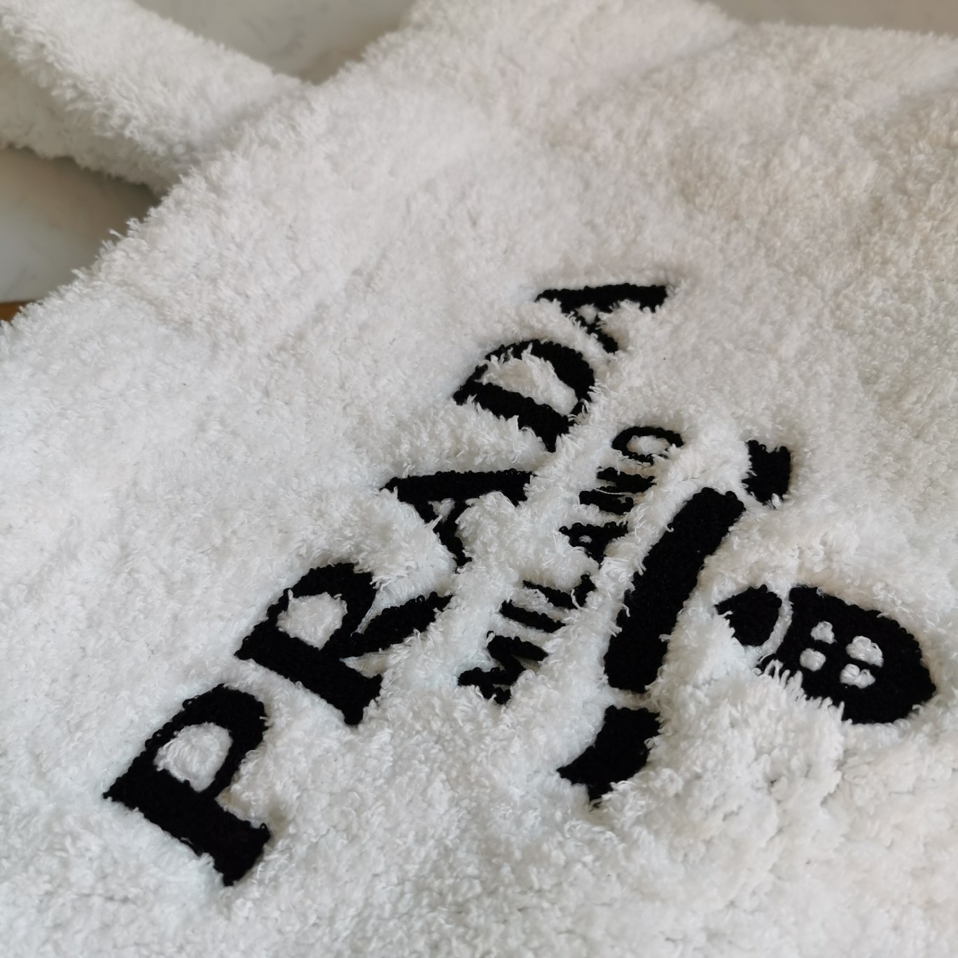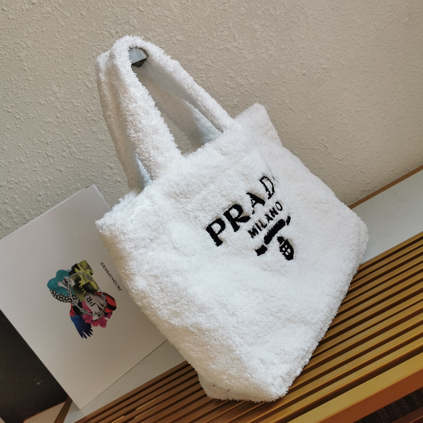 【Top-grade Original】Fluffy Tote Bag, this tote bag is crafted from soft plush loop fabric, presenting a dynamic color contrast and playful design style, exuding a summer vibe. The iconic oversized embroidered logo embellishes the front of the bag, showcasing the brand’s style. It looks great when carried by hand or under the arm, so hurry up and buy it.