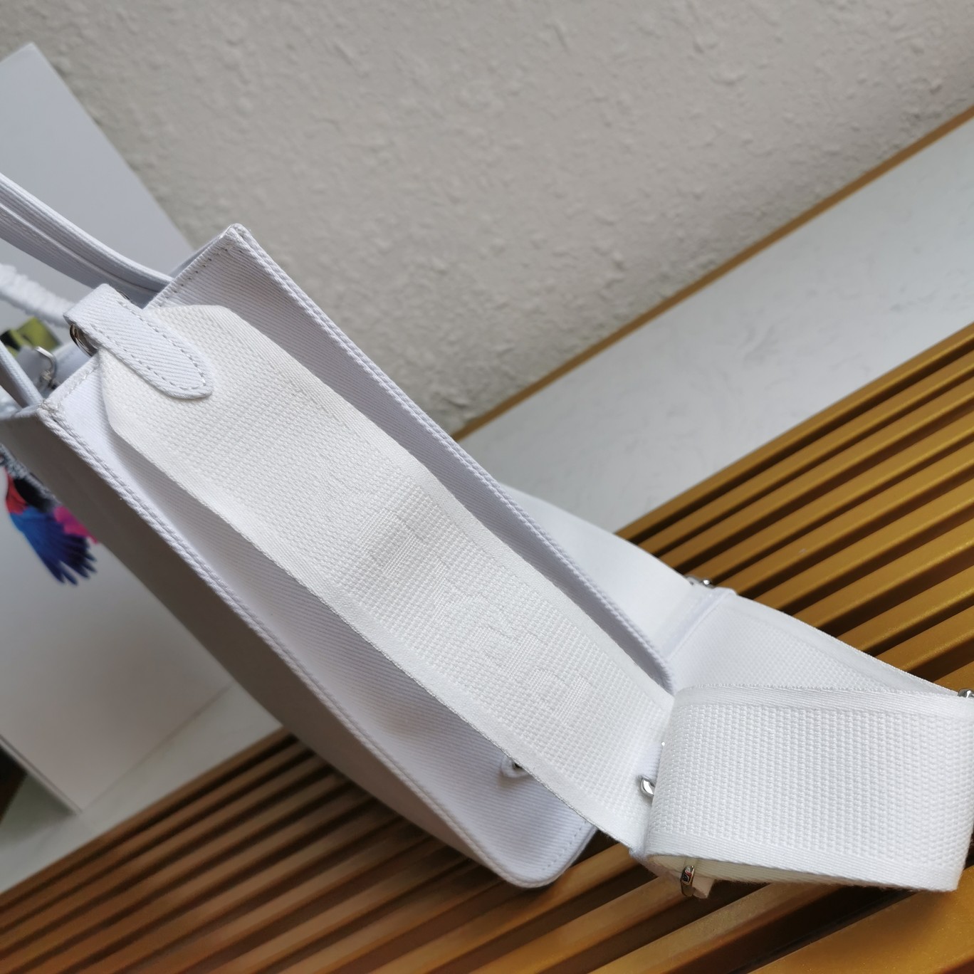 This triangular logo reinterpreted with a fresh new look showcases a large embossed design that exudes a modern vibe. It beautifully embellishes the front of this minimalist herringbone cloth tote bag. The detachable and adjustable shoulder strap adds practical versatility, allowing it to be carried by hand or worn diagonally. Lightweight and fashionable, it’s absolutely stunning. Hurry up and buy it!
