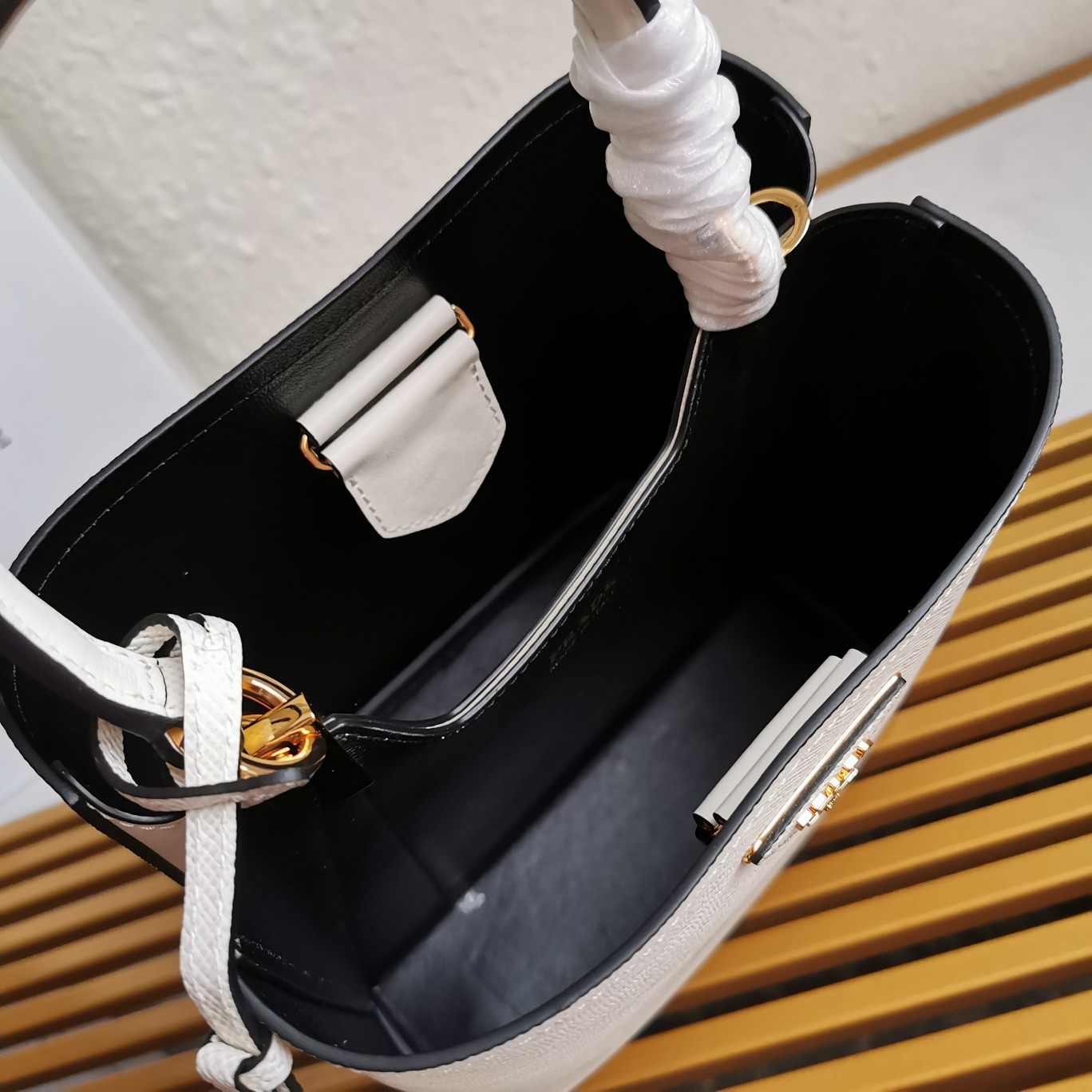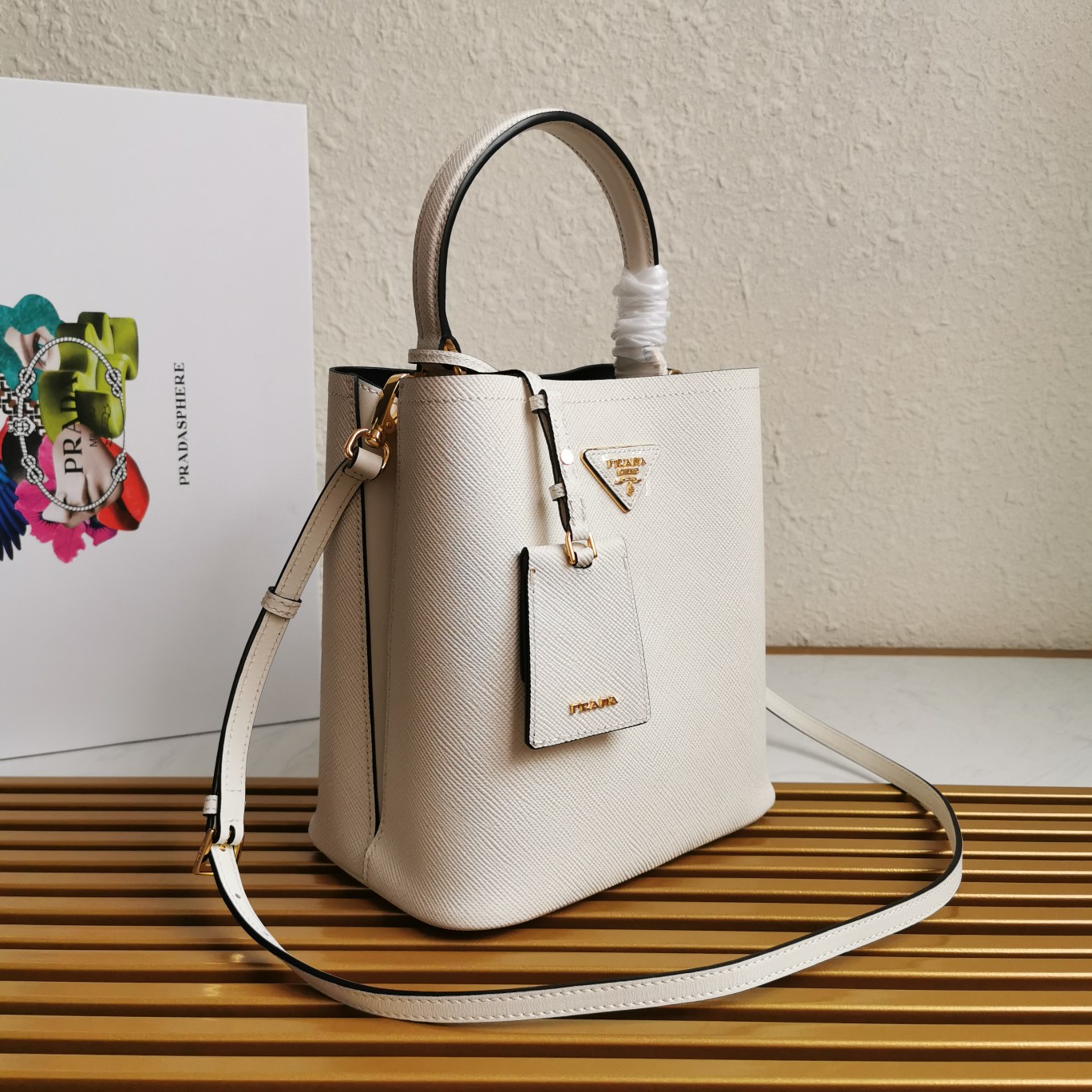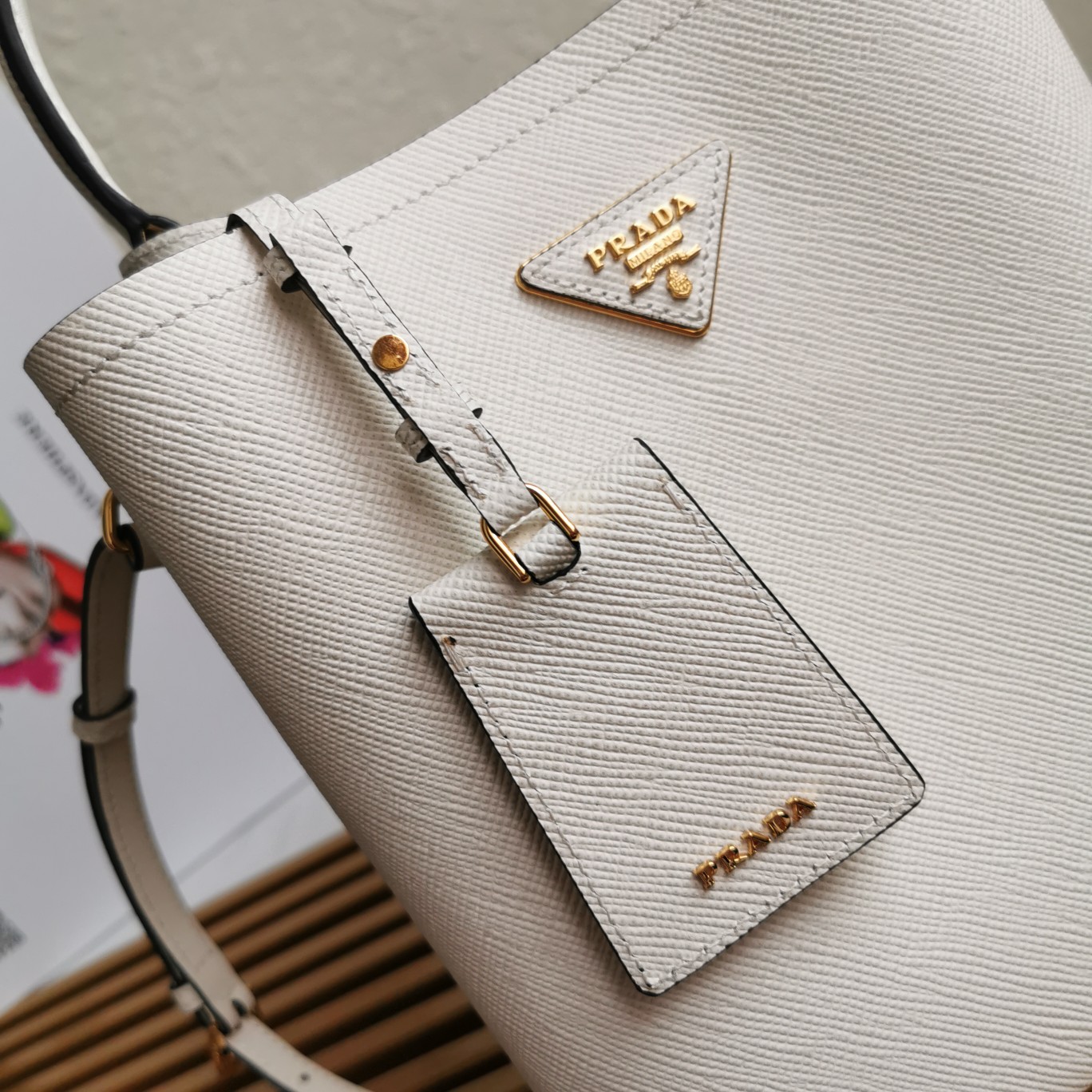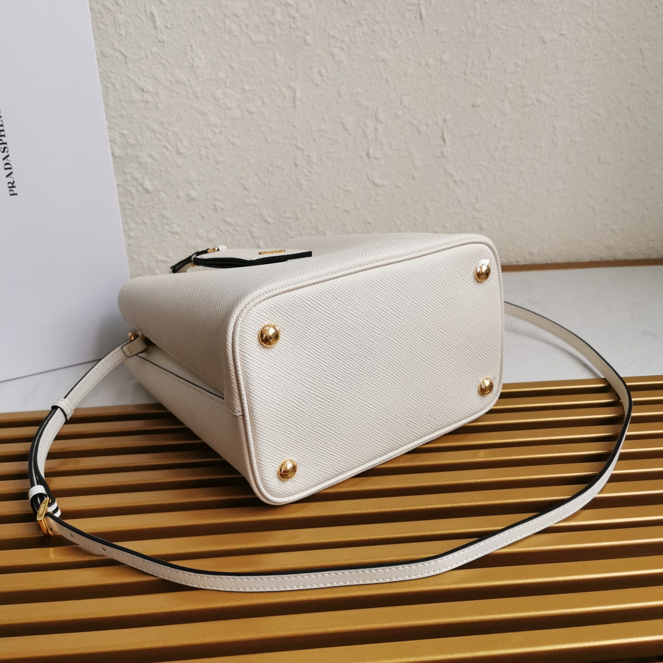 Original item, made with imported Saffiano leather material. The detachable shoulder strap, leather nameplate, and metal logo complement each other. The central pocket with leather-wrapped magnetic closure features a contrasting soft lambskin lining with a Saffiano leather triangle logo. This Double handbag style is elegant, eye-catching, and unique.