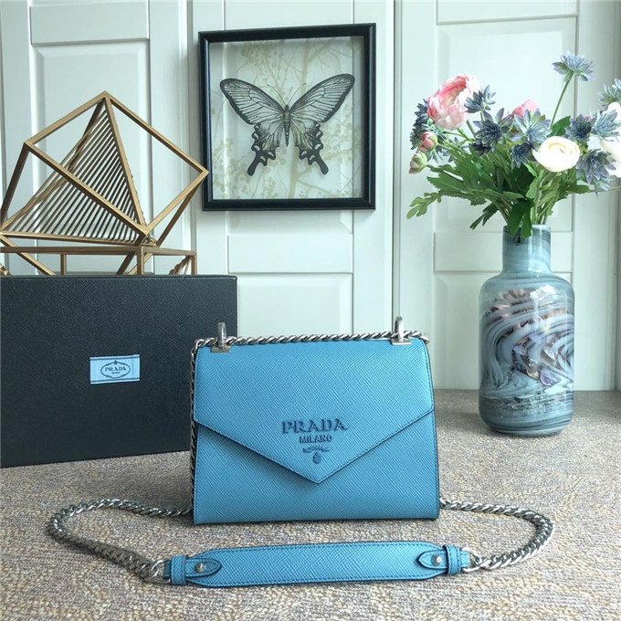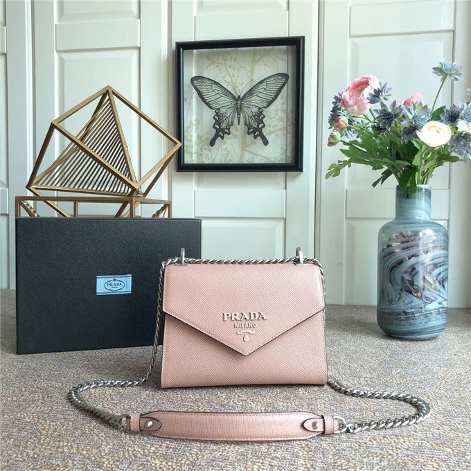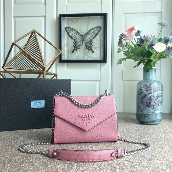 Sleek sophisticated design is the choice for the Prada Monochrome bag in Saffiano leather. The bag has a distinctive tonal metal logo.