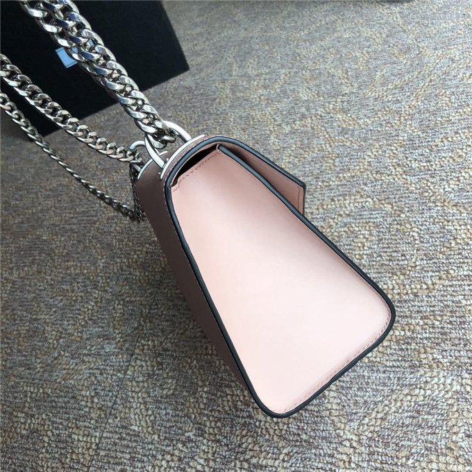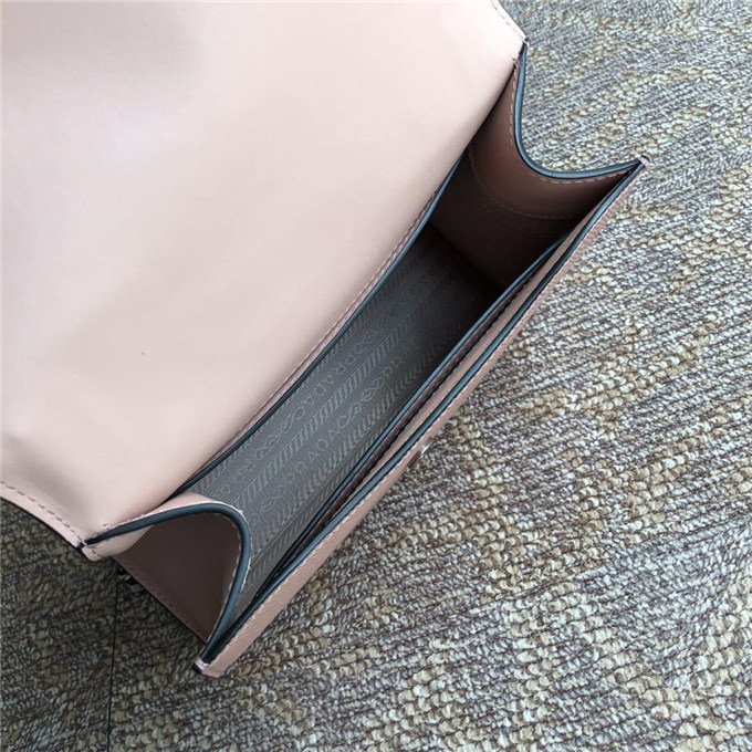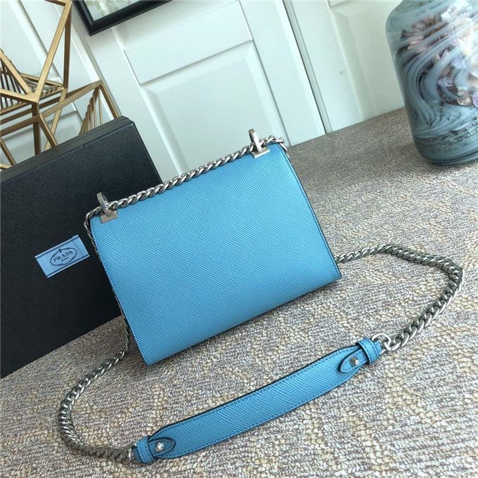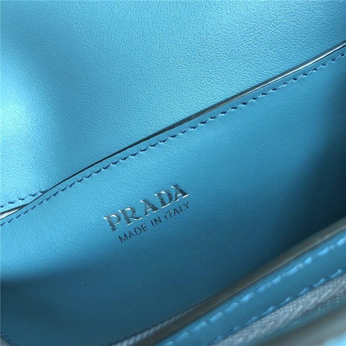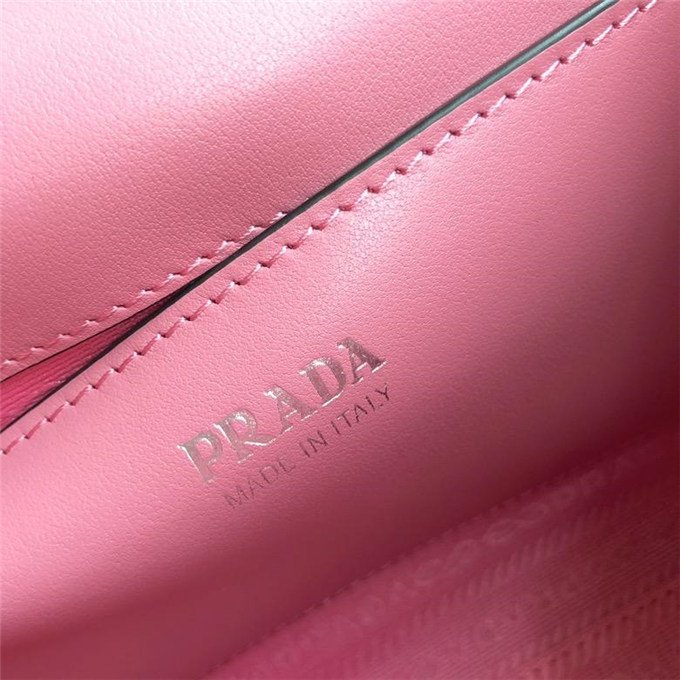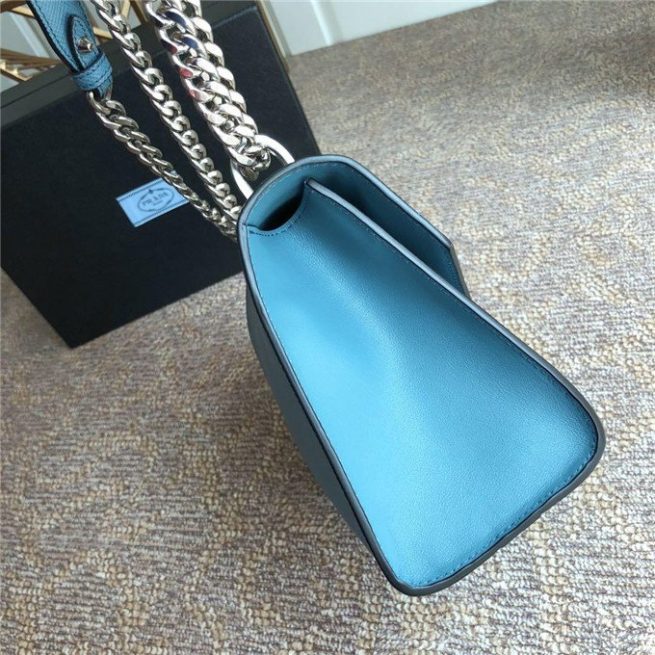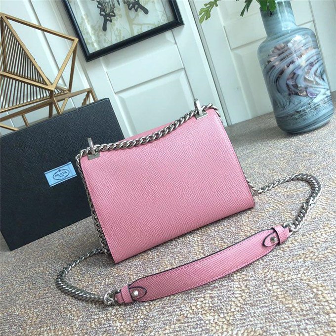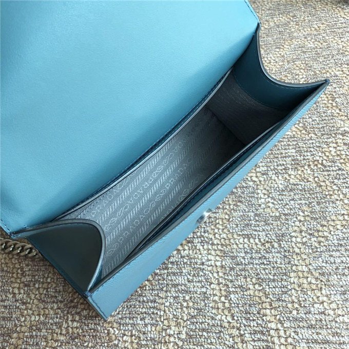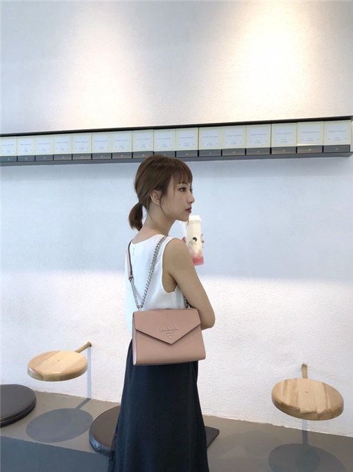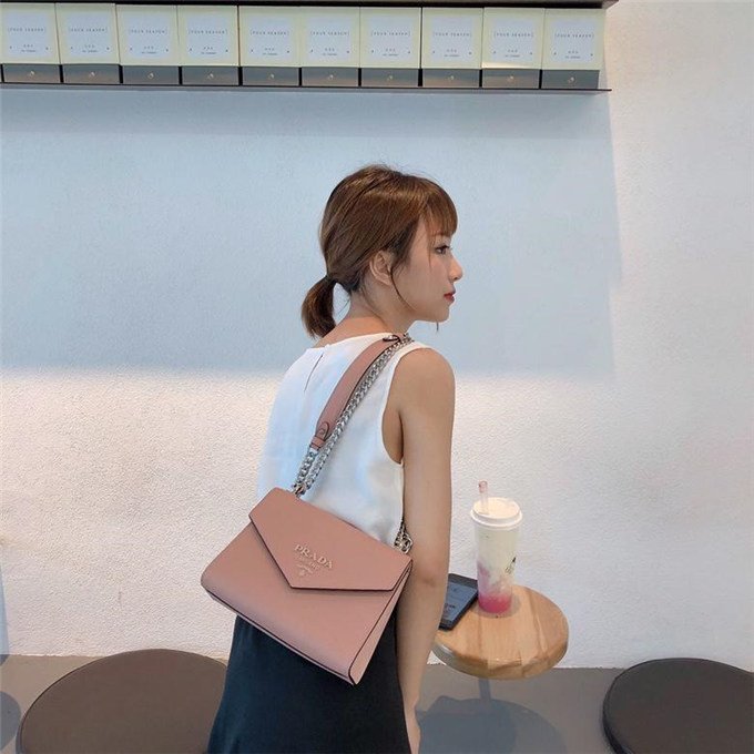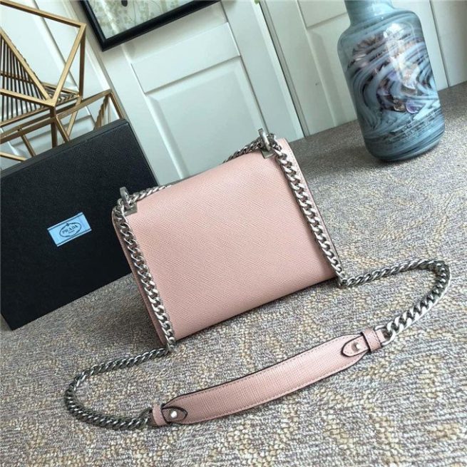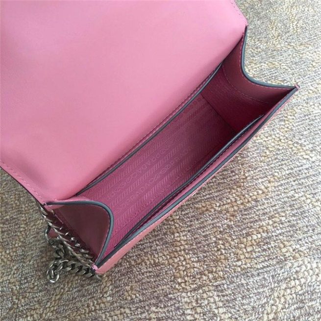 Adjustable chain shoulder strap–-Tonal metal logo–-Magnetic button closure on top–-Prada logo lining–-Two inside pockets