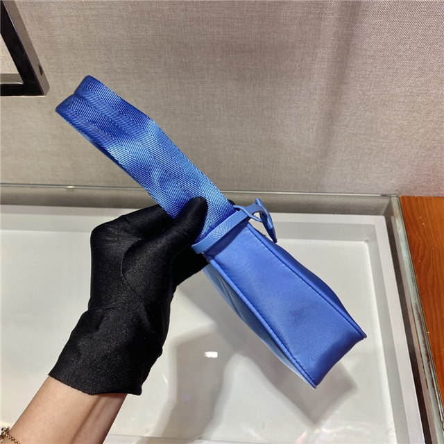 A new interpretation of an iconic Prada style, the Re-Edition 2000 mini-bag is made of innovative Re-Nylon, produced from recycled, purified plastic trash collected in the ocean, fishing nets, and textile waste fibers. The accessory with zipper closure and woven tape handle is decorated with the iconic enameled metal triangle logo.