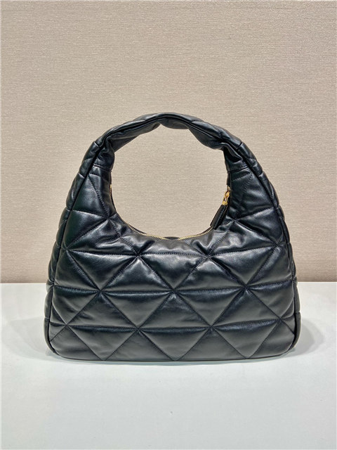 An unusual triangle motif creates three-dimensional plays on this nappa-leather bag, reinterpreting the iconic Prada shape. Defined by a versatile allure, the style is completed by a zipper fastening and signature enameled-metal triangle logo.