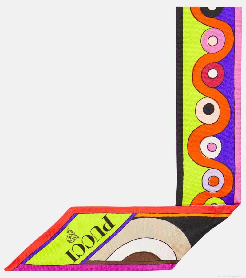 The iconic psychedelic swirling motif is a brand signature, which earned Pucci the title "Prince of Prints". Made from silk twill, this thin scarf with the Onde And Iride print is perfect for wearing around your neck or wrapped around the handle of your favorite handbag.