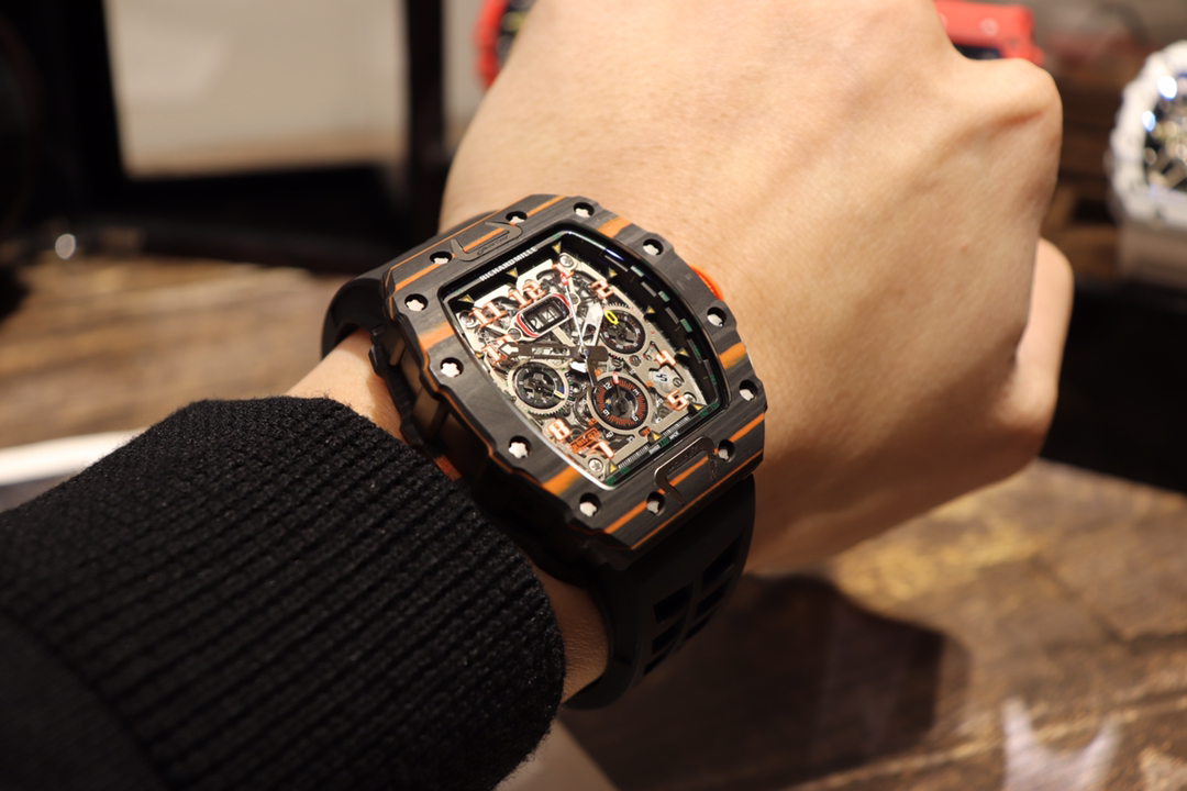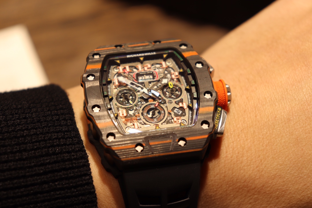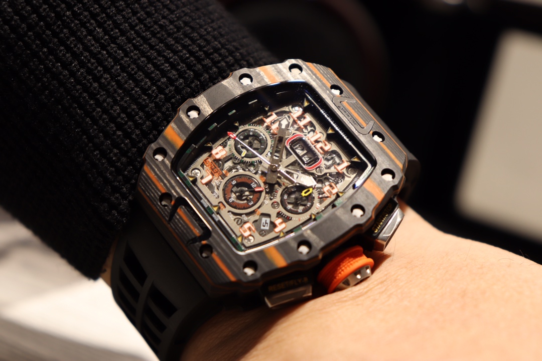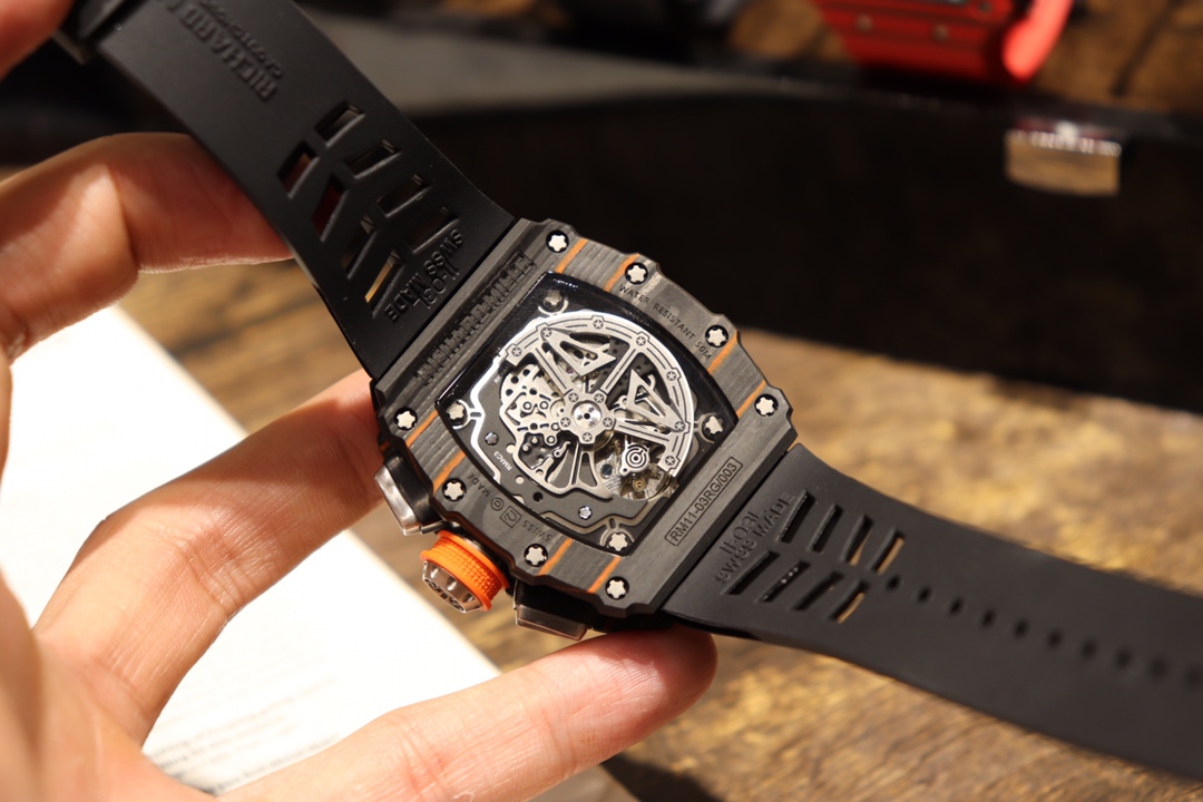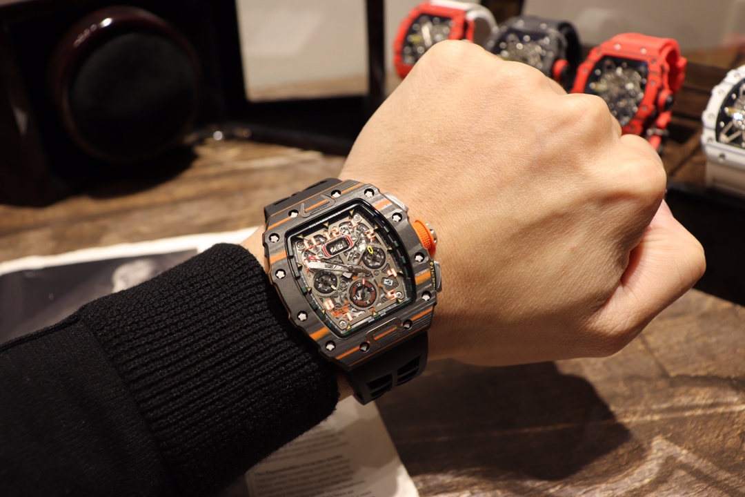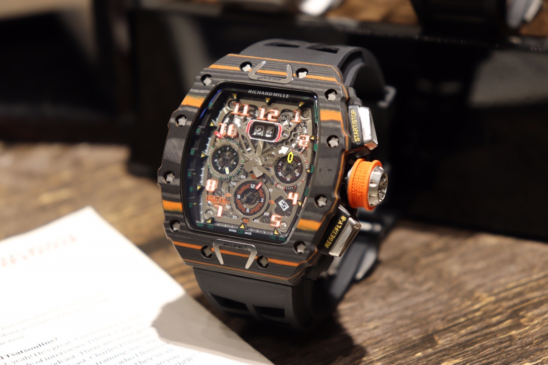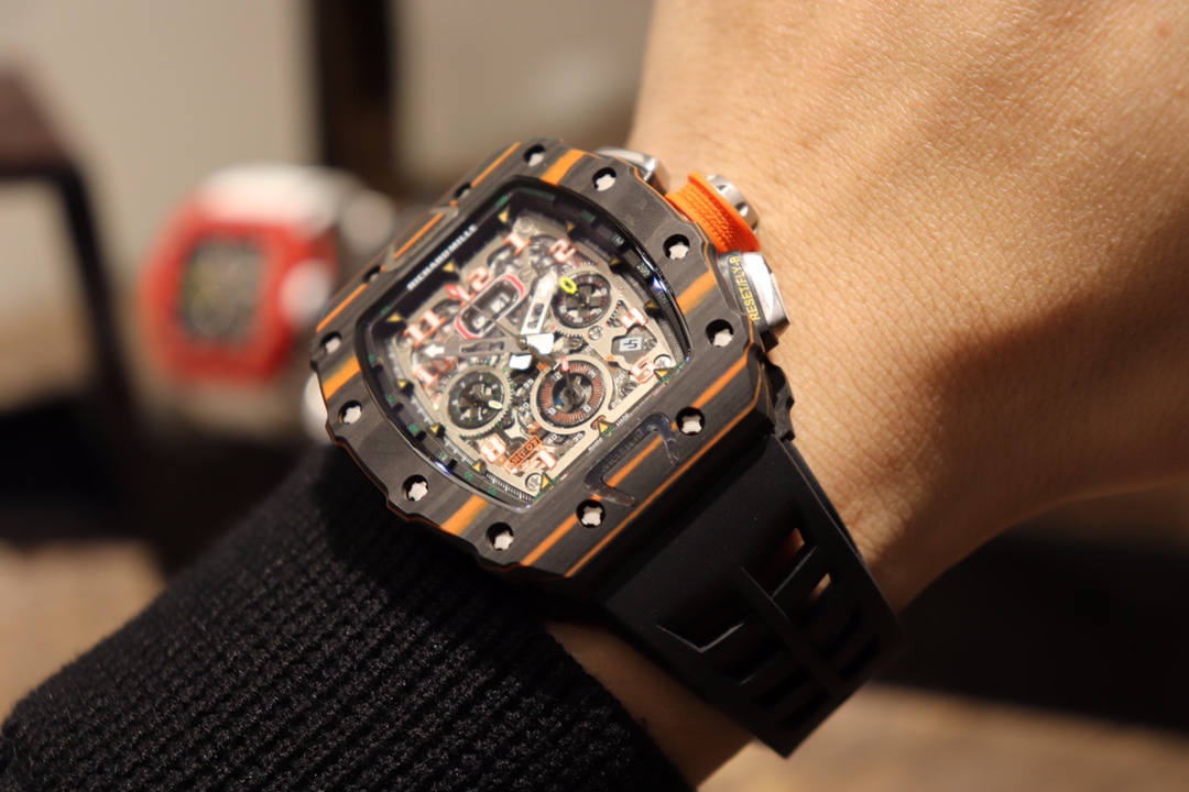 The perfect ergonomic design aligns with the pursuit of perfection that is emblematic of the brand’s iconic architecture. The RM 11-03 watch retains its easily recognizable signature appearance, but the craftsmanship used is far superior to its predecessors. Its design inspiration comes from the pedals of F1 cars. All these optimized modifications give the RM 11-03 Flyback Chronograph Automatic Watch a sportier and more contemporary feel than previous models!
