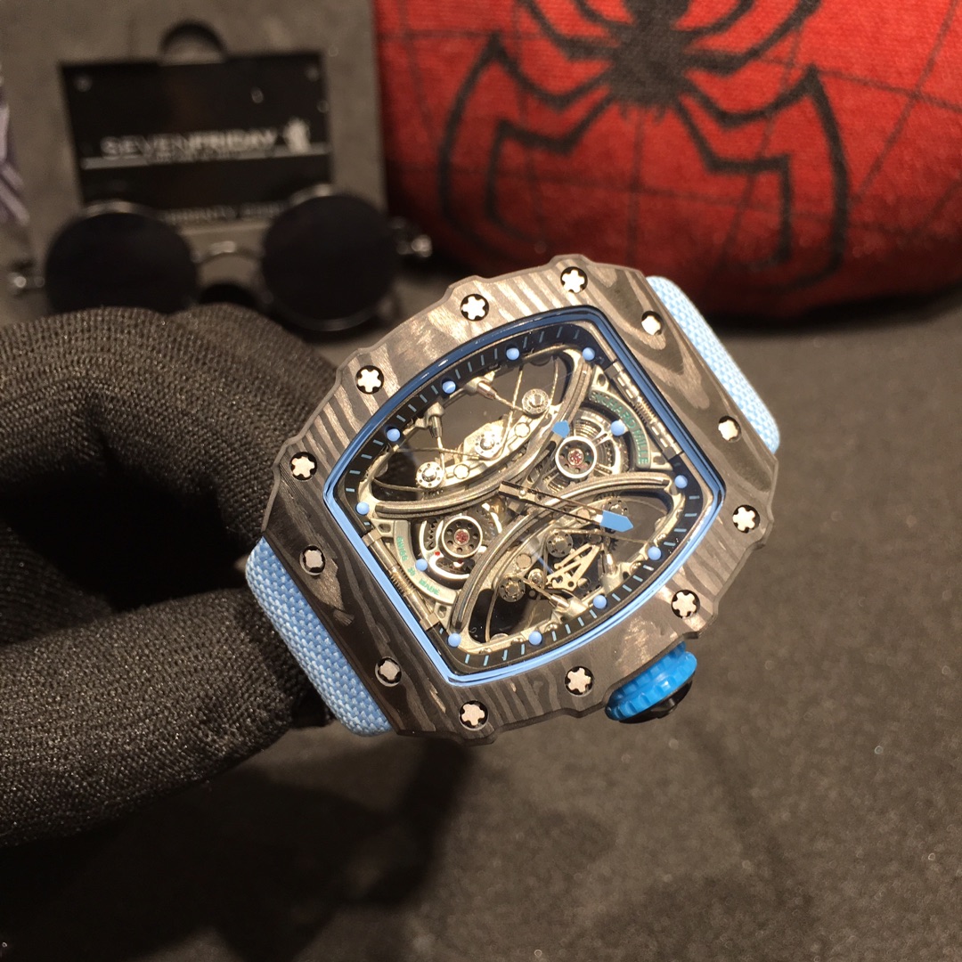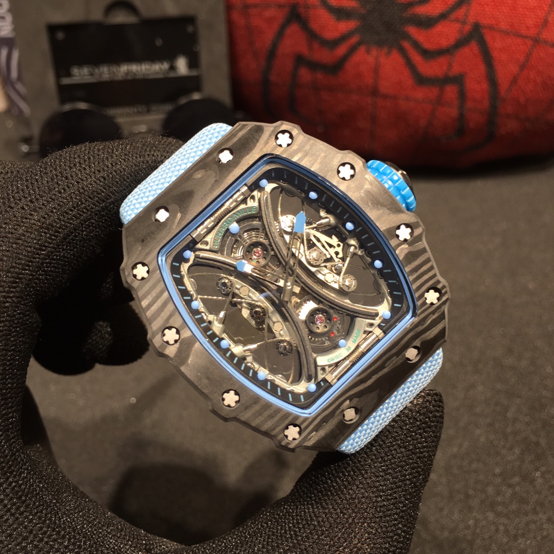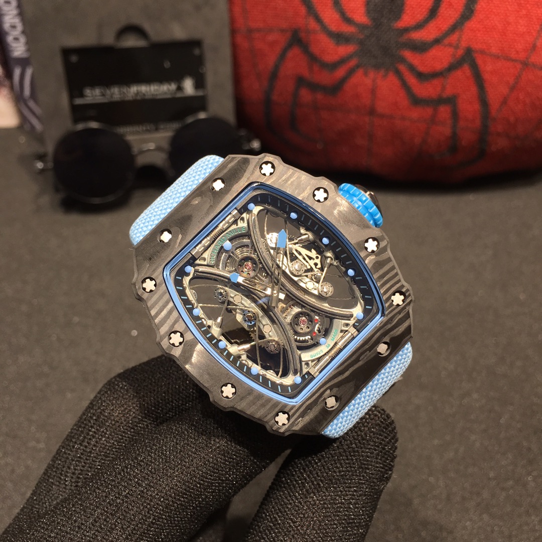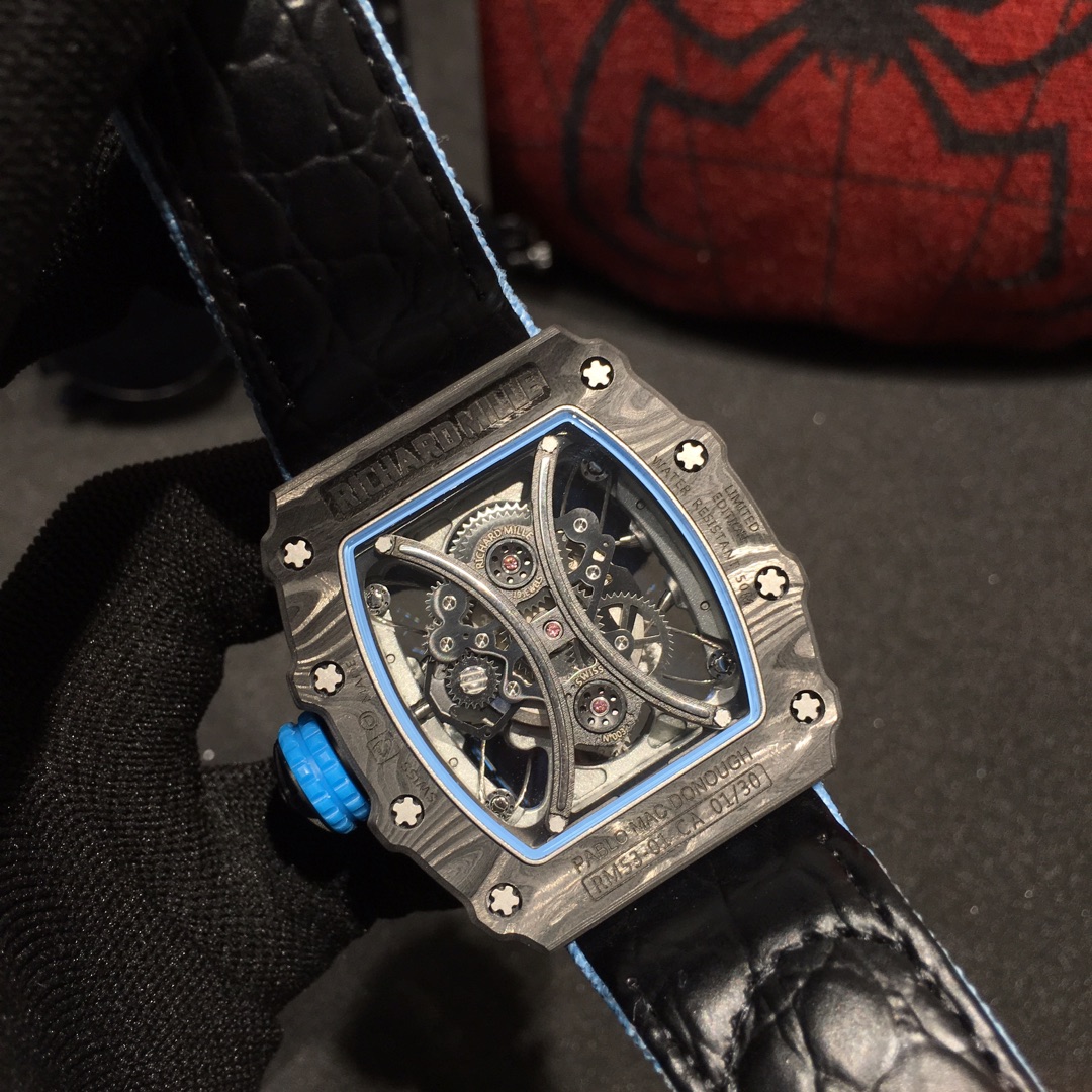 Combining watch design with sports events, this timepiece perfectly embodies the spirit of brave determination and relentless perseverance on the field. The RM53-01, inspired by equestrian sports, utilizes various high-tech materials to withstand intense impacts during movement, ensuring its durability and proper functioning. The high-tech materials create a “protective gear” effect.