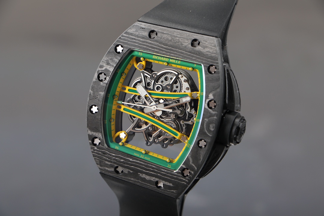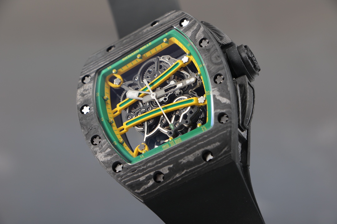 RICHARD MILLE once again collaborates with Jamaican sprinter Yohan Blake to design the all-carbon fiber “RM 61-01 Ultimate Track” watch. The unique asymmetrical case conveys a sense of power and speed while maintaining the advantages of being ultra-lightweight and highly resistant to impact.