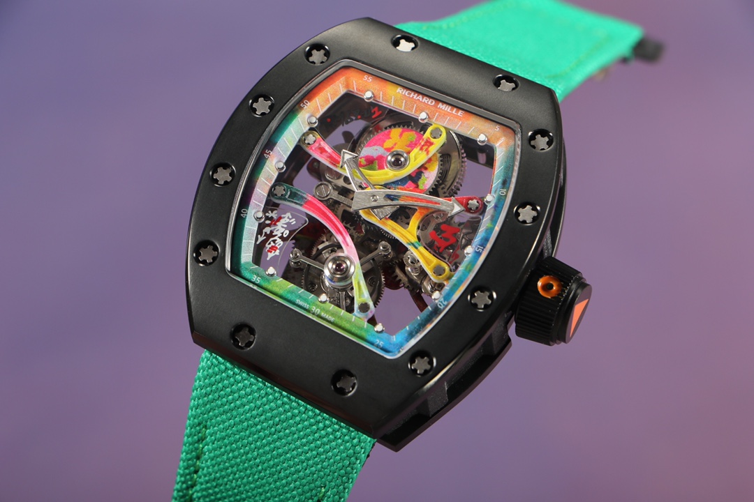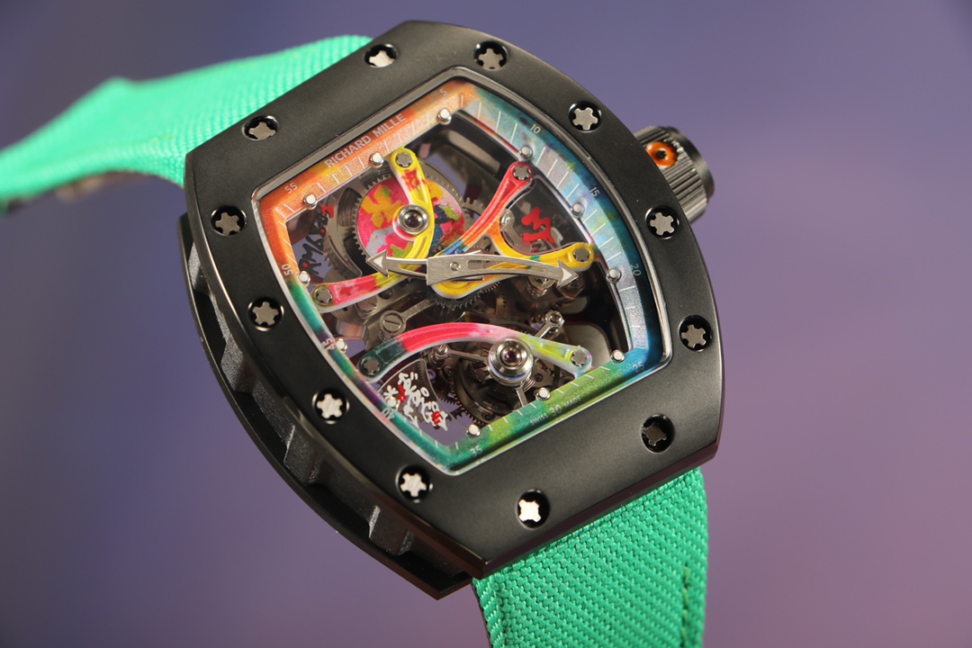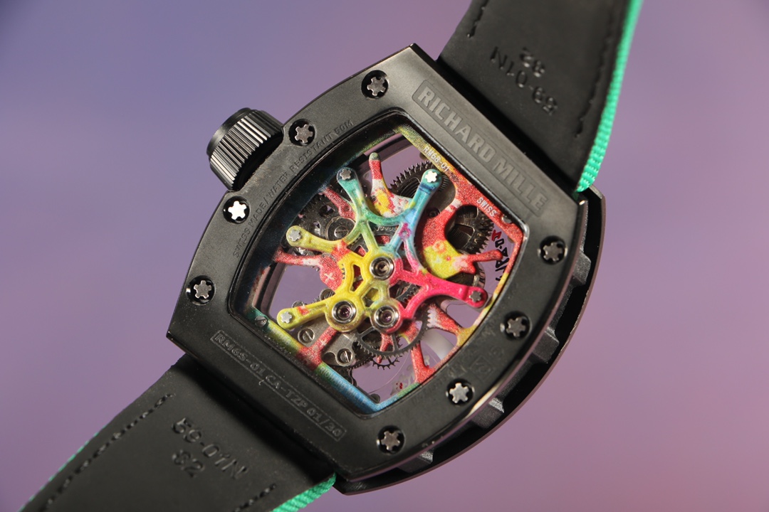 The encounter between contemporary art graffiti and wristwatches infuses the timepiece with an artistic aura, adding a sense of culture and aesthetics to the watch. Each component on the watch is hand-sprayed and painted, showcasing graceful lines and vibrant colors, all of which embody the artistic value of a precious masterpiece.