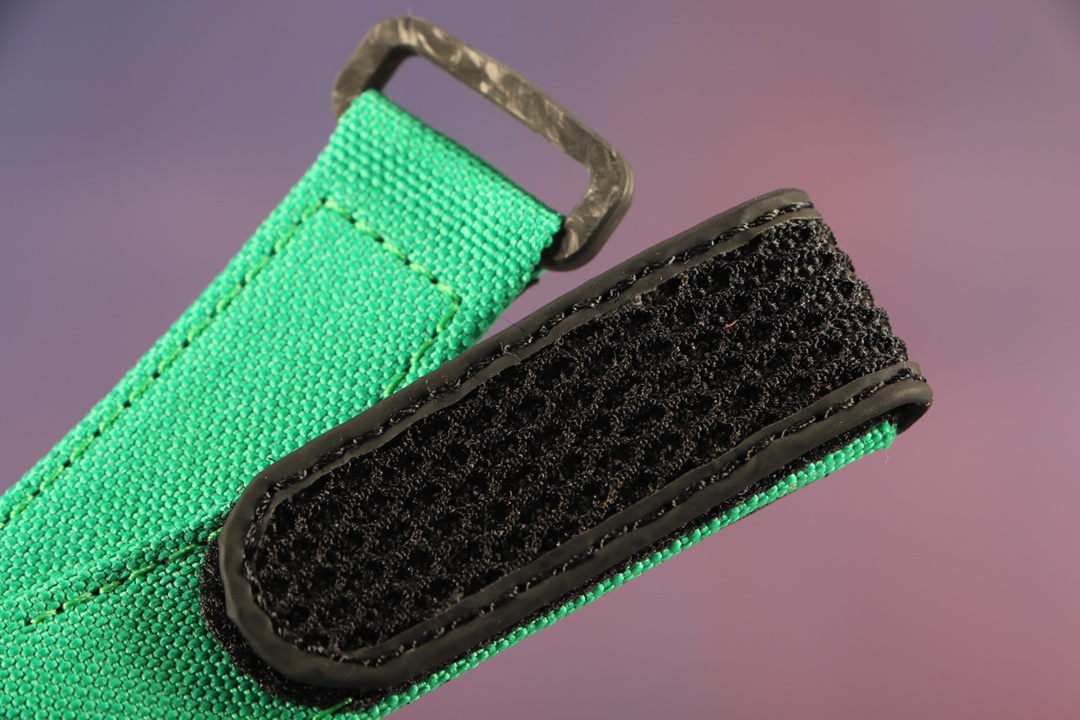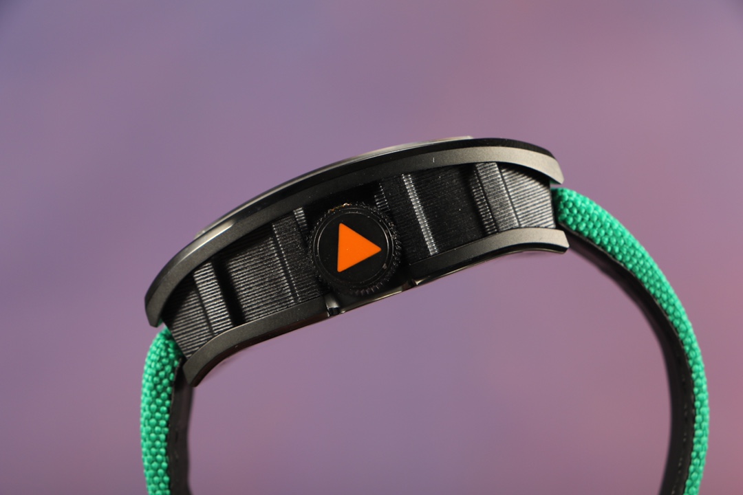 The watch strap is available in two options: Velcro strap with TPT carbon fiber material buckle or rubber strap with folding clasp and spring plate.