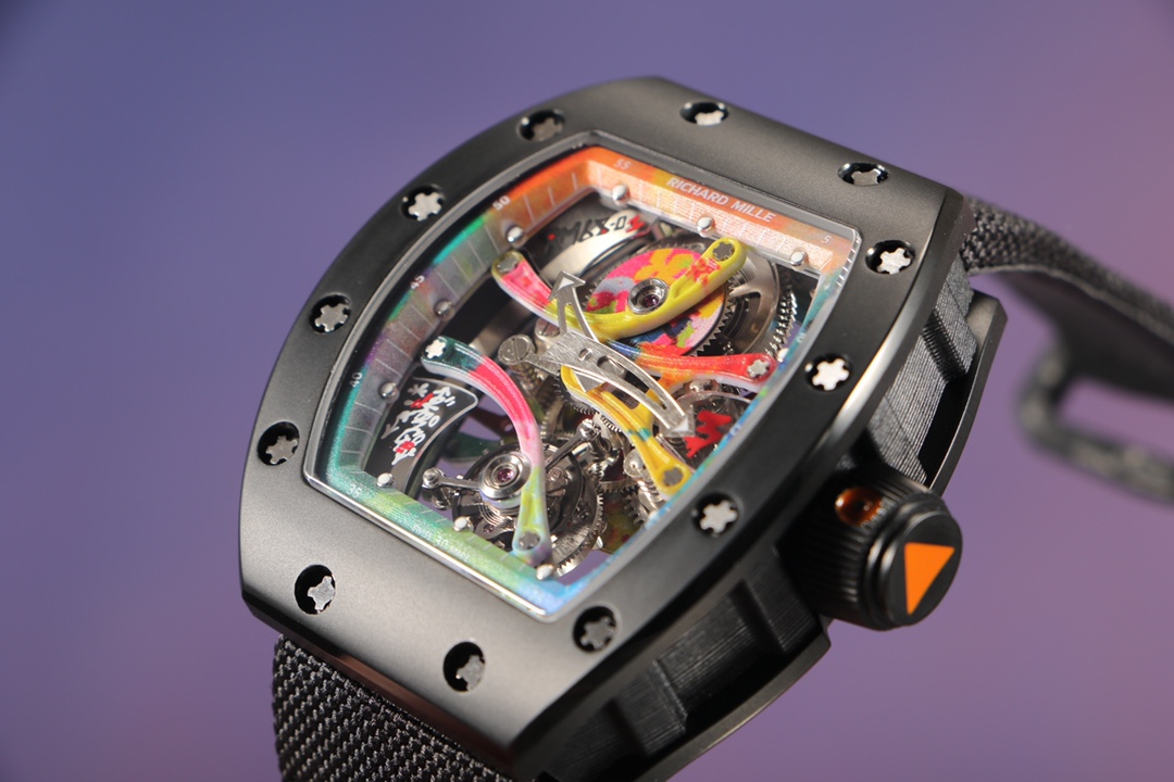The encounter between contemporary art graffiti and wristwatches infuses the timepiece with an artistic aura, adding a sense of culture and aesthetics to the watch. Each component on the watch is hand-sprayed and painted, showcasing graceful lines and vibrant colors, all of which embody the artistic value of a precious masterpiece.