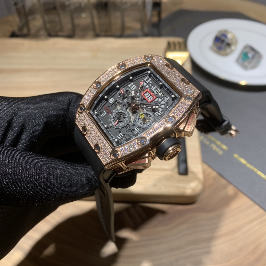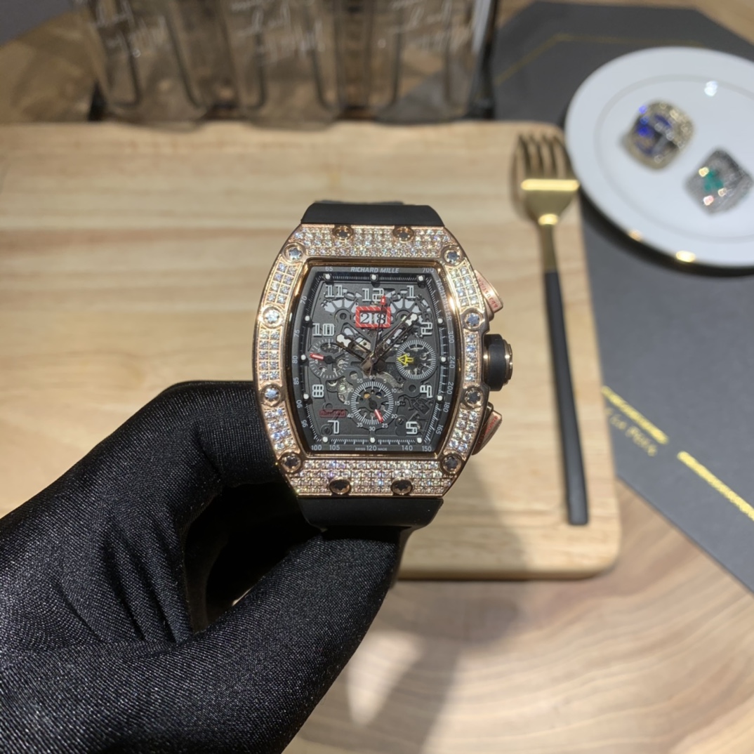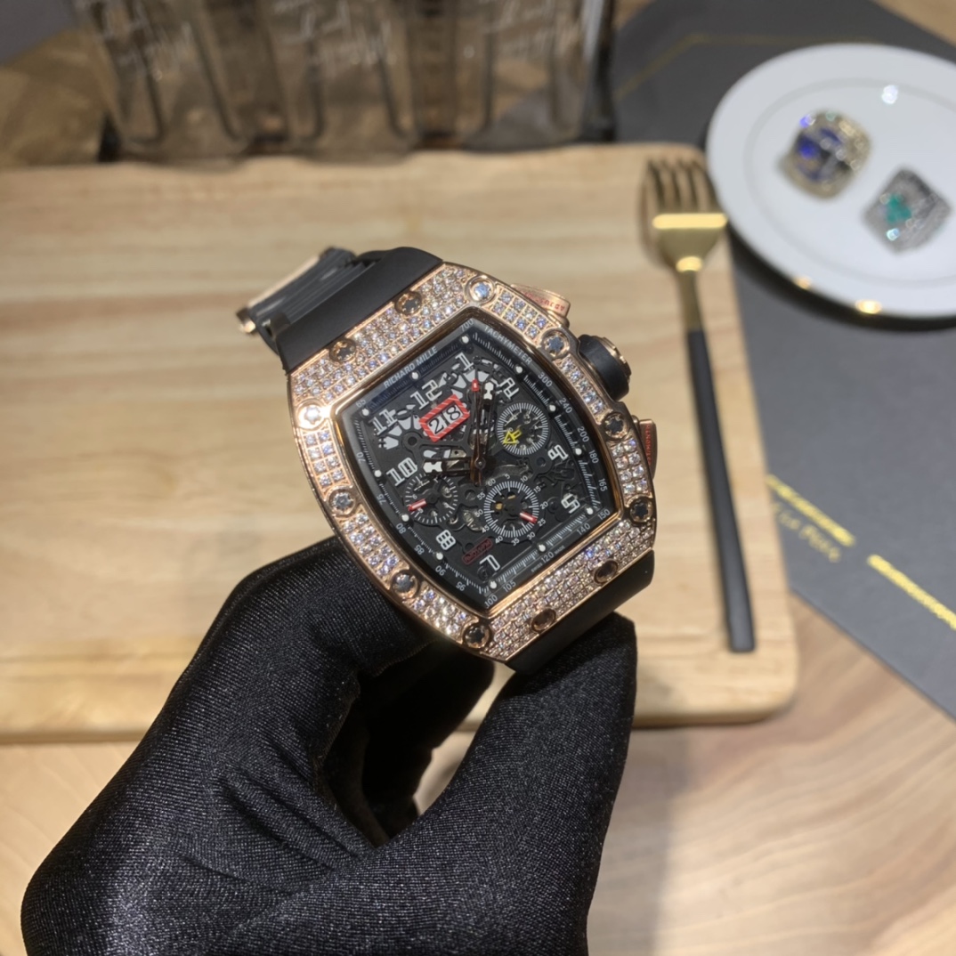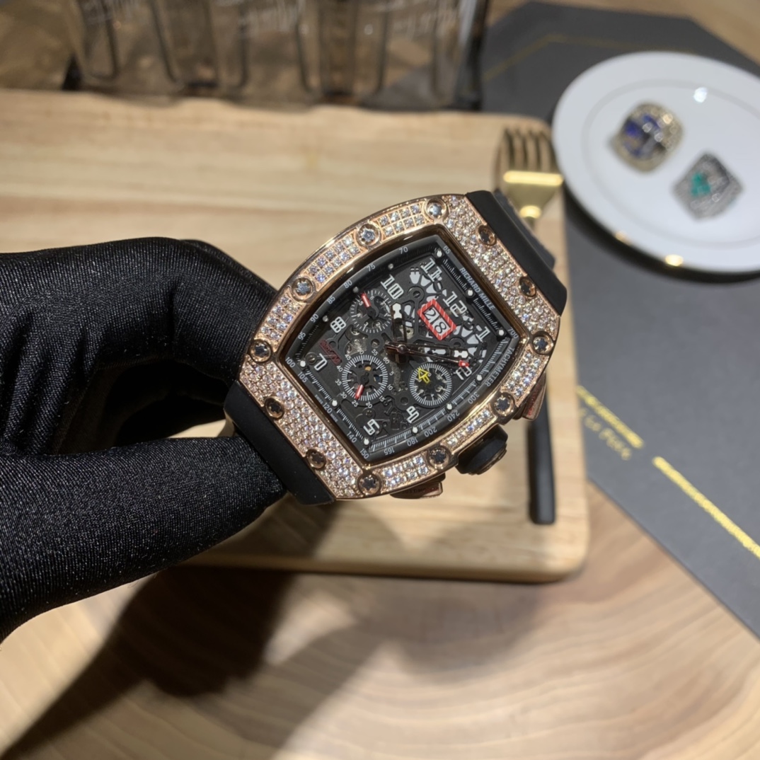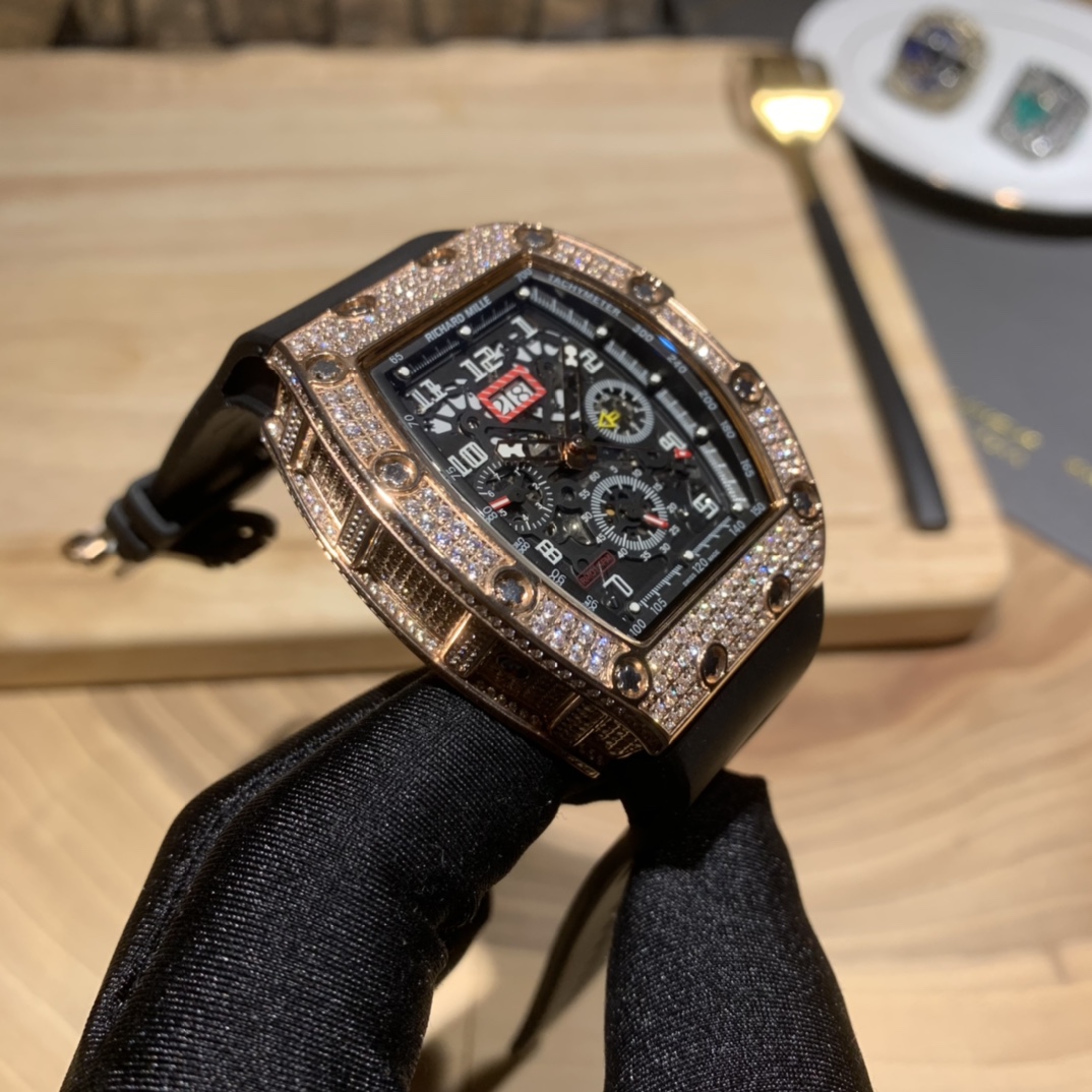 • Richard Mille RM-011 Men’s Full Diamond Six-Hand Multifunctional Watch