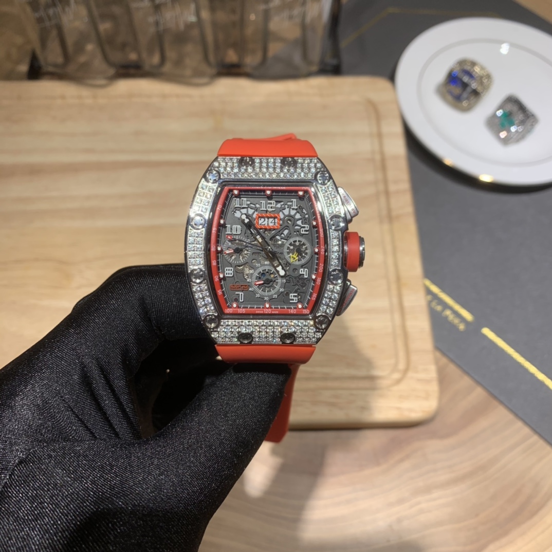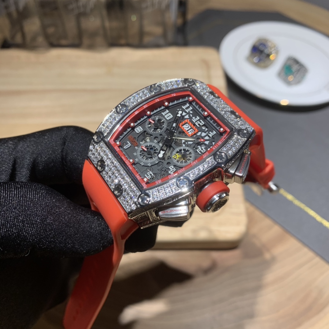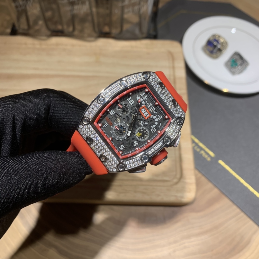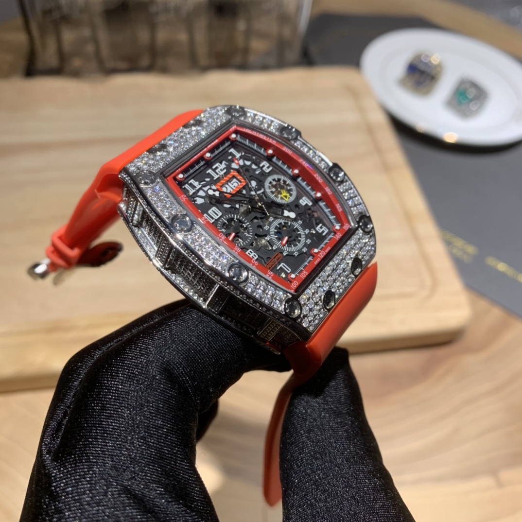 • Richard Mille RM-011 Men’s Full Diamond Six-Hand Multifunctional Watch