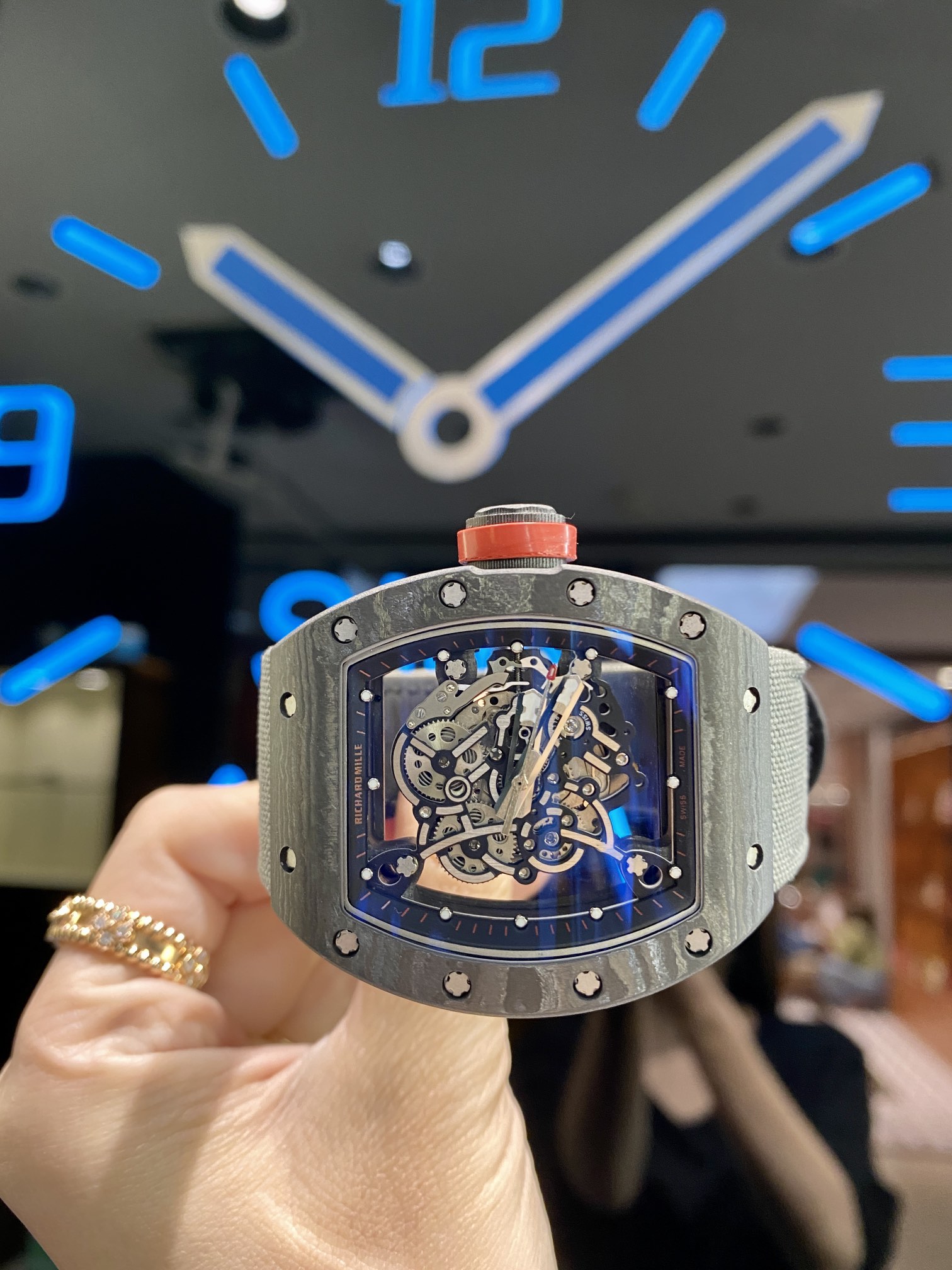 The interweaving pattern showcases a modern and casual style, making the RM055 the most comfortable watch to wear on the wrist. It combines strength and sensitivity, balancing resilience and sensibility!