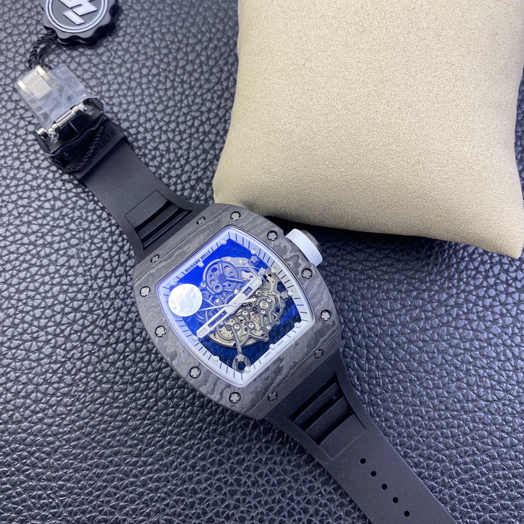 The Richard Mille RM055 Carbon Fiber Limited Edition watch delivers an ultimate visual impact. Richard Mille not only showcases exquisite watchmaking craftsmanship and remains true to the spirit of traditional watches but also advocates breaking through existing boundaries and exploring new heights in watchmaking. It seamlessly incorporates new elements of the new century into traditional craftsmanship, making comfortable, shock-resistant, durable, precise, and lightweight watches a top brand in the watch industry.