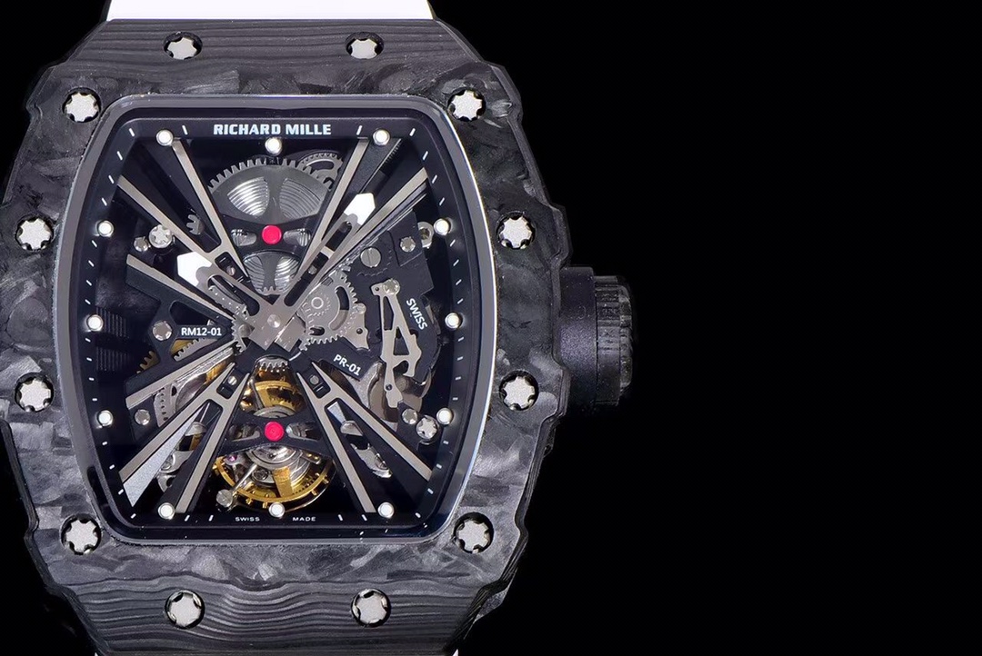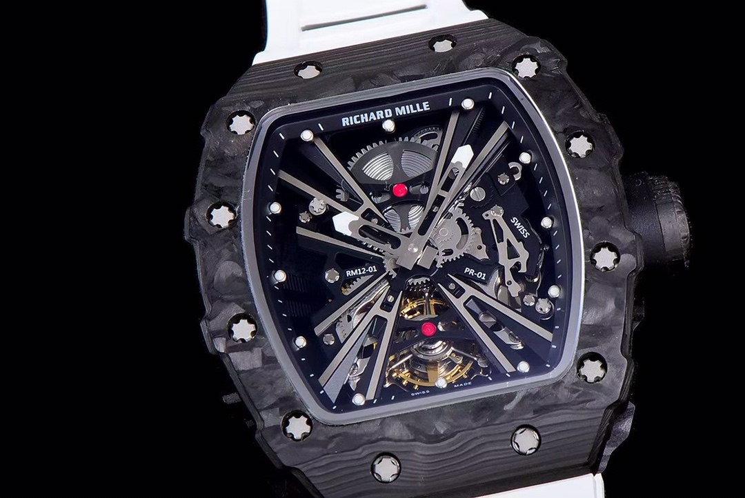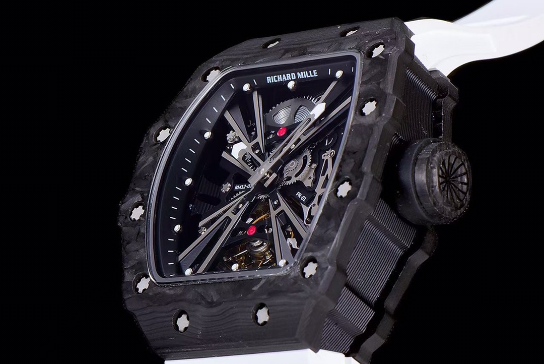 The RM 12-01 Tourbillon Limited Editions is an upgraded version based on the RM 012 movement, which was released in 2006. It incorporates elements inspired by racing chassis into the movement bridges, making it a highly contemporary timepiece.