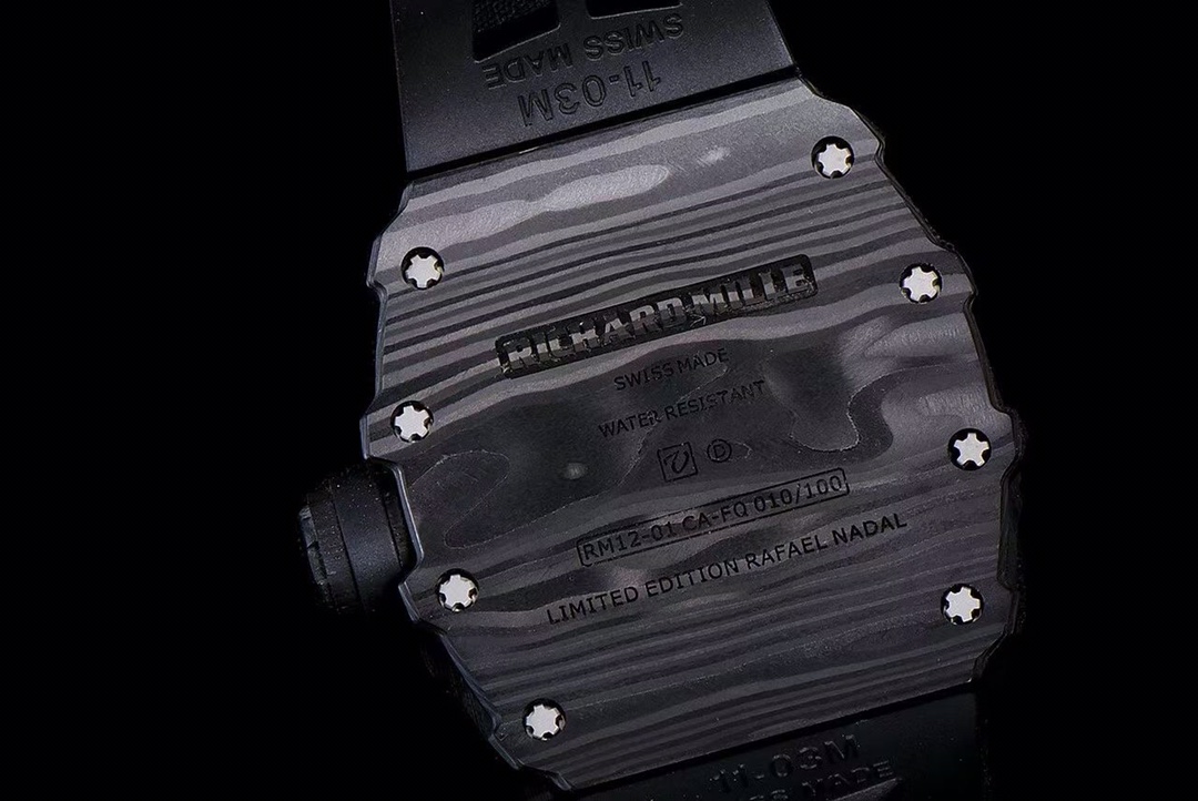 The RM 12-01 Tourbillon Limited Editions is an upgraded version based on the RM 012 movement, which was released in 2006. It incorporates elements inspired by racing chassis into the movement bridges, making it a highly contemporary timepiece.