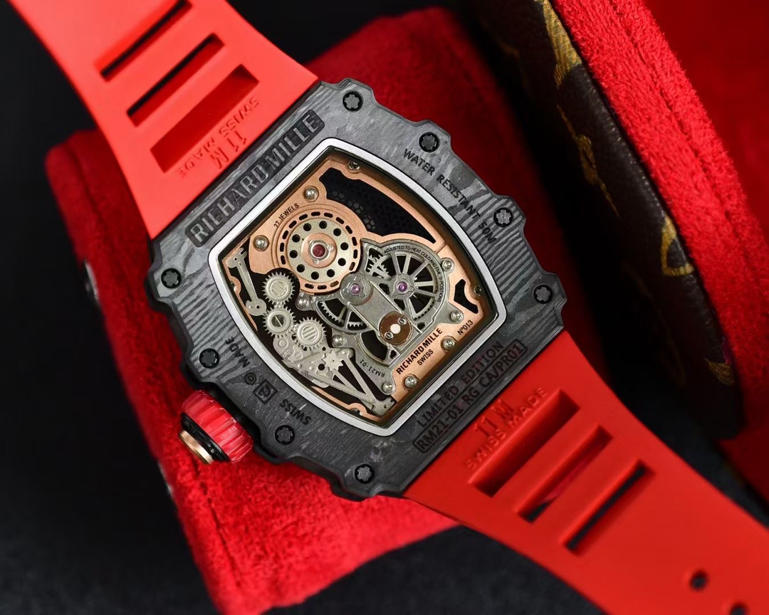 The RICHARD MILLE RM 21-01 watch resembles a true wrist-bound aircraft, harnessing cutting-edge technology as its powerful driving force, continuously breaking free from the constraints of traditional materials in the watchmaking industry. Its skeletonized design exudes a sense of technology.
