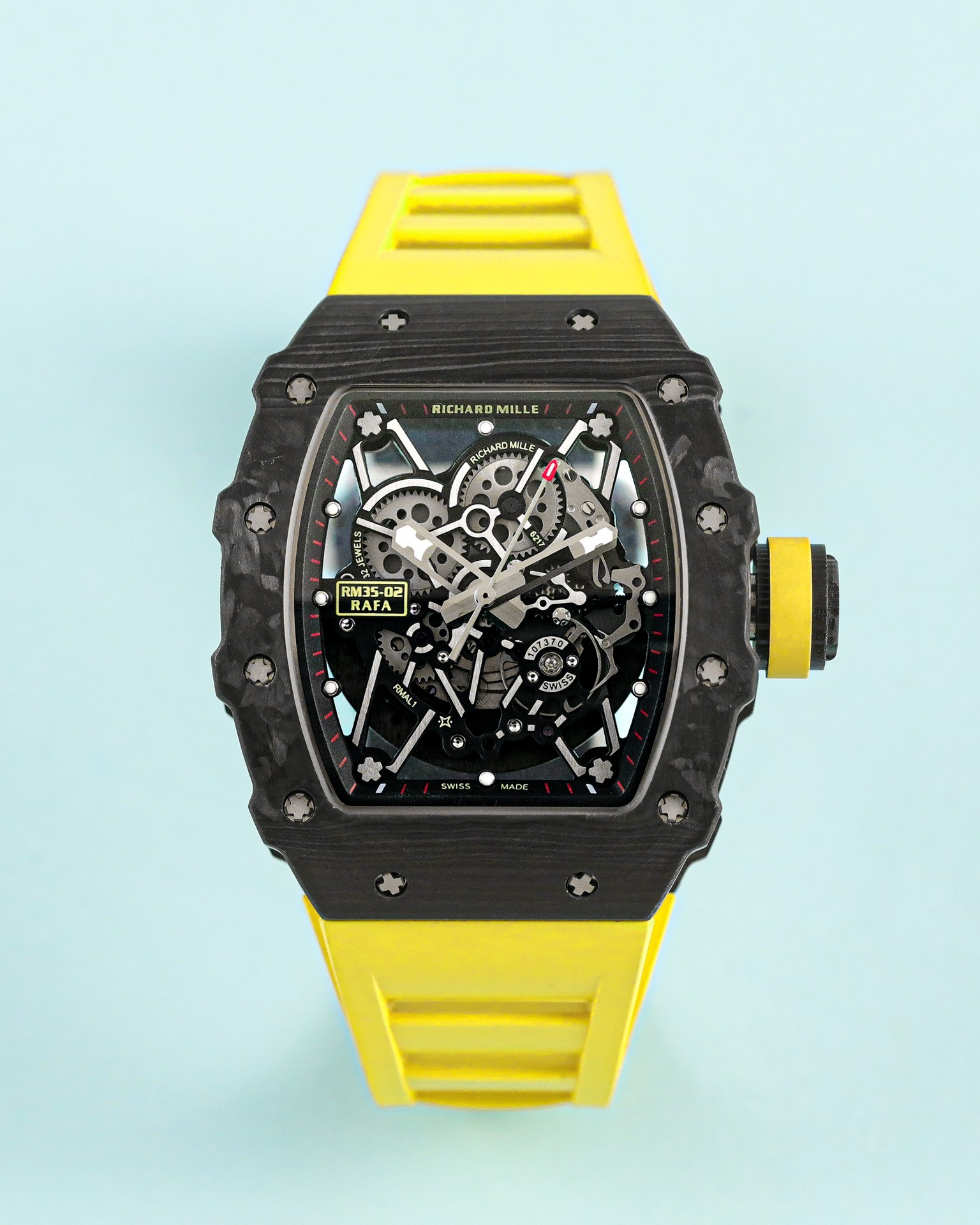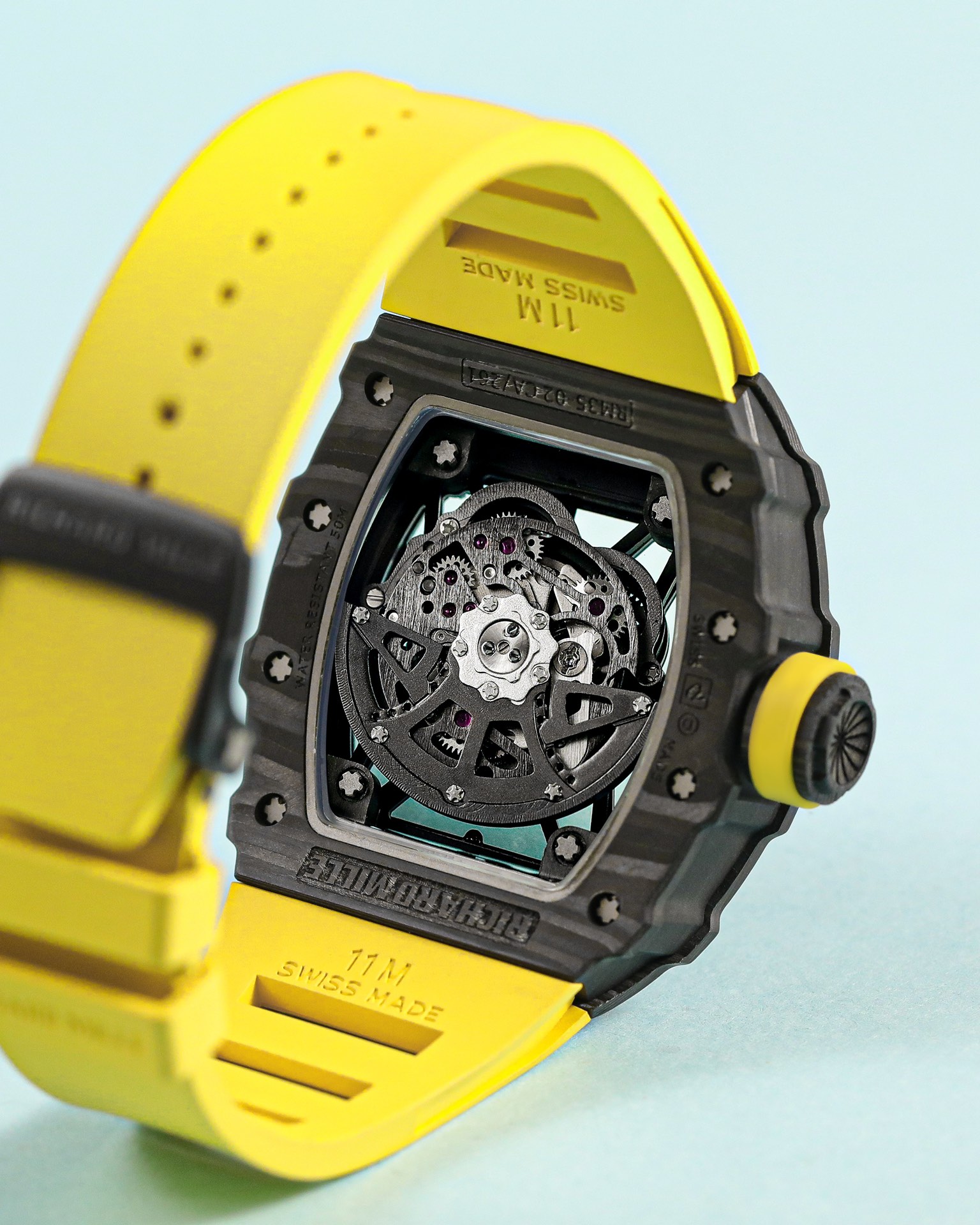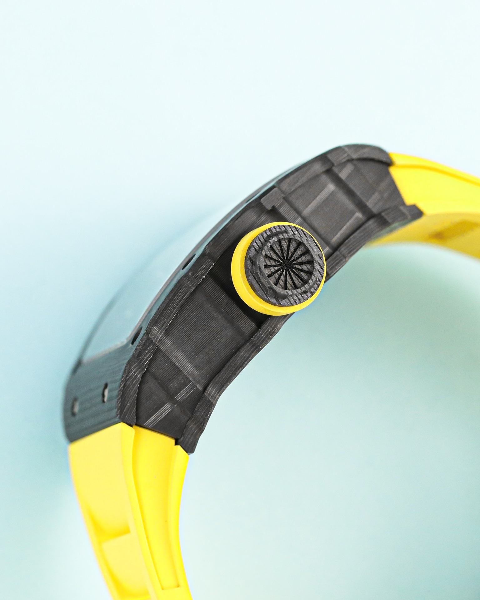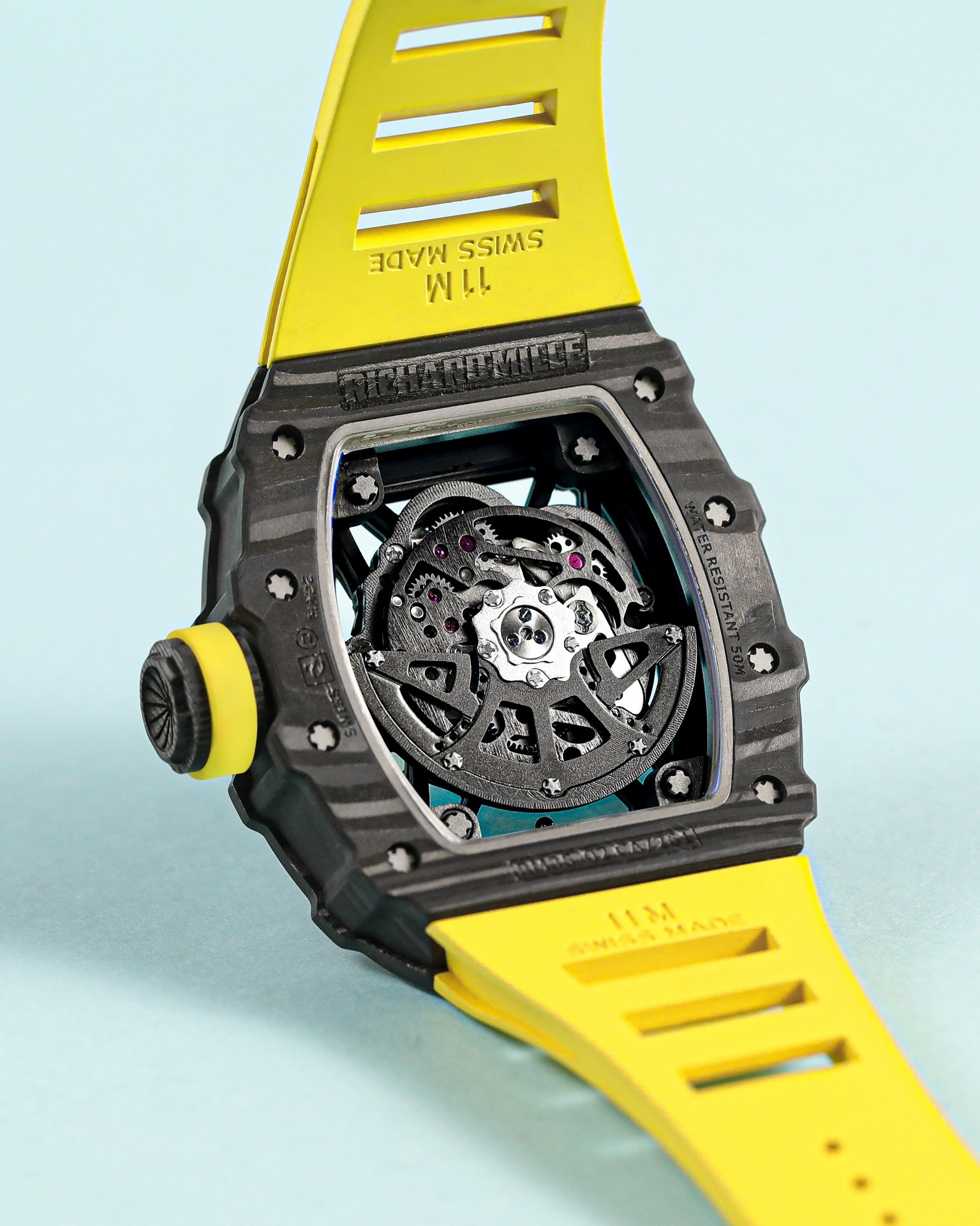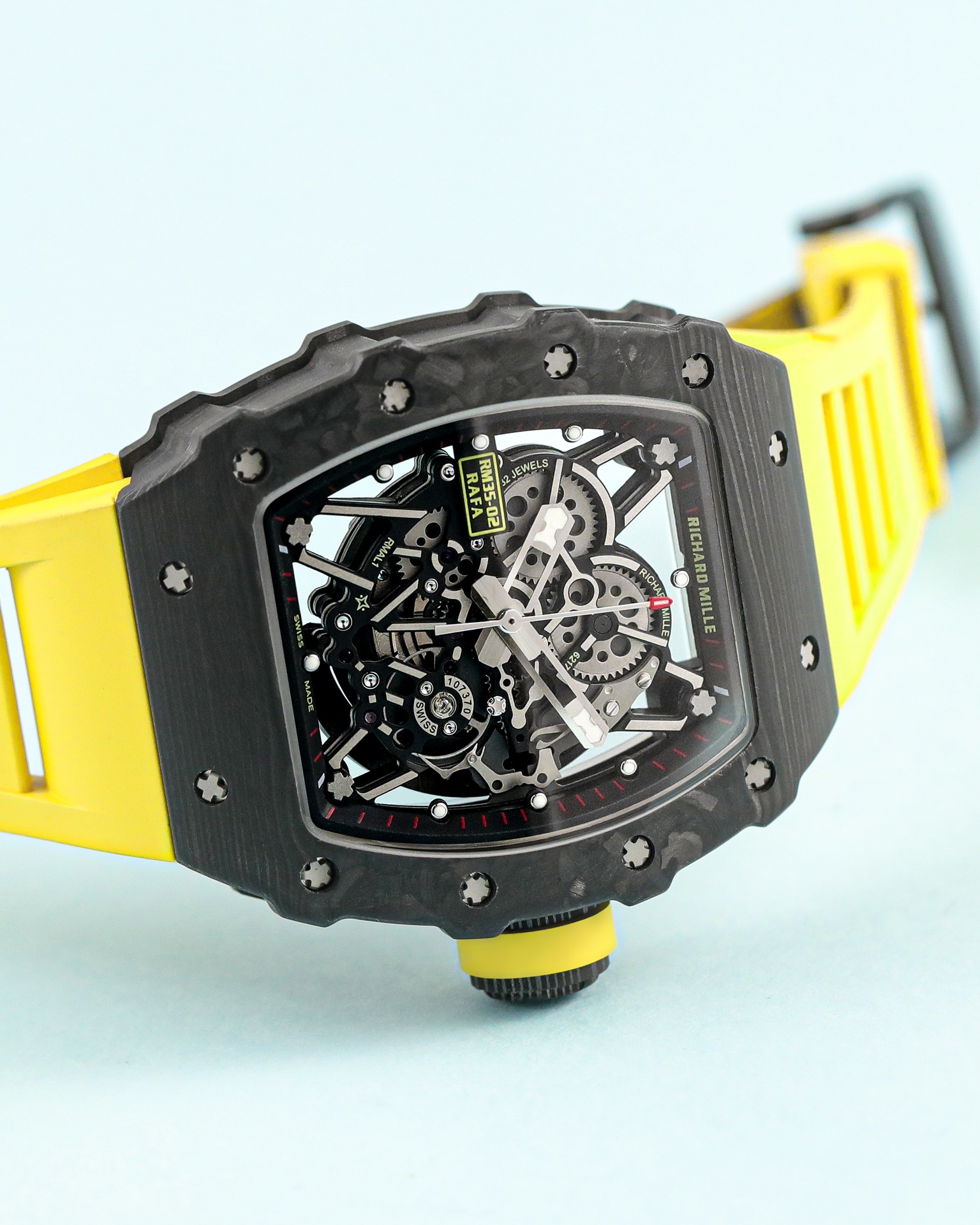 Not only does it possess the elegant temperament unique to the high-tech material of carbon fiber, but the interlacing patterns also showcase a modern and casual style, making it the most comfortable RM035 to wear on the wrist. It combines strength and sensibility, embodying resilience and sensitivity.