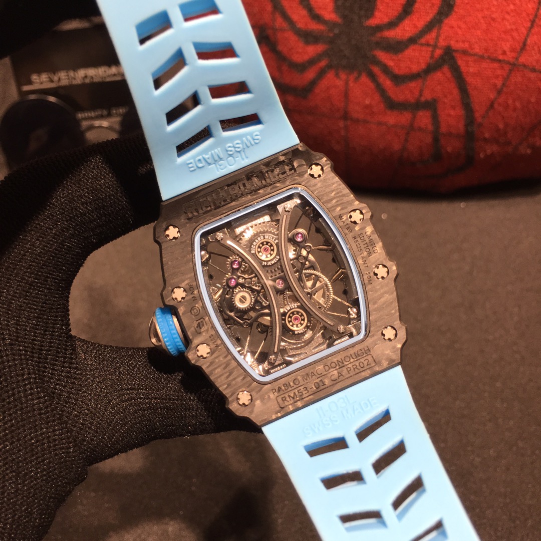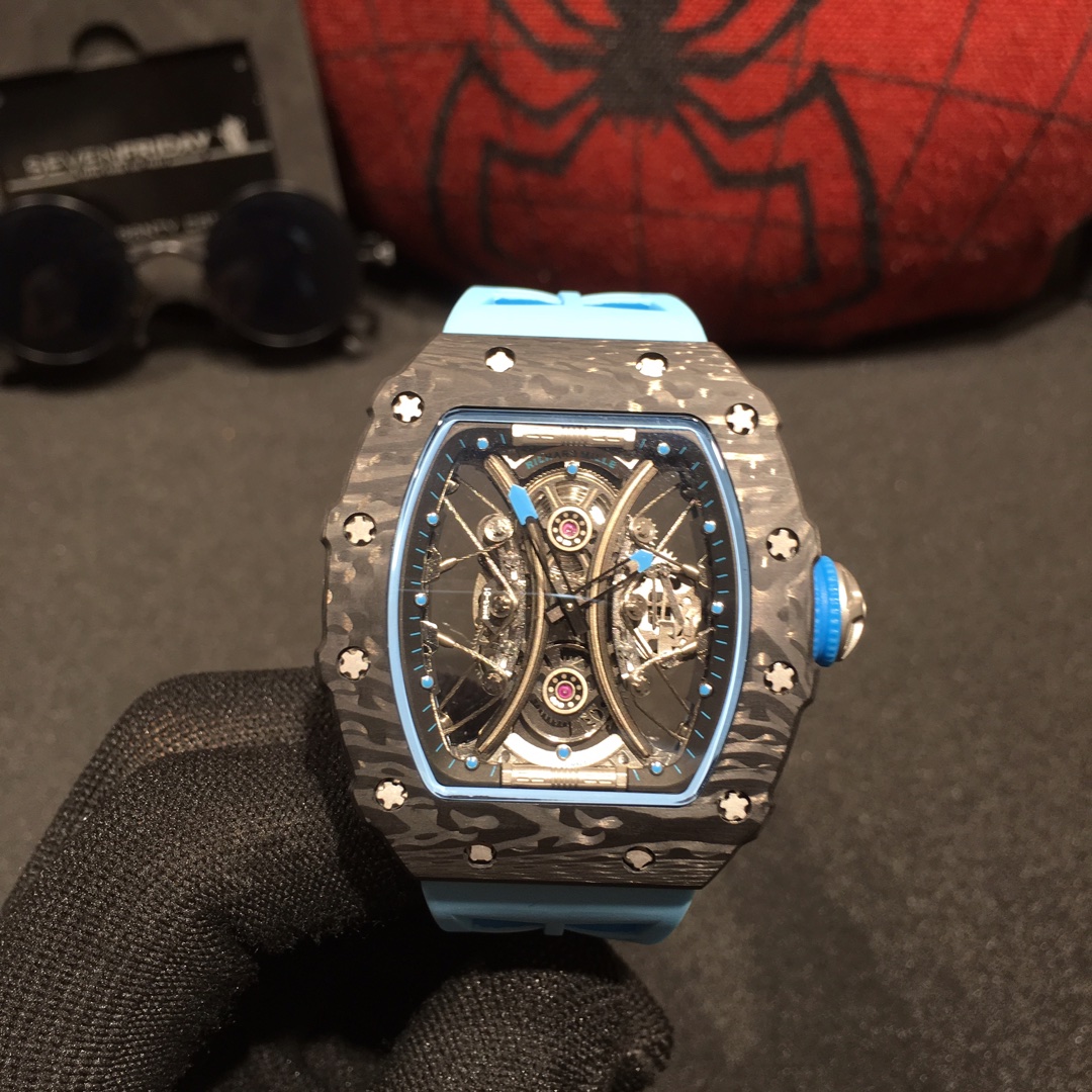 The carbon fiber with its unique wave-like luster and sharp case lines further accentuates the sporty style of this watch. It is a timepiece full of dynamism and vitality.