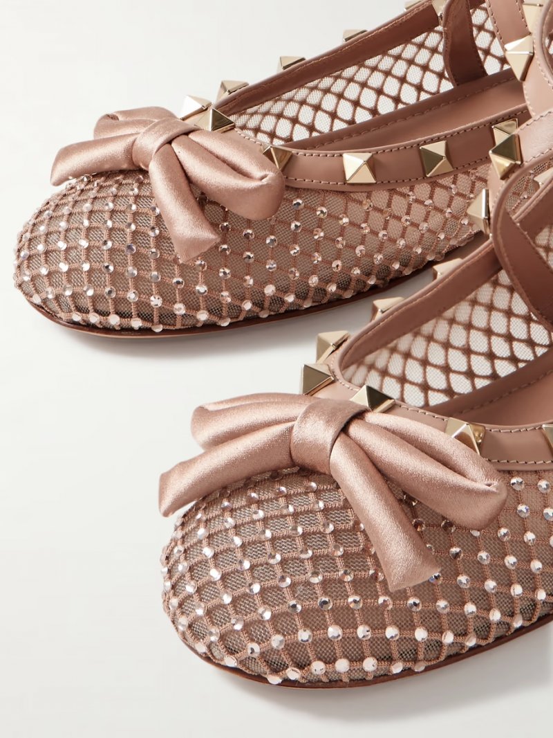 - Beige tulle, leather (Calf) and satin