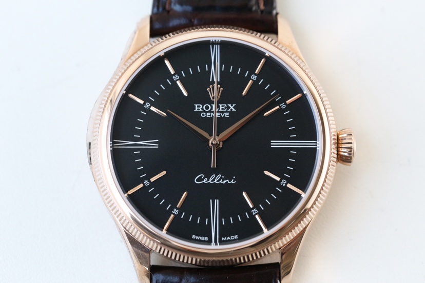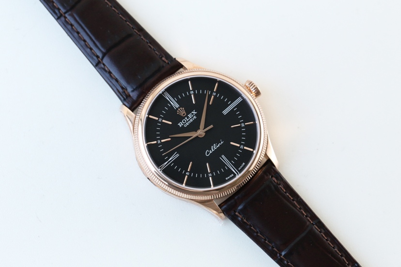 Rolex Cellini series watches are highly acclaimed for their elegant design and exquisite craftsmanship. The 39mm x 10.5mm dimensions showcase a delicate and comfortable wearing experience, while the 3132 dedicated movement ensures accurate time display and reliable performance. The imported 316L stainless steel top-grade thick gold plating with anti-oxidation protected case exhibits high quality and durability, while the scratch-resistant sapphire crystal mirror and high-end calf leather strap provide a clear vision and elegant touch. This Rolex Cellini series watch is an ideal choice for those who pursue elegance and sophistication.