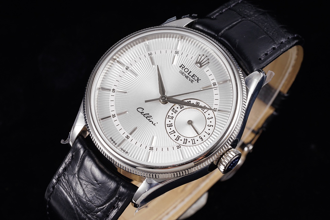 The Rolex Cellini men’s watch is characterized by its 39mm diameter and elegant design, showcasing delicacy and refinement. It is equipped with the 3165 movement, ensuring accurate and reliable time display. The watch features a top-grade 316L stainless steel case, exhibiting durability and high quality. It is paired with an Italian imported leather strap, adding elegance and a sense of craftsmanship. The sapphire crystal glass provides excellent scratch resistance and clear time display. With a water resistance of 30 meters, the watch is suitable for daily waterproof needs. This Rolex Cellini men’s watch is an ideal choice for men who pursue quality and elegance.