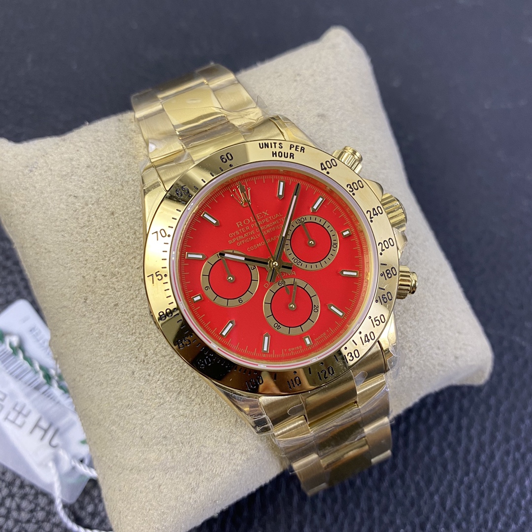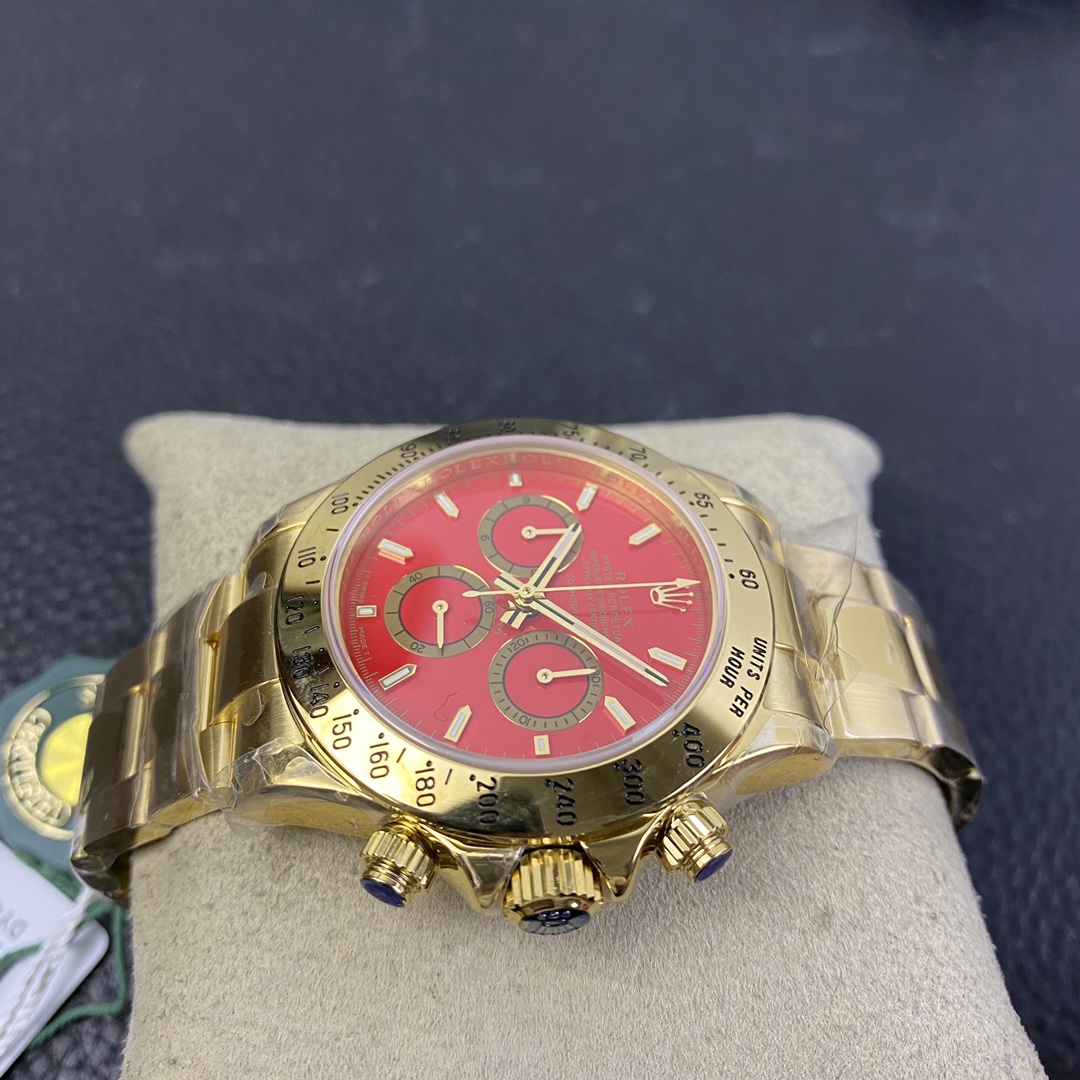 The Rolex Daytona collection is renowned for its classic 40mm size and sporty style. It is equipped with the Swiss 7750 movement, ensuring precise and reliable time display. The watch features hours, minutes, and seconds functions, allowing you to easily keep track of time. With a water resistance of over 100 meters, it is suitable for daily waterproof needs and underwater activities. The sapphire crystal glass provides excellent scratch resistance and clear time display. The folding clasp design enhances comfort during wear. The stainless steel case exhibits durability and high-quality craftsmanship, showcasing Rolex’s excellence. The Rolex Daytona collection, with its sporty style and outstanding performance, is an ideal choice for those who pursue fashion and functionality.