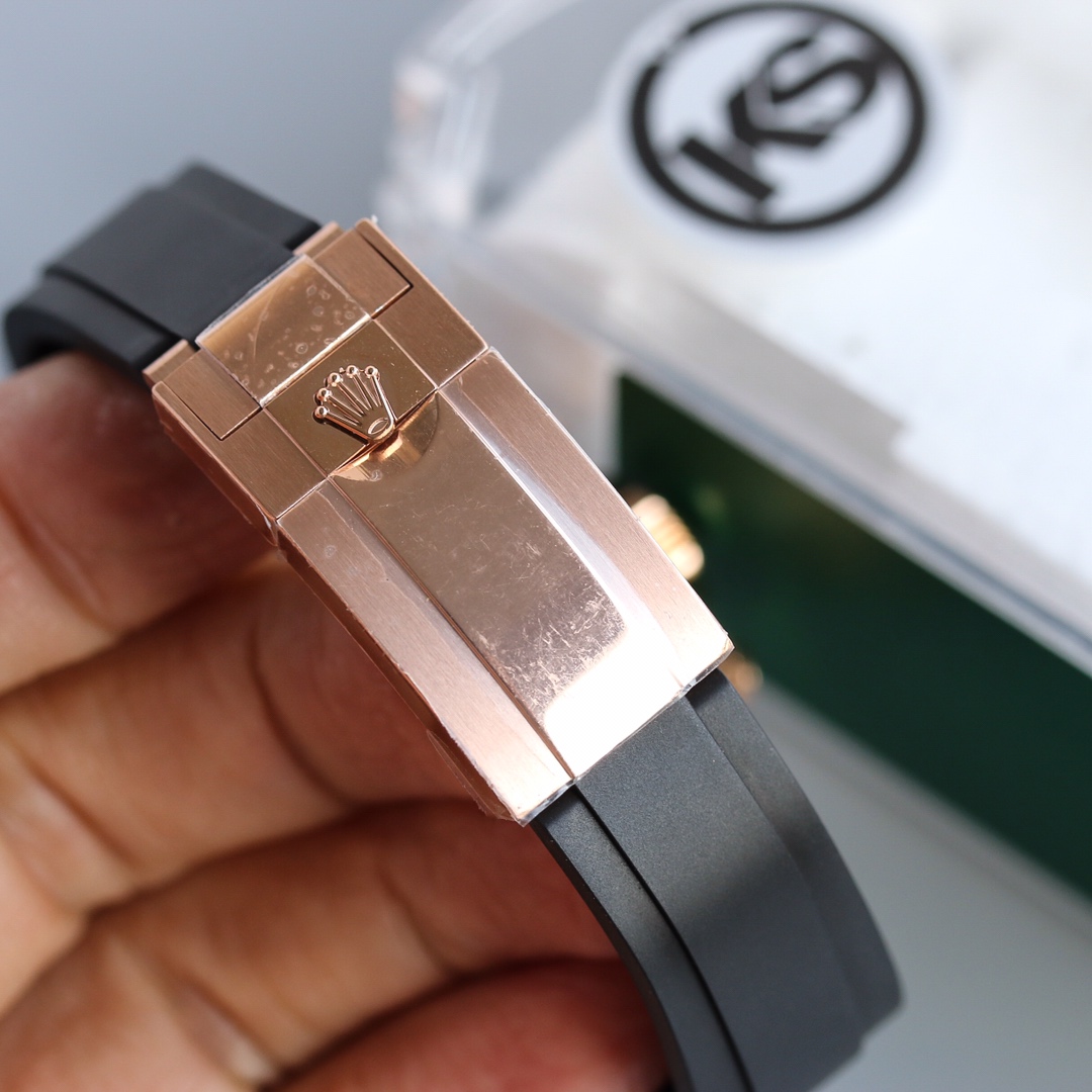 Case and Strap: The watch has a stainless steel case, showcasing durability and a classic appearance. It comes with a black Oysterflex rubber strap, which is both comfortable and durable.