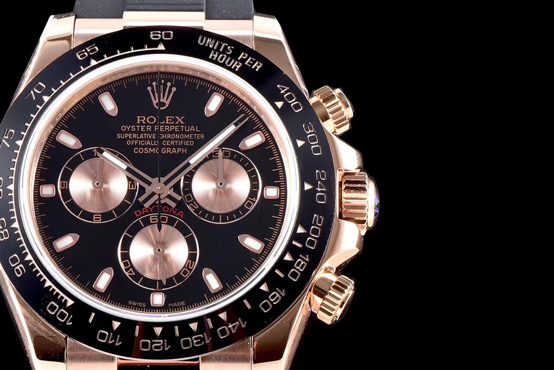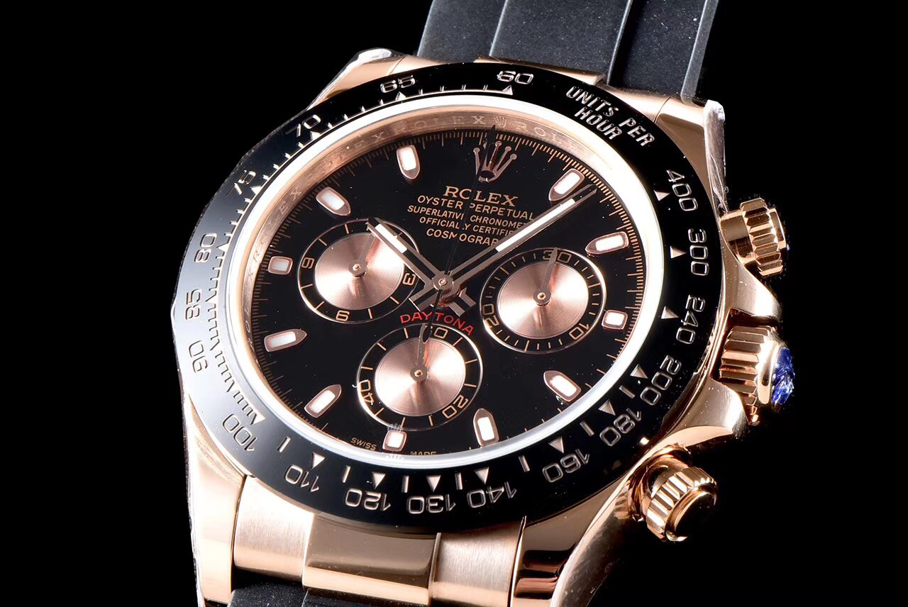 Rolex Cosmograph Daytona Series – This Rolex Cosmograph Daytona watch is renowned for its classic design, exceptional timing function, and precise performance. With a size of 40mm x 12.2mm, it is suitable for both men and women. The Swiss 7750 movement ensures accurate and reliable time display and timing function. The superluminova coating allows for easy time reading in any lighting conditions. With a water resistance of over 100 meters, this watch is suitable for water activities in daily life. The sapphire crystal glass protects the dial and provides a clear view. The folding clasp and stainless steel case showcase durability and a classic appearance. It comes with a black Oysterflex rubber strap that is both comfortable and durable. The Rolex Cosmograph Daytona watch exemplifies Rolex’s excellent craftsmanship and precise performance in the field of watchmaking, making it an ideal choice for those pursuing refinement and timing function.