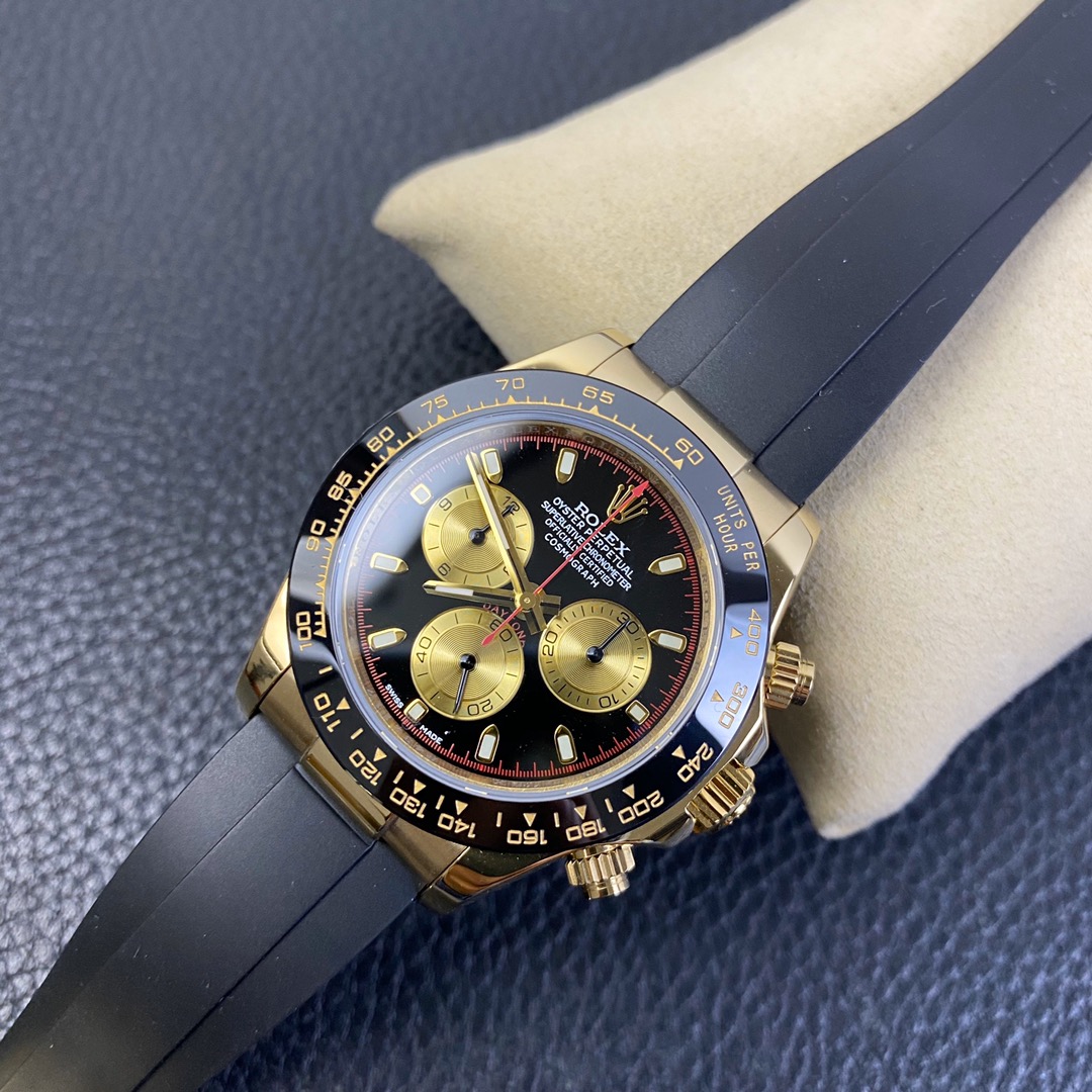 The Rolex Daytona watch exudes a sense of fashion and sportiness with its 40mm size and sporty style. Equipped with a 7750 automatic movement, it ensures precise and reliable time display. The watch features hour, minute, and second functions, and is equipped with luminescent hands and markers, ensuring clear readability even in low-light environments. With a water resistance of 50 meters, the watch is suitable for waterproof demands in daily life. The sapphire crystal glass provides excellent scratch resistance and clear time display. The carbon fiber case exhibits lightweight and durability, presenting a modern feel. Equipped with a fabric strap, the watch adds a sporty style and a sense of fashion. This Rolex Daytona watch, with its outstanding performance and fashionable design, is an ideal choice for individuals who value quality and a sporty style.