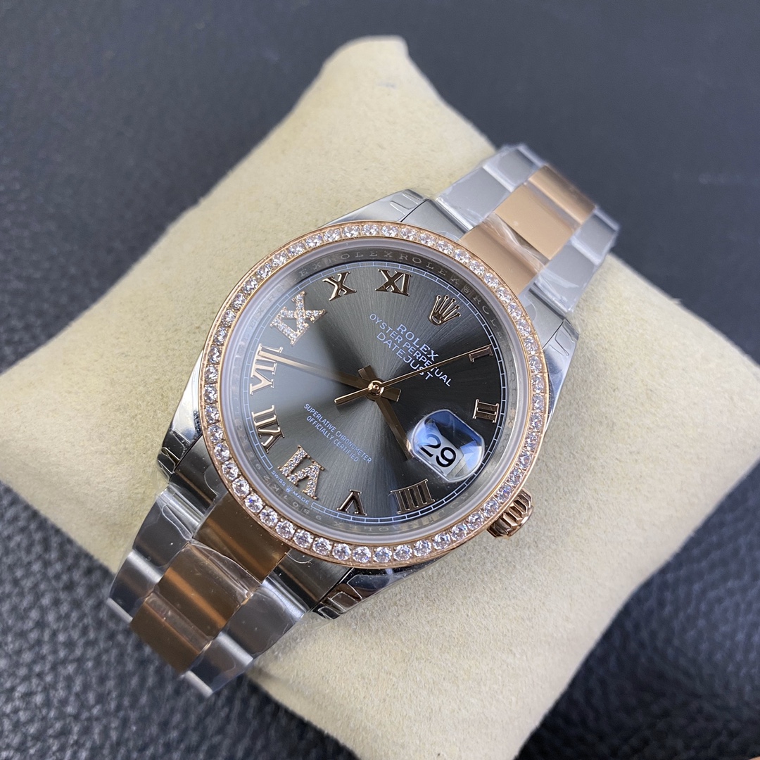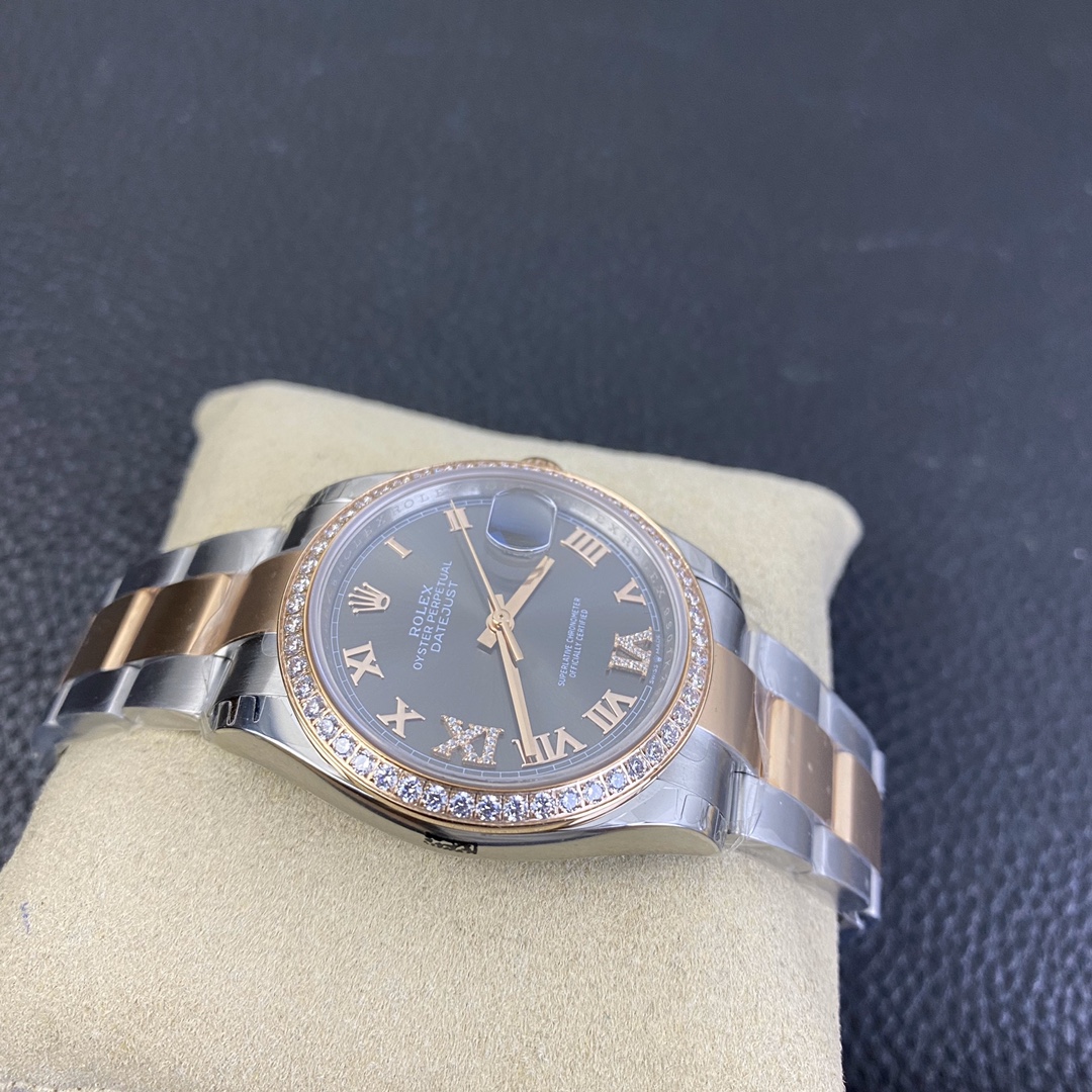 Rolex Datejust 36 Series, Top-of-the-Line Model with Gold Roman Numerals and Diamond Bezel